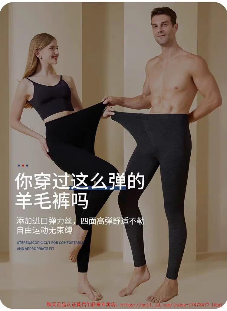 Modal 100% wool trousers men's autumn trousers seamless ultra-thin cashmere trousers young and middle-aged slim knitted bottoming warm trousers for women men's black thin section 100 sheep wool M 165