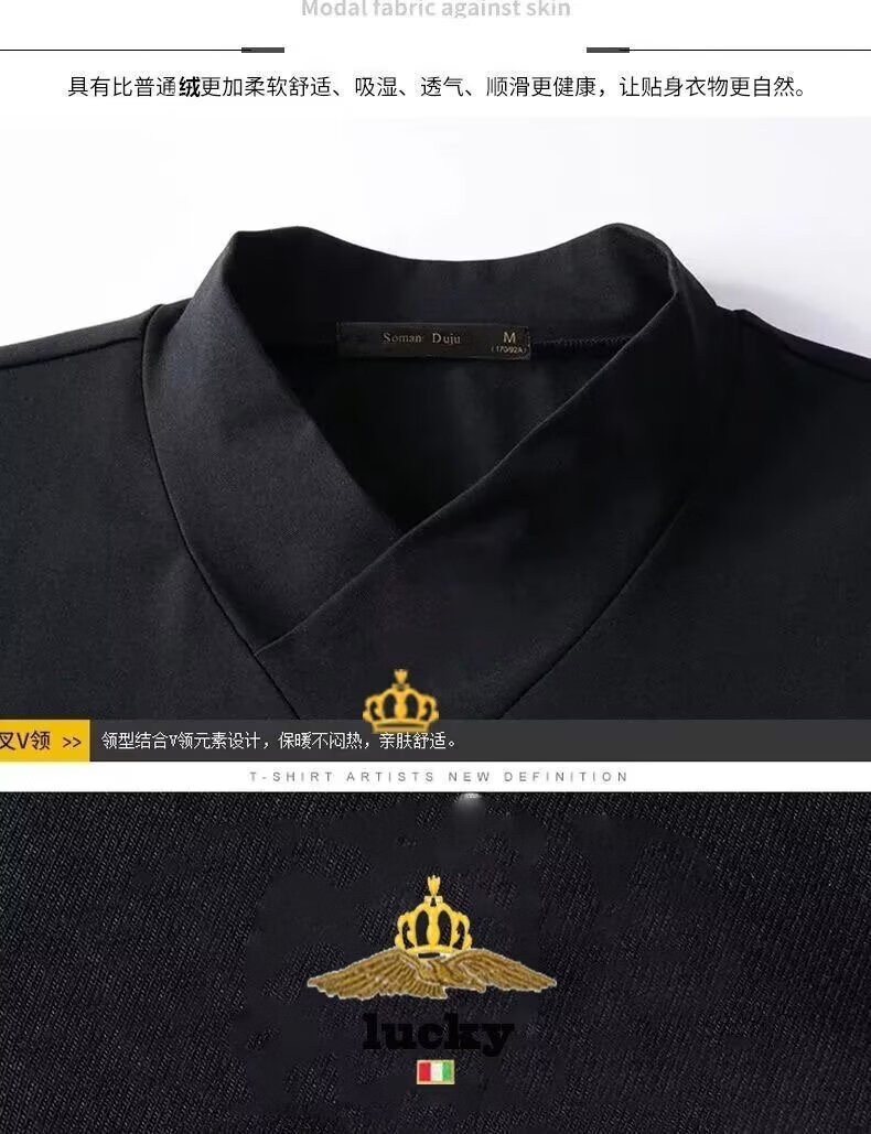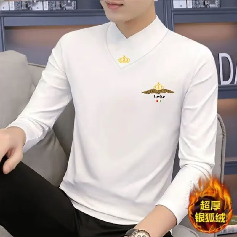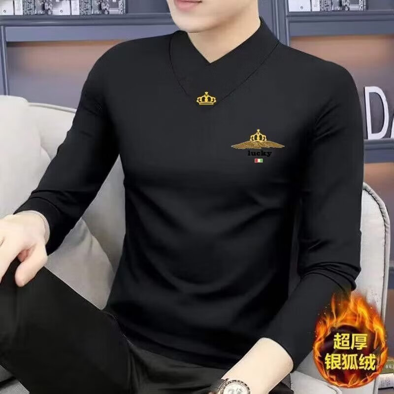 Autumn and winter new men's long-sleeved T-shirt V-neck slim high-end warm-keeping bottoming shirt plus velvet thickened underwear trendy clothes blue plus velvet for warmth plus velvet 4XL