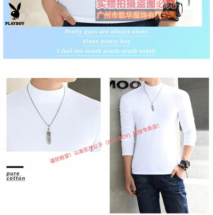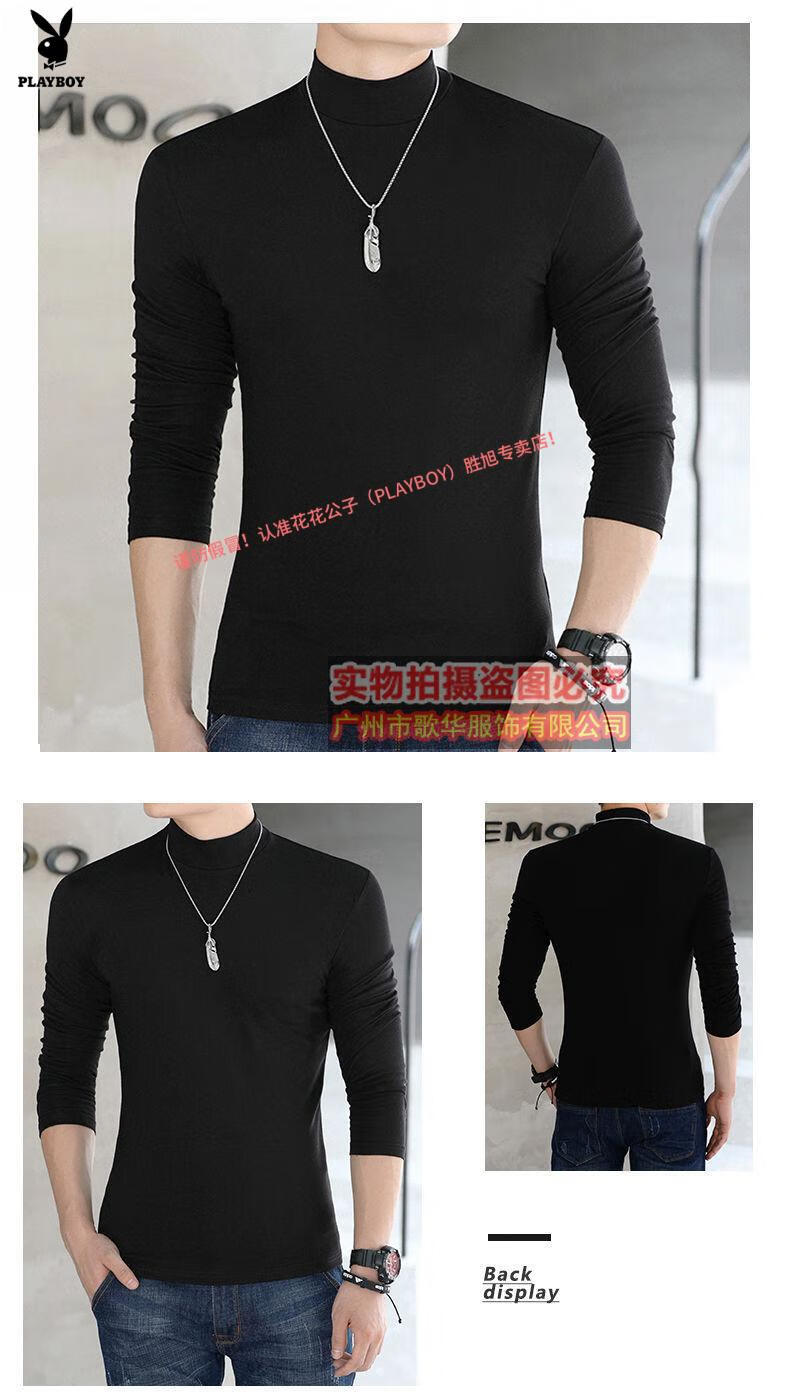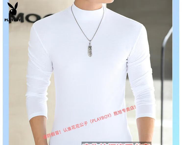 Playboy mercerized cotton long-sleeved T-shirt men's autumn and winter half turtleneck bottoming shirt men's solid color slim fit thin top skin-friendly inner versatile white long half height XS 50Jin Jin equal to 0.5 kg or less