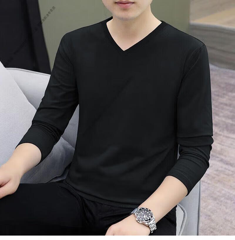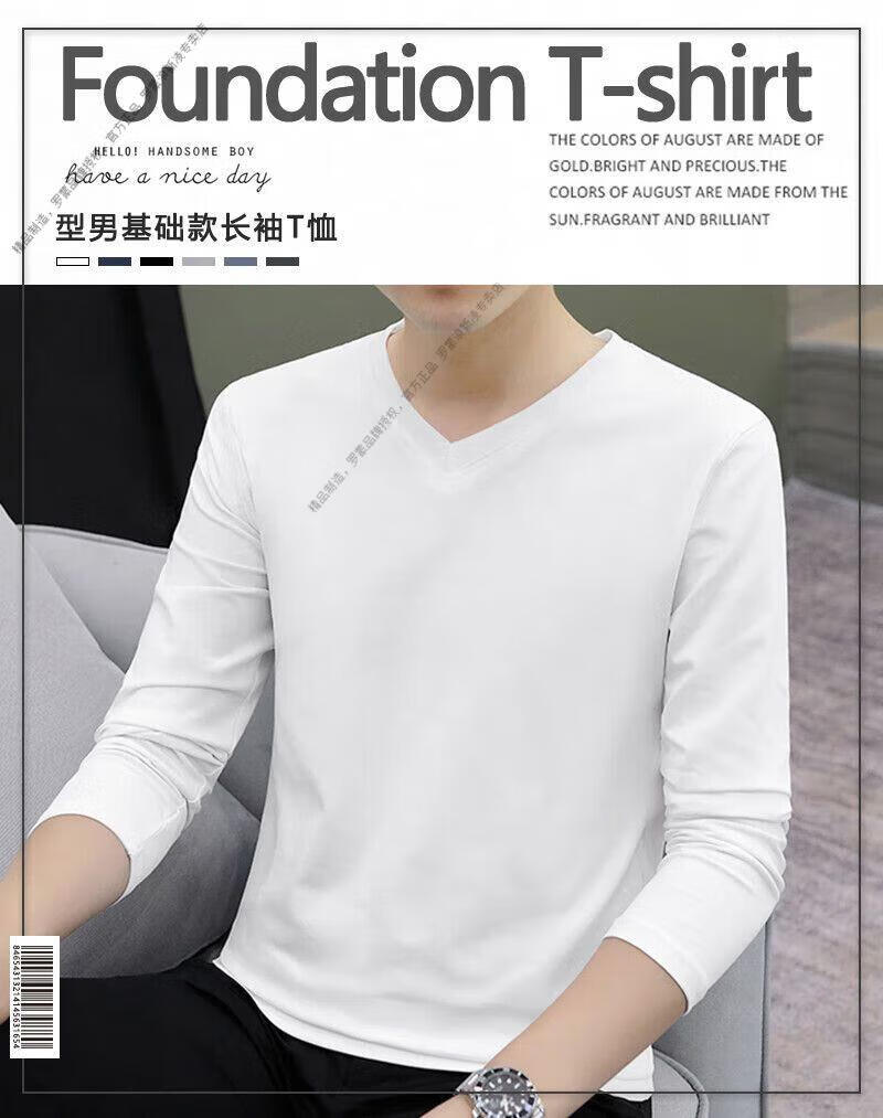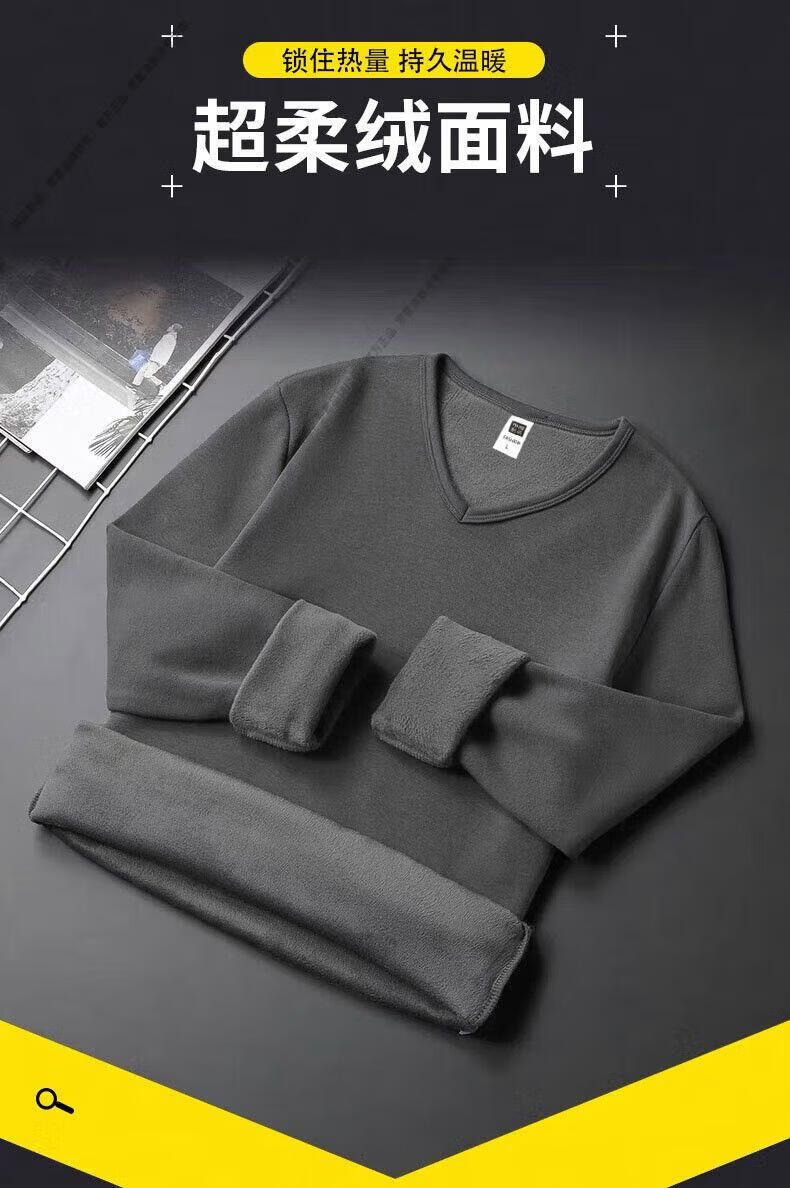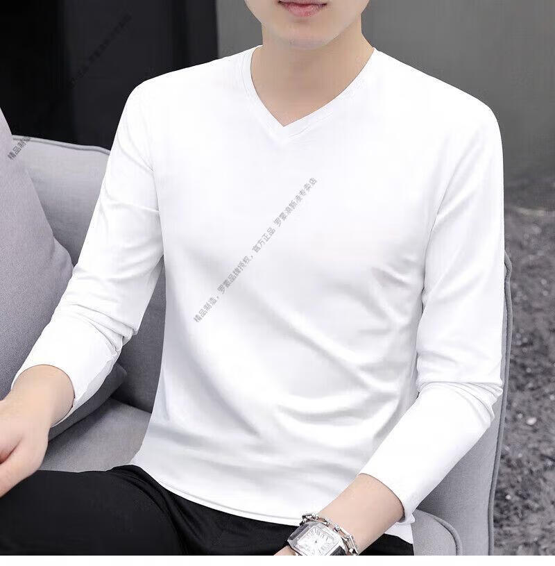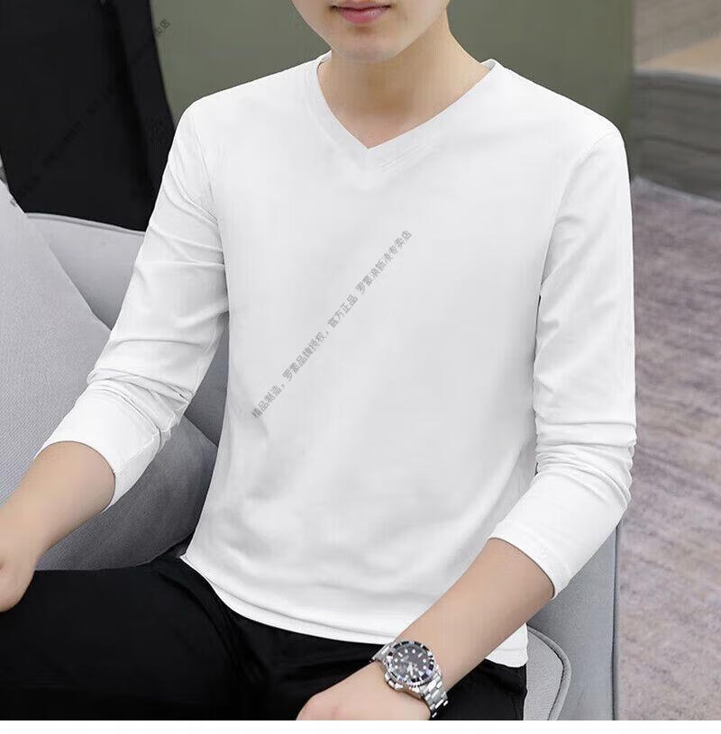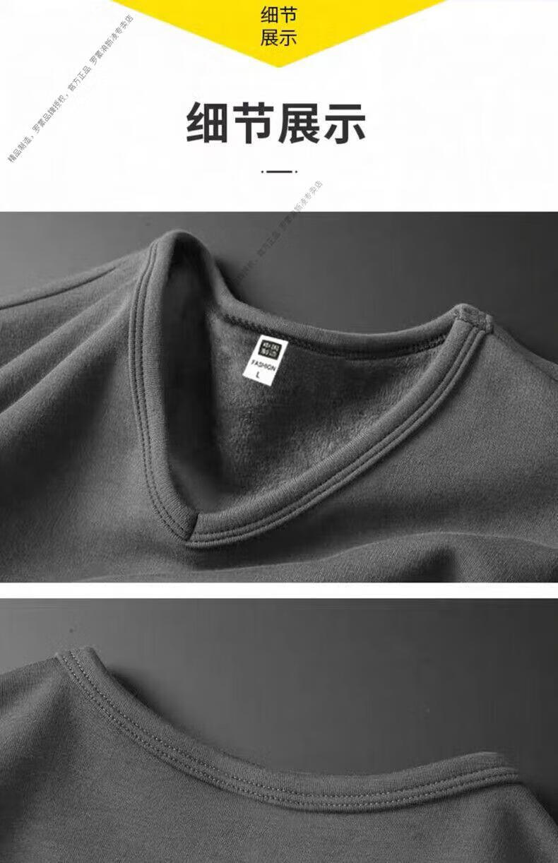 ROMON long-sleeved T-shirt for men in autumn and winter new sweetheart neck pure cotton V-neck slim top with velvet thickened warm base layer white style velvet M 90-115Jin Jin is equal to 0.5 kg