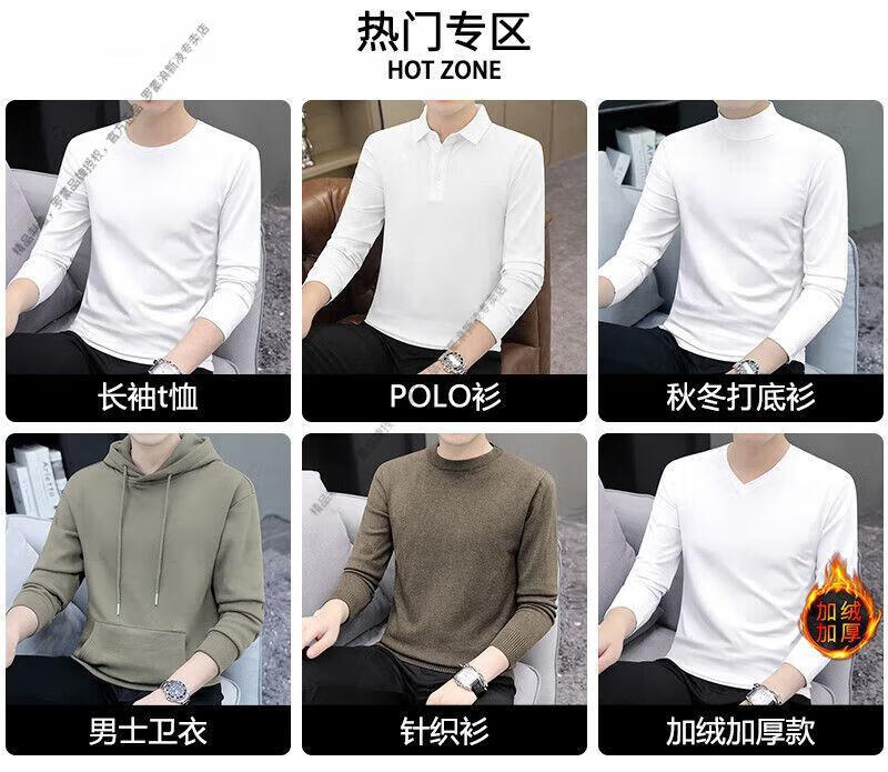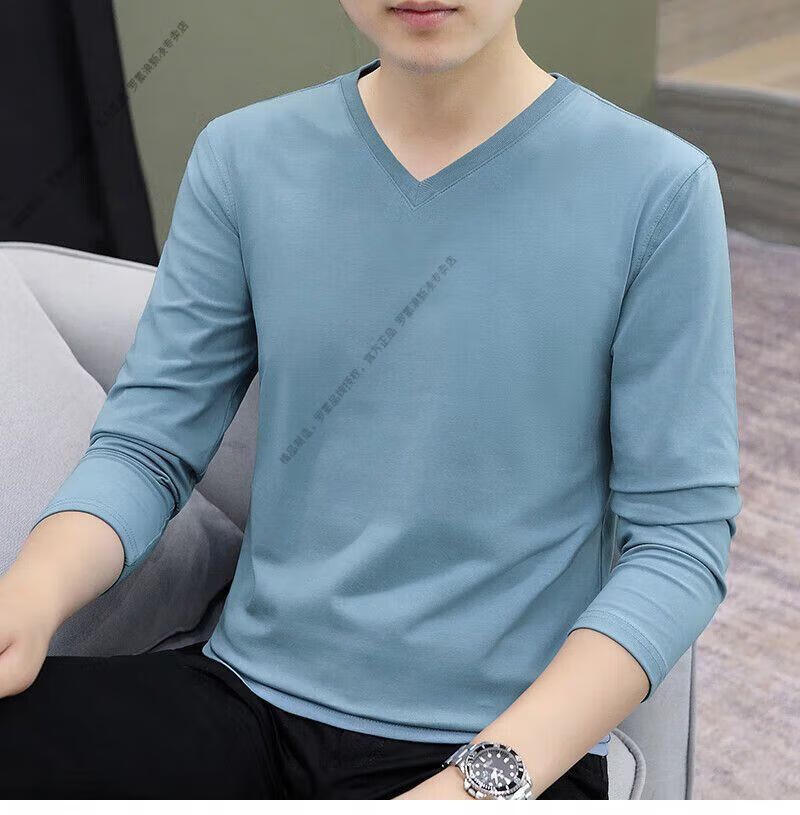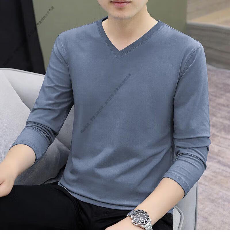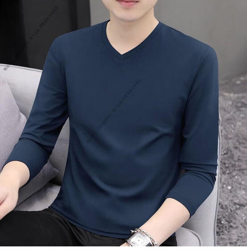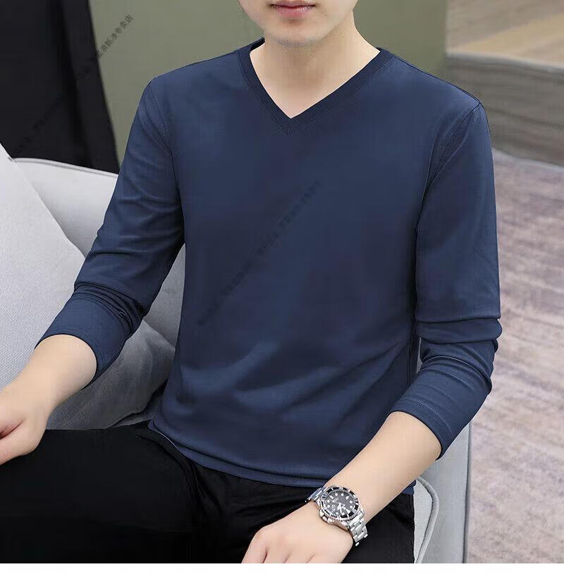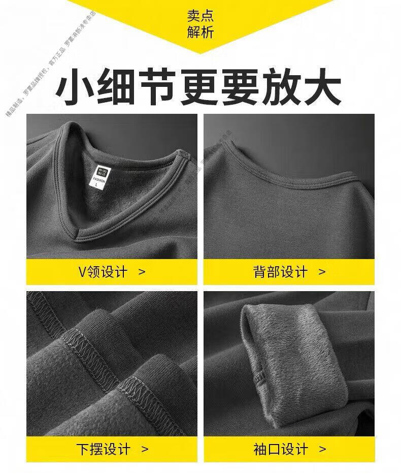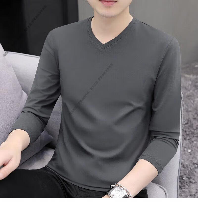 ROMON long-sleeved T-shirt for men in autumn and winter new sweetheart neck pure cotton V-neck slim top with velvet thickened warm base layer white style velvet M 90-115Jin Jin is equal to 0.5 kg