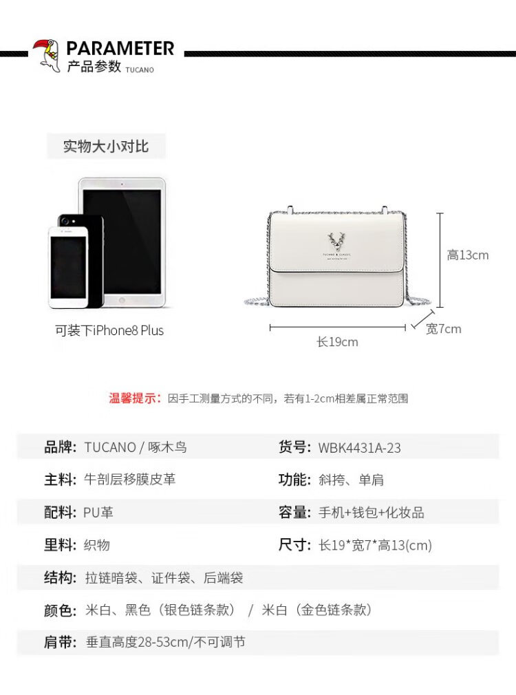 Woodpecker (TUCANO) bag women's 2025 cowhide chain small square bag single shoulder crossbody bag practical birthday gift for girlfriend