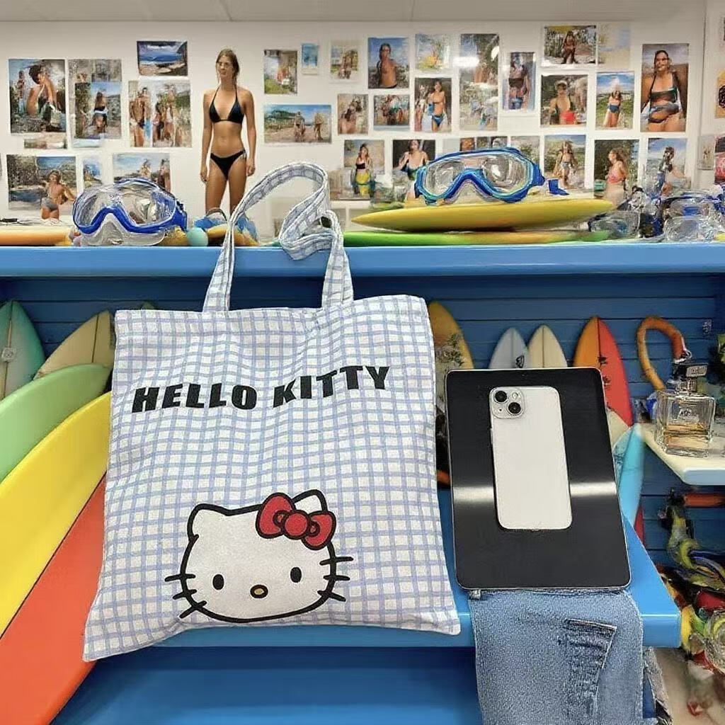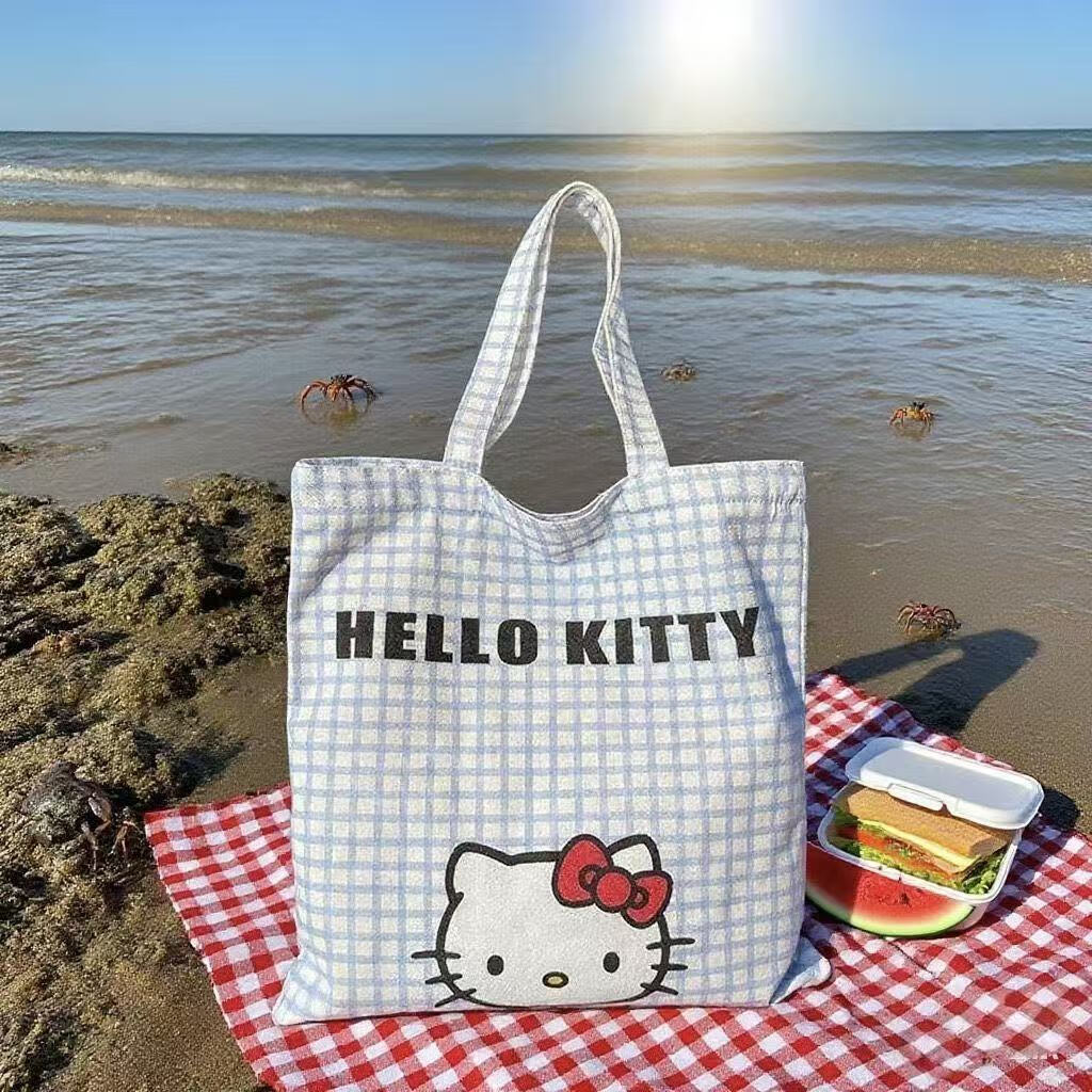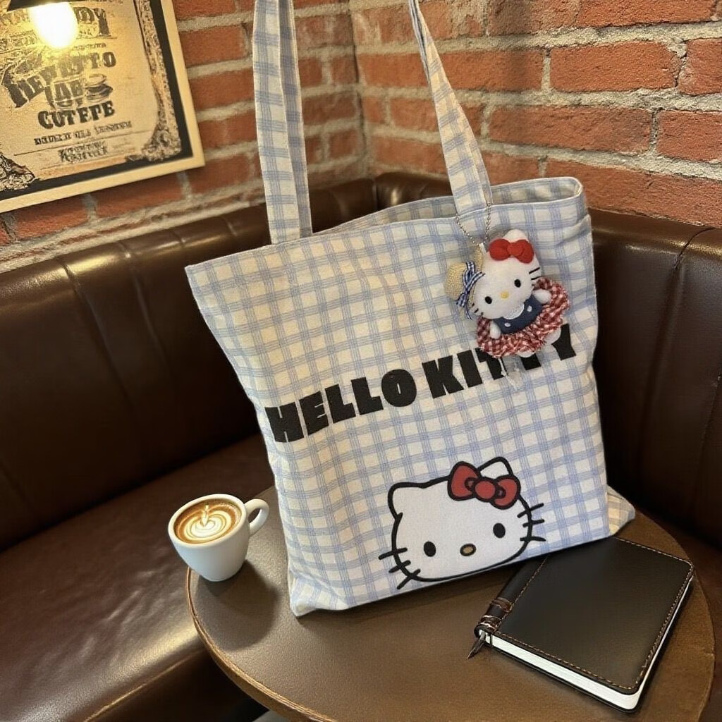 Cute style kitty canvas bag handbag single shoulder crossbody bag summer versatile commuting large capacity new shoulder bag kitty yellow (without doll) no zipper