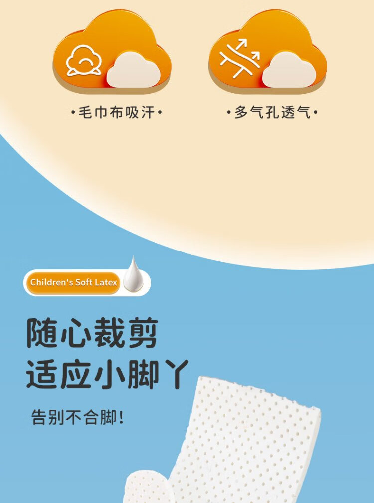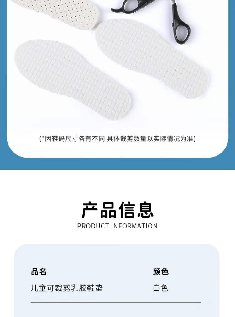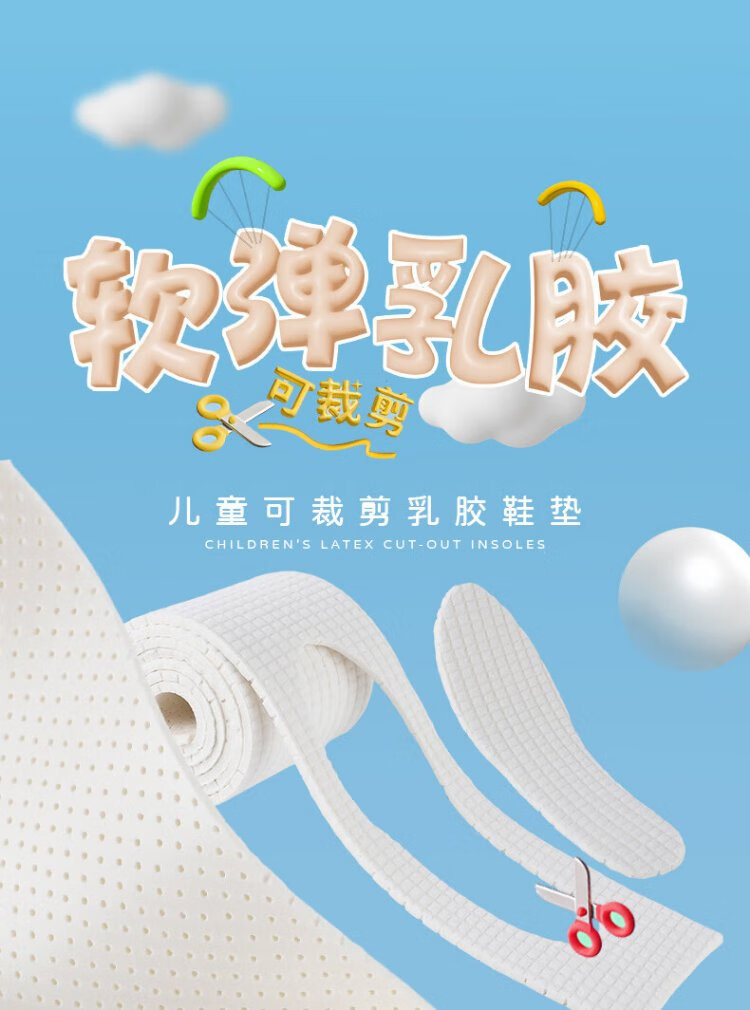 FOOTOPPO latex children's insoles can be cut into thin sections for children, boys, and girls, sports breathable basketball shoes, thin insoles