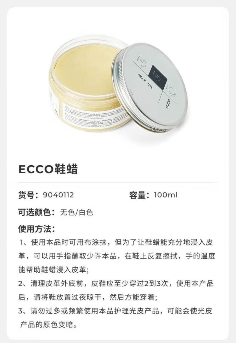 ECCO Leather Shoe Cream Leather Shoe Care and Maintenance 9040109 Colorless HL
