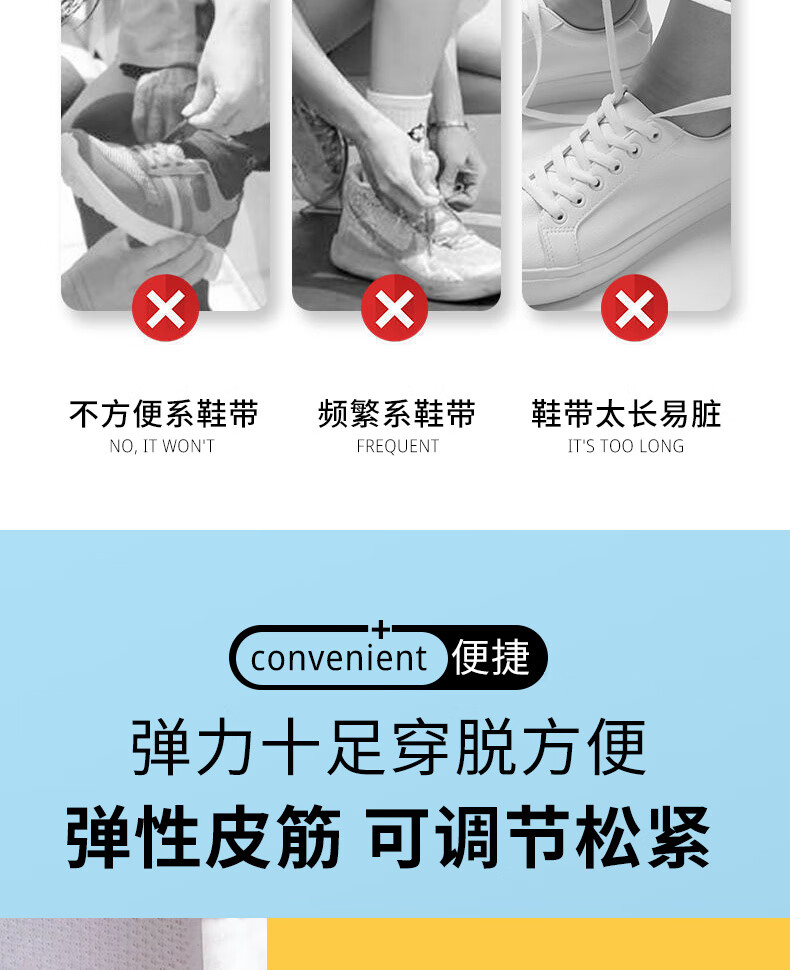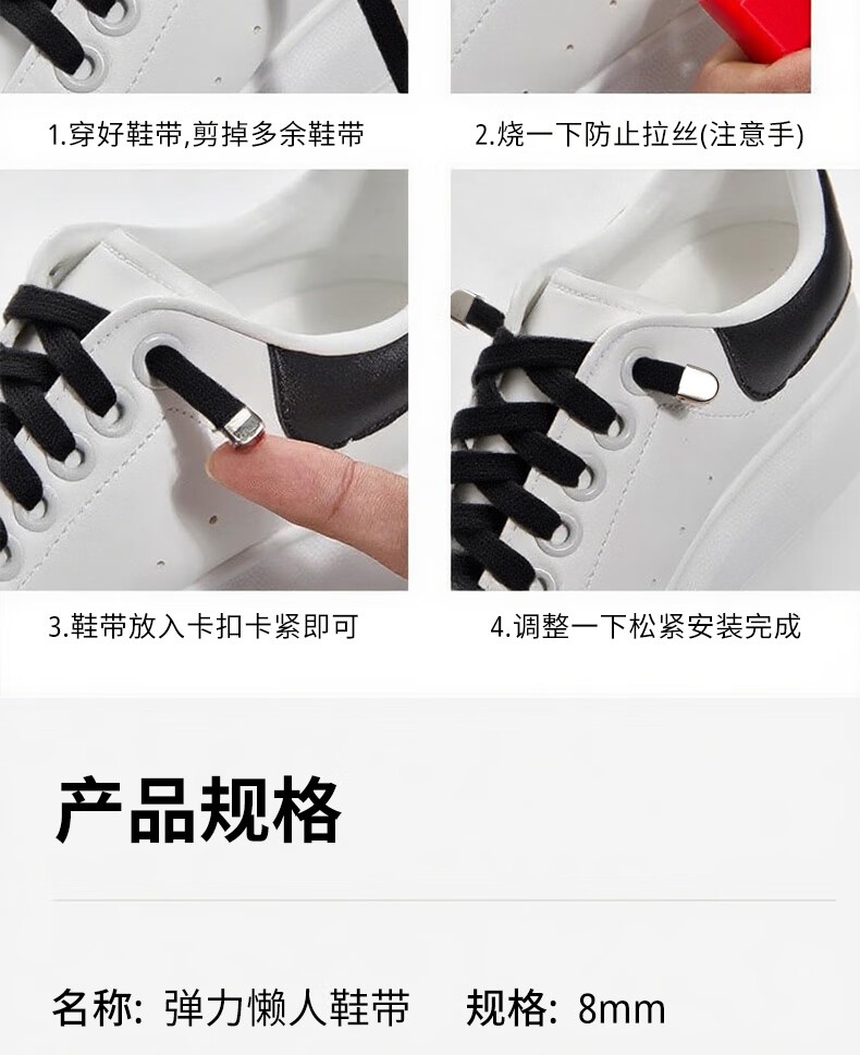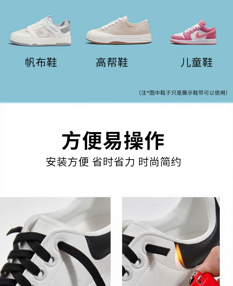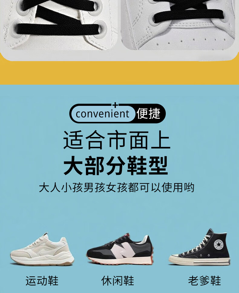 Huabaochi 3 pairs of free-tie lazy shoelaces white metal buckle elastic elastic sneakers flat black free-tie artifact