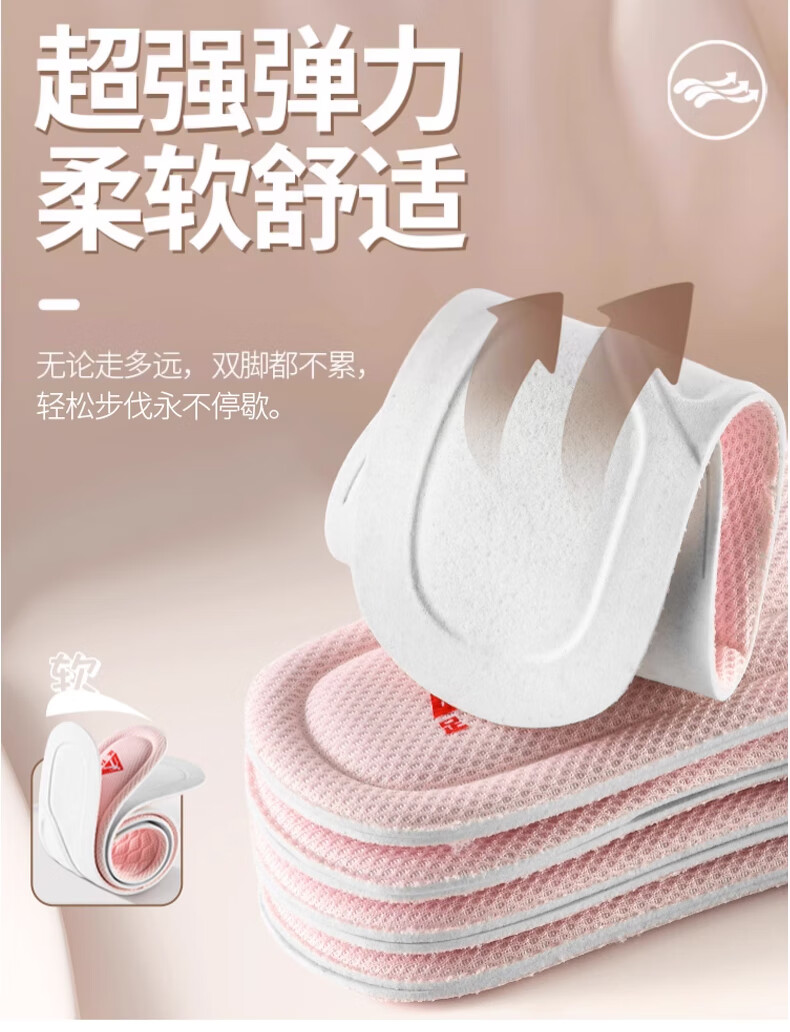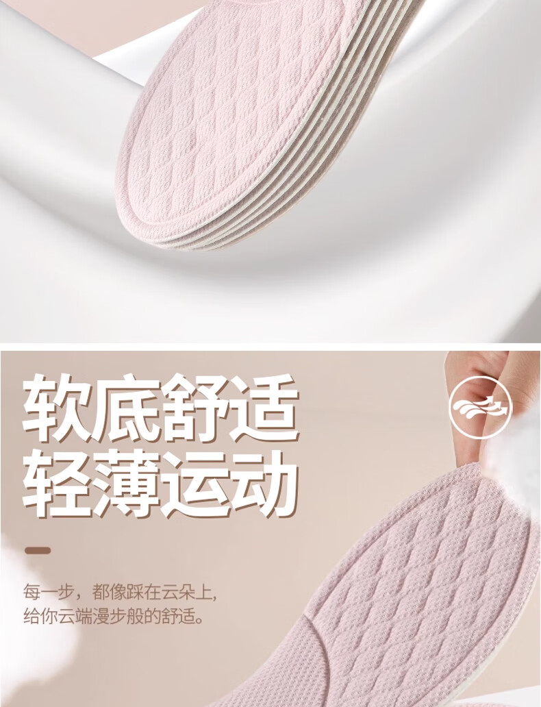 Foot Lijian autumn and winter non-slip insoles for women, thin mugwort deodorant for men, sweat-absorbent, deodorant, soft sole, comfortable, pink 2 pairs, size 37-38