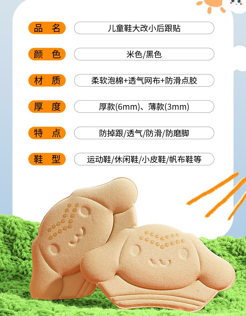 LPF children's heel sticker shoes have been changed from small artifacts to one size smaller. Anti-wear heel stickers for baby's feet. Children's special half-size pads. Beige - (6mm) thick version. Upgraded dispensing type. 2 pairs. Children's anti-wear heel stickers can be cut.