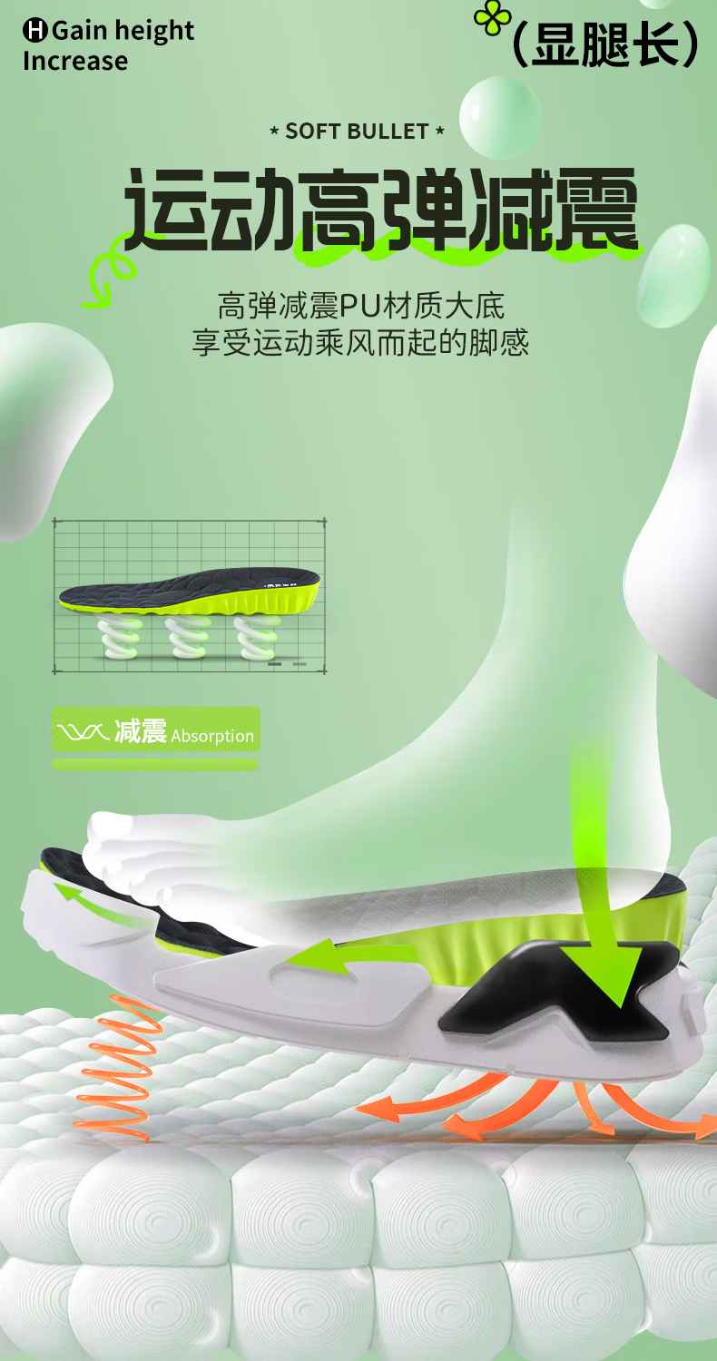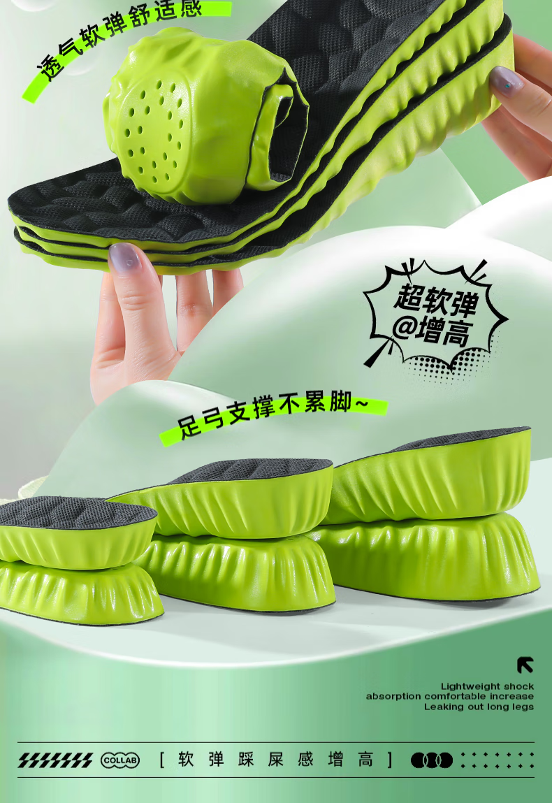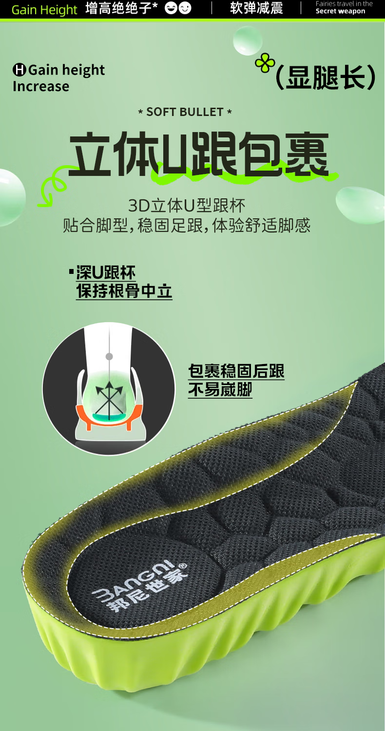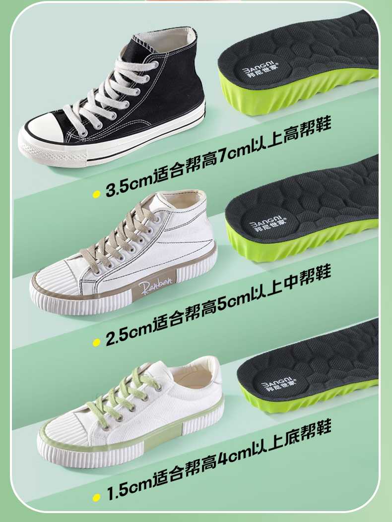 3AnGnI2 pair of height-increasing insoles for men, invisible inner heightening full cushion, mugwort, deodorant, soft elastic, long-lasting comfort, sports shock absorption, mugwort heightening insoles, 2.5cm, 2 pairs, size 41-42
