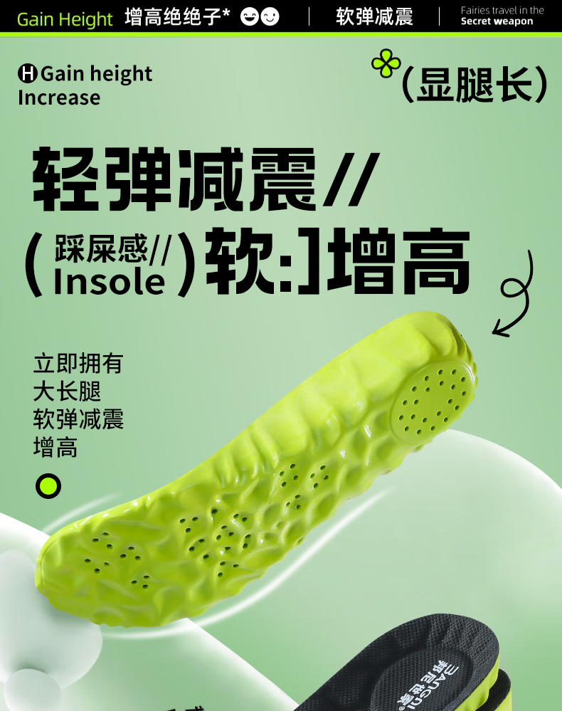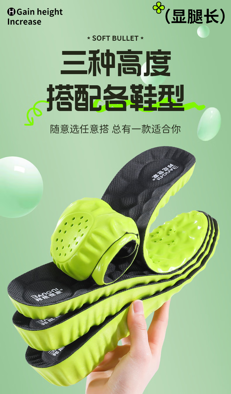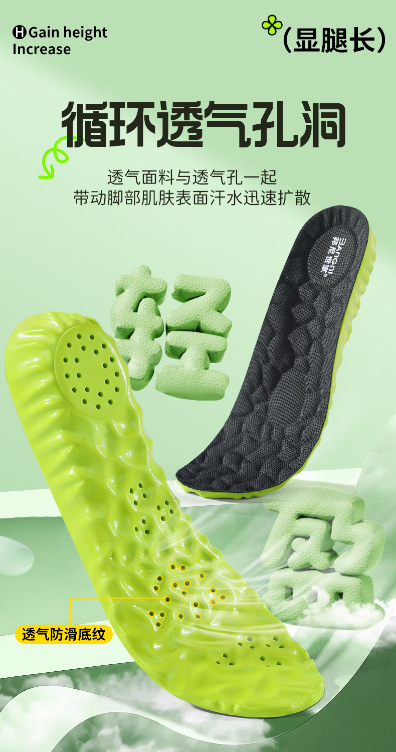 3AnGnI2 pair of height-increasing insoles for men, invisible inner heightening full cushion, mugwort, deodorant, soft elastic, long-lasting comfort, sports shock absorption, mugwort heightening insoles, 2.5cm, 2 pairs, size 41-42