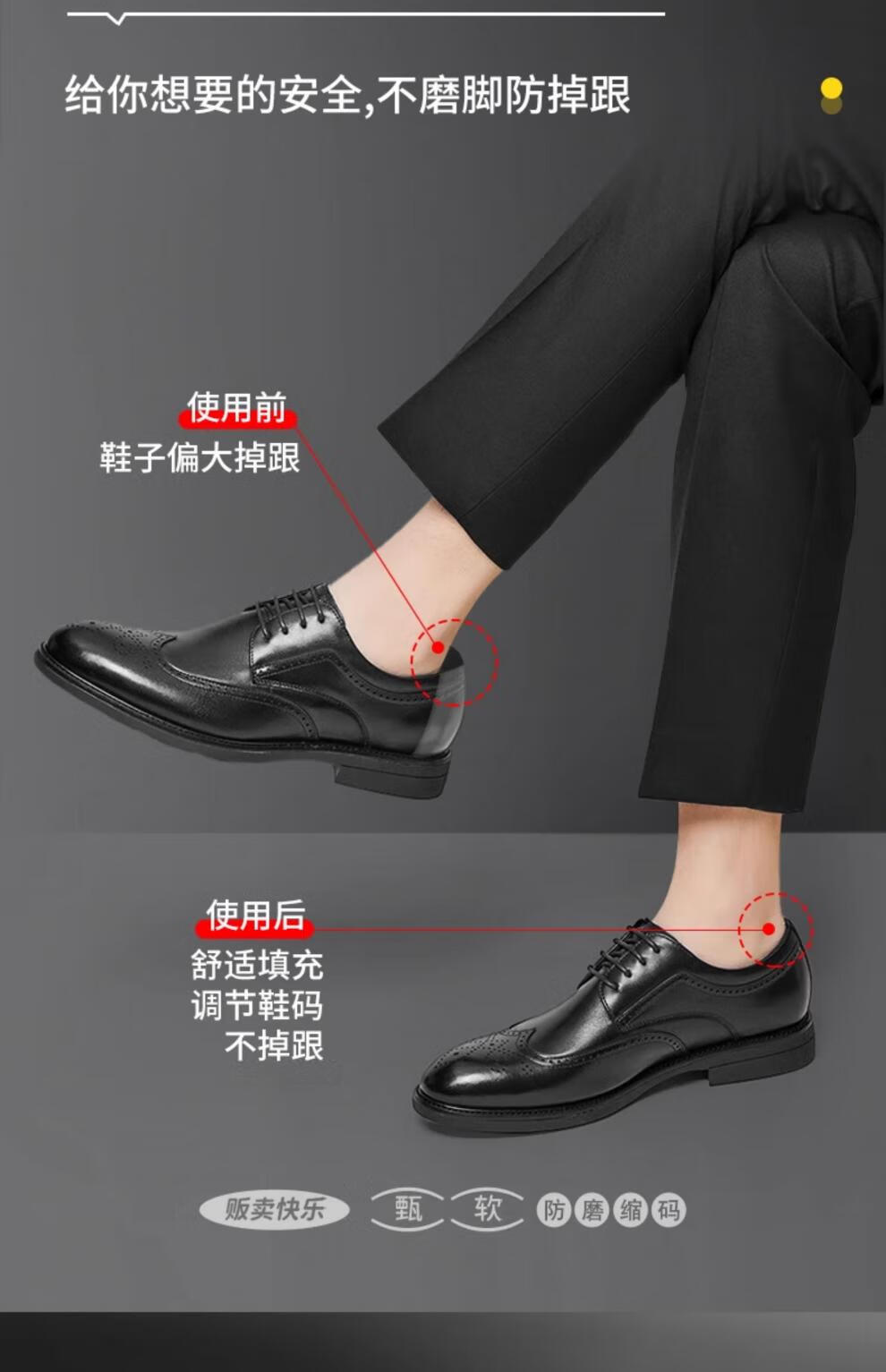 Kewei suitable for Jinlilai leather shoes with thick heel stickers, anti-wear, anti-fall, anti-slip, men's half-size pad shoes, large to small, black, 2 pairs, anti-wear, anti-wear, 5mm, one size fits all