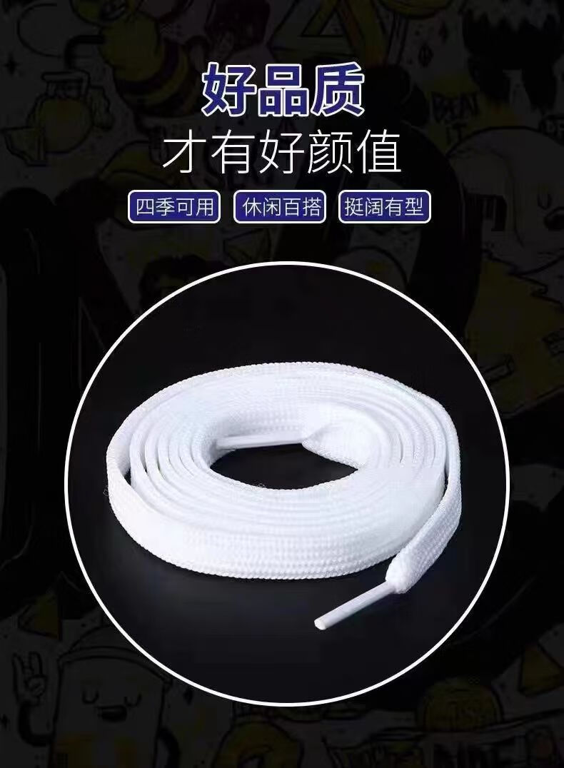 Original quality flat shoelaces black and white universal men's and women's white shoes canvas shoes AJ sneakers Converse Vance flat white 120cm suitable for 6 pairs of holes
