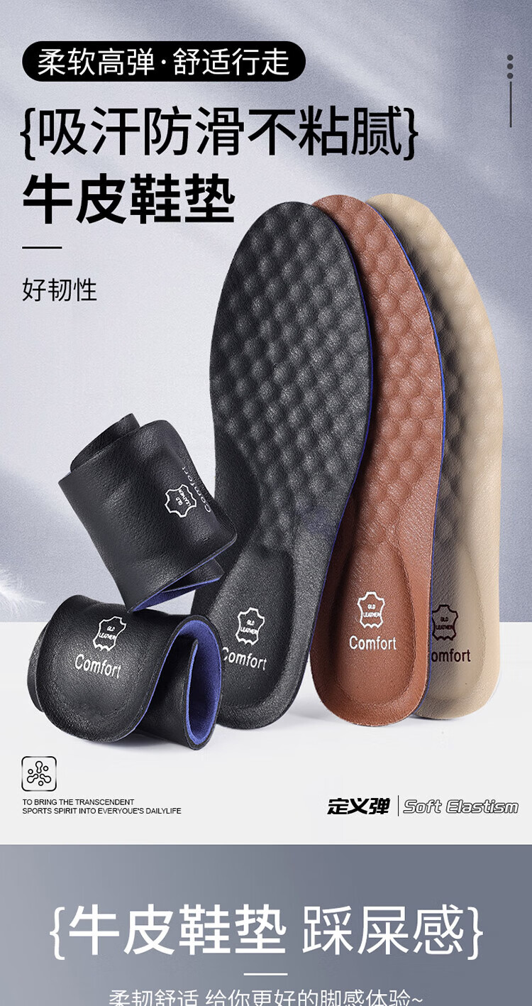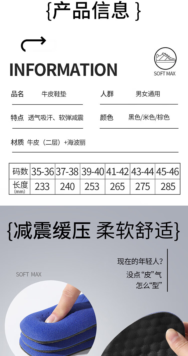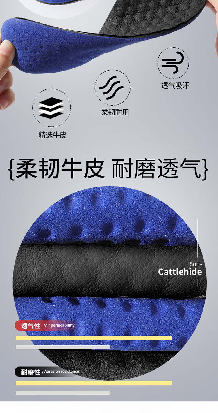 Genuine leather shoe insoles for men, sweat-absorbent, deodorant and breathable, men's insoles, pure cowhide, genuine leather, sports, shock-absorbing, super soft soles, comfortable, 1 pair, black - special insoles for genuine cowhide leather shoes, size 41-42