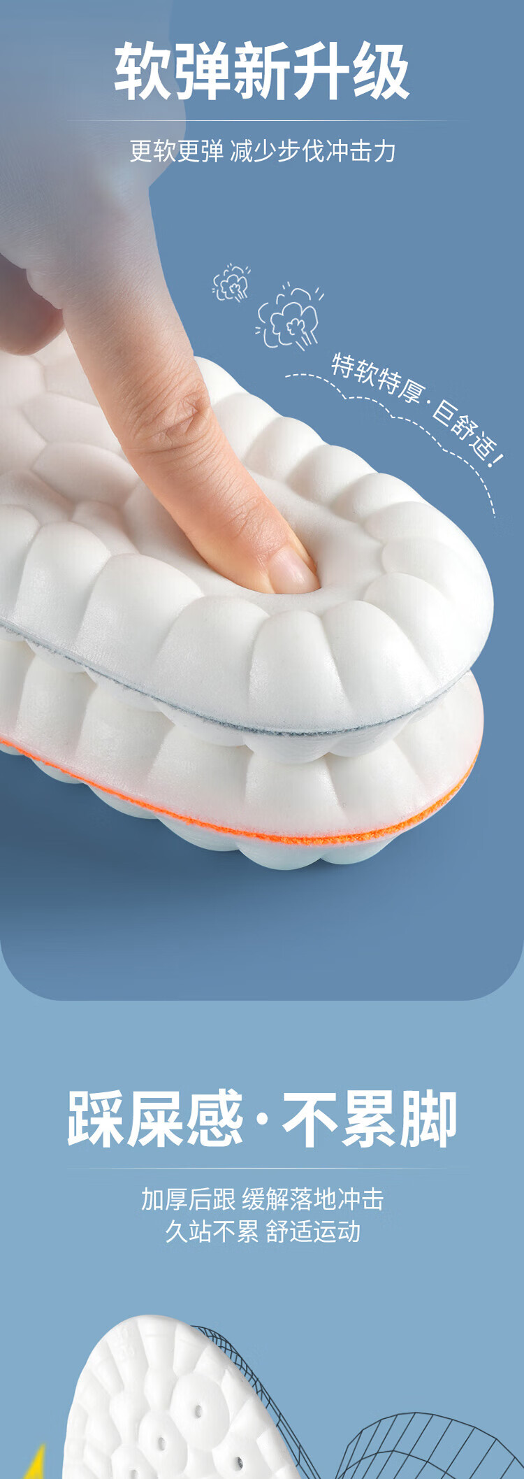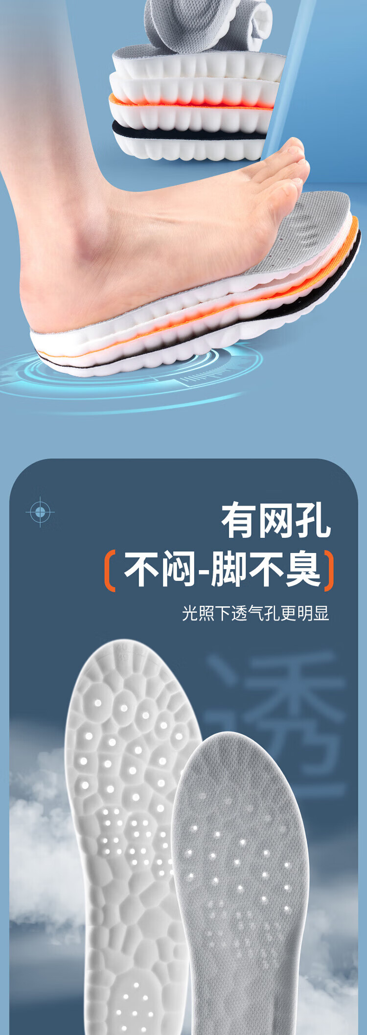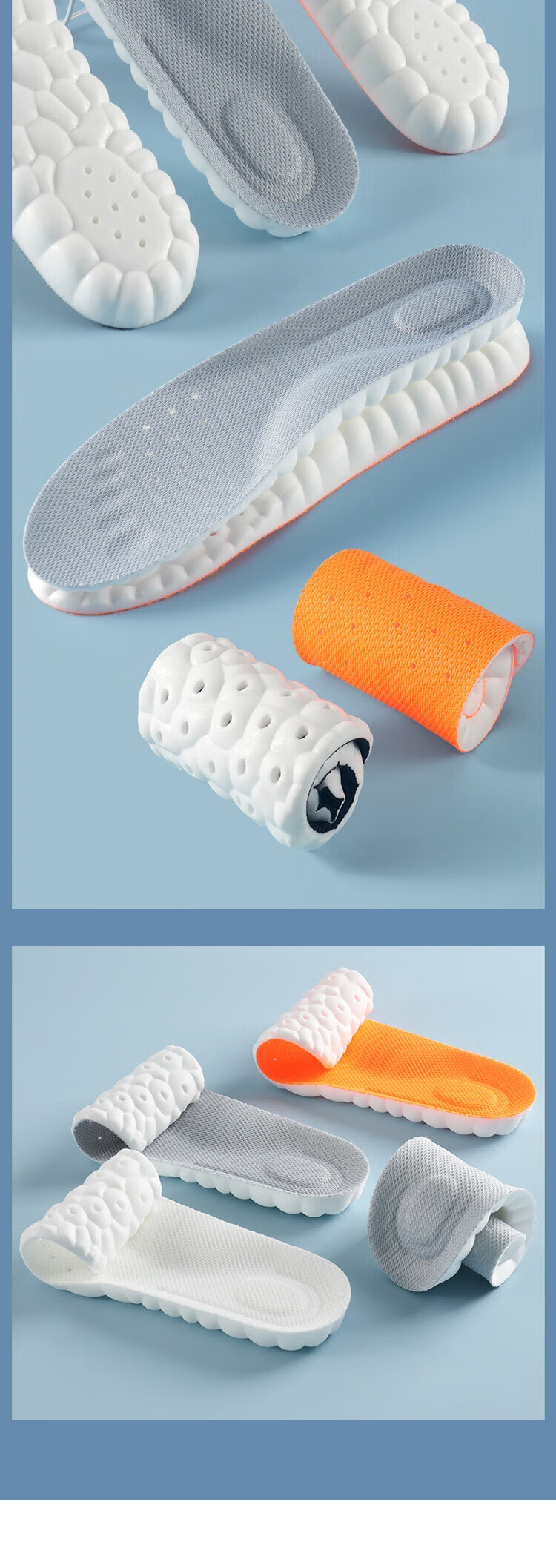Suitable for pull-back insoles for men who stand for a long time without feeling tired when stepping on shit. U-shaped heel. Super soft, anti-pain, shock-absorbing, sweat-absorbent and breathable. 2 pairs in a pack. Gray and white. Super-soft, anti-pain/sweat-absorbent and breathable. Code 4142.