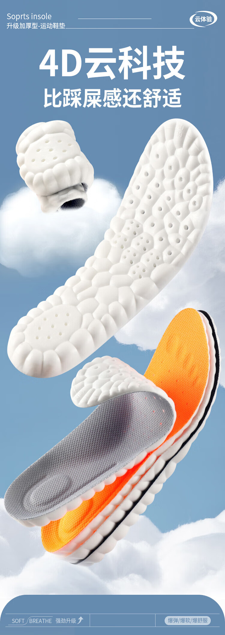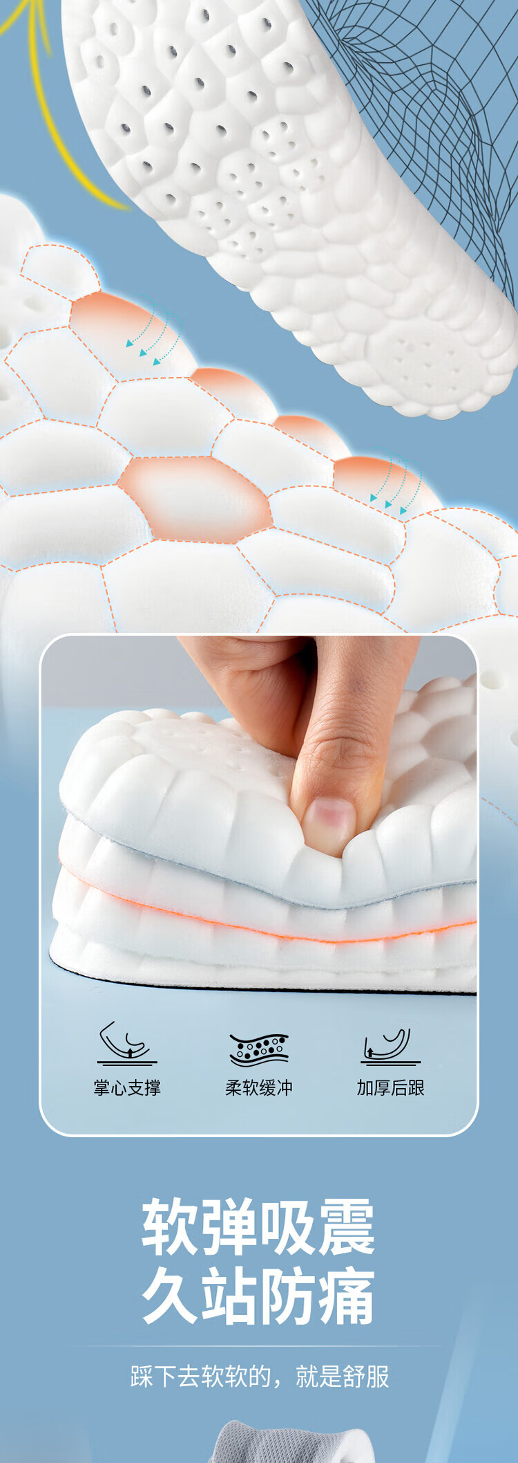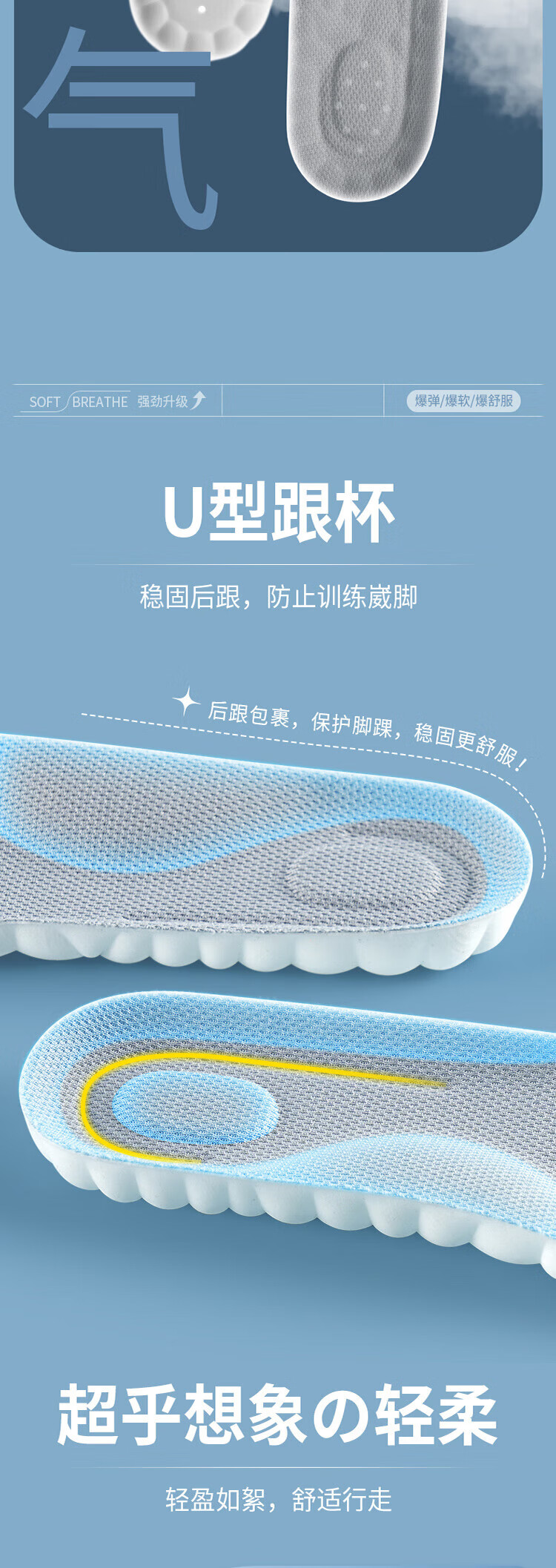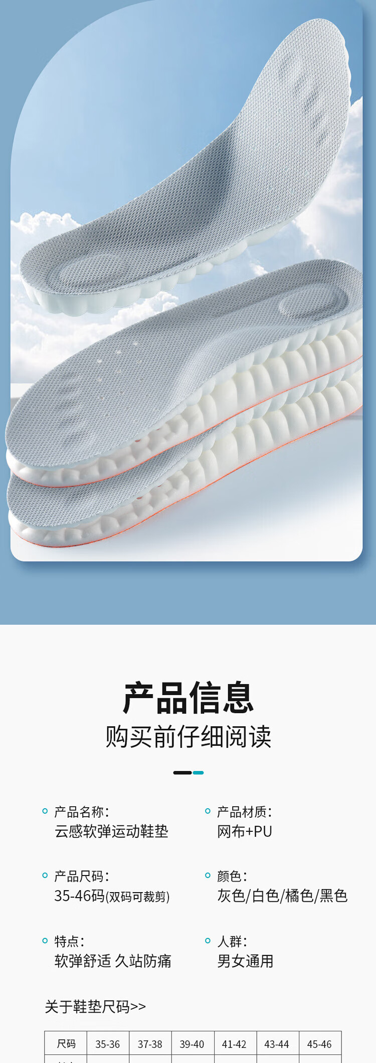 Suitable for pull-back insoles for men who stand for a long time without feeling tired when stepping on shit. U-shaped heel. Super soft, anti-pain, shock-absorbing, sweat-absorbent and breathable. 2 pairs in a pack. Gray and white. Super-soft, anti-pain/sweat-absorbent and breathable. Code 4142.