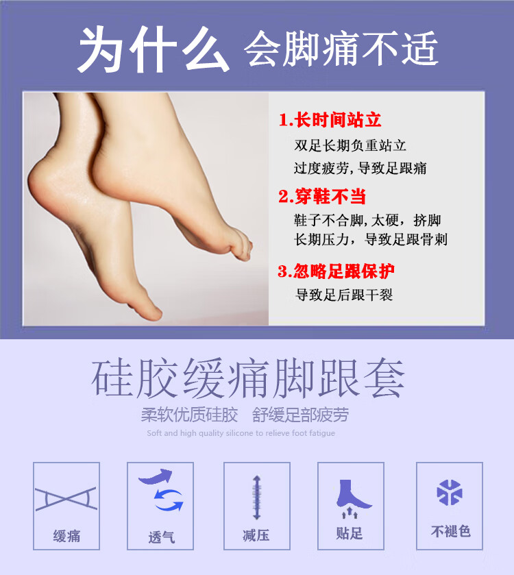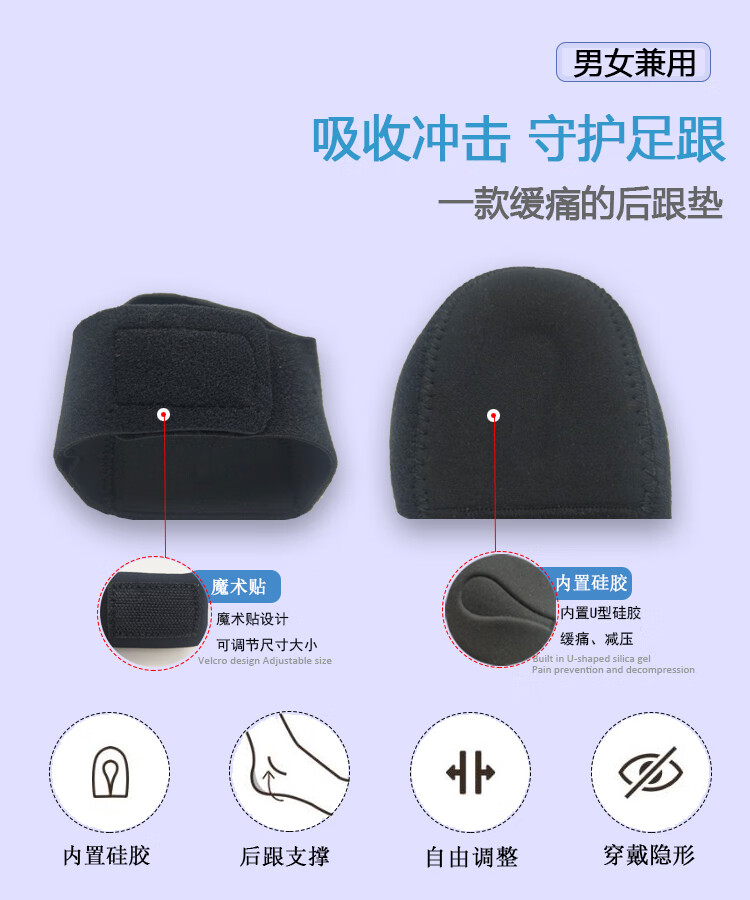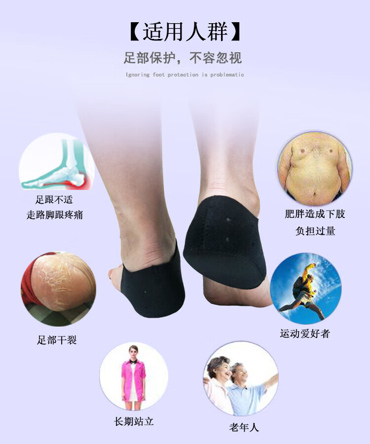 Plantar Fasciitis Insole for Men and Women Soft Silicone Bone Spur Achilles Tendonitis Relieve Foot Pain Heel Protector Black 1 Pair 40-45 Large Size
