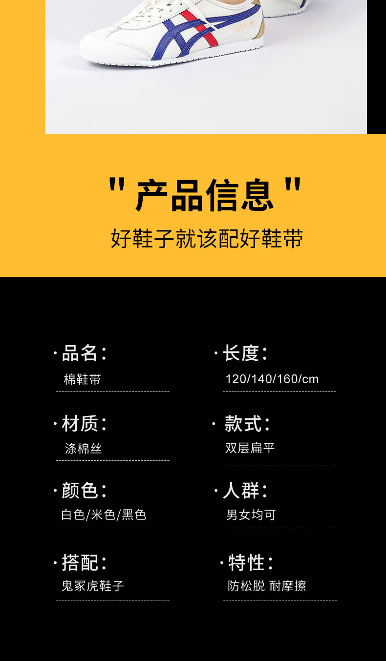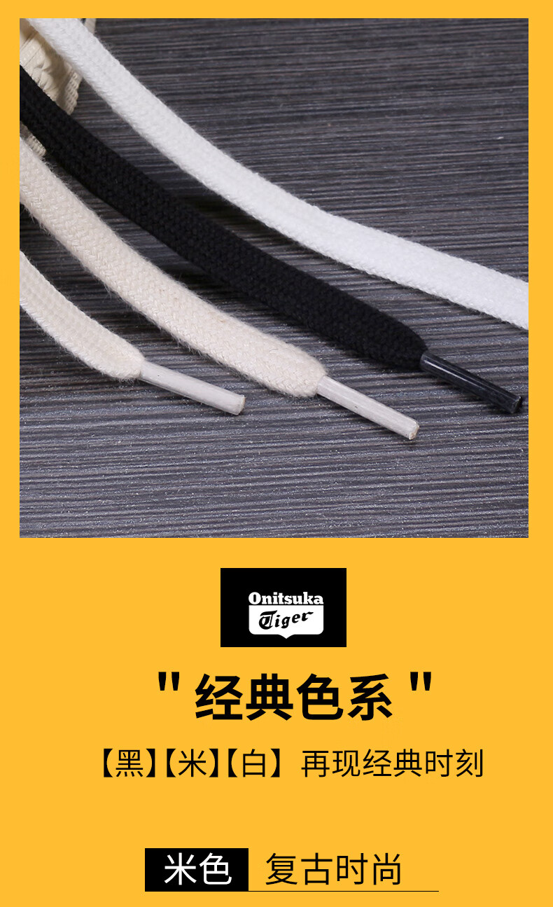 Classic shoelaces suitable for Tiger Onitsuka Tiger men Arthur moral training samba pure cotton flat women's black and white beige 1 pair (beige) retro classic 120cm