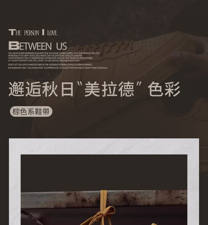 Brown shoelaces for men and women Air Force One wheat color sneakers khaki yellow brown coffee flat shoelace rope double layer flat-diamond style black 1 pair 120cm
