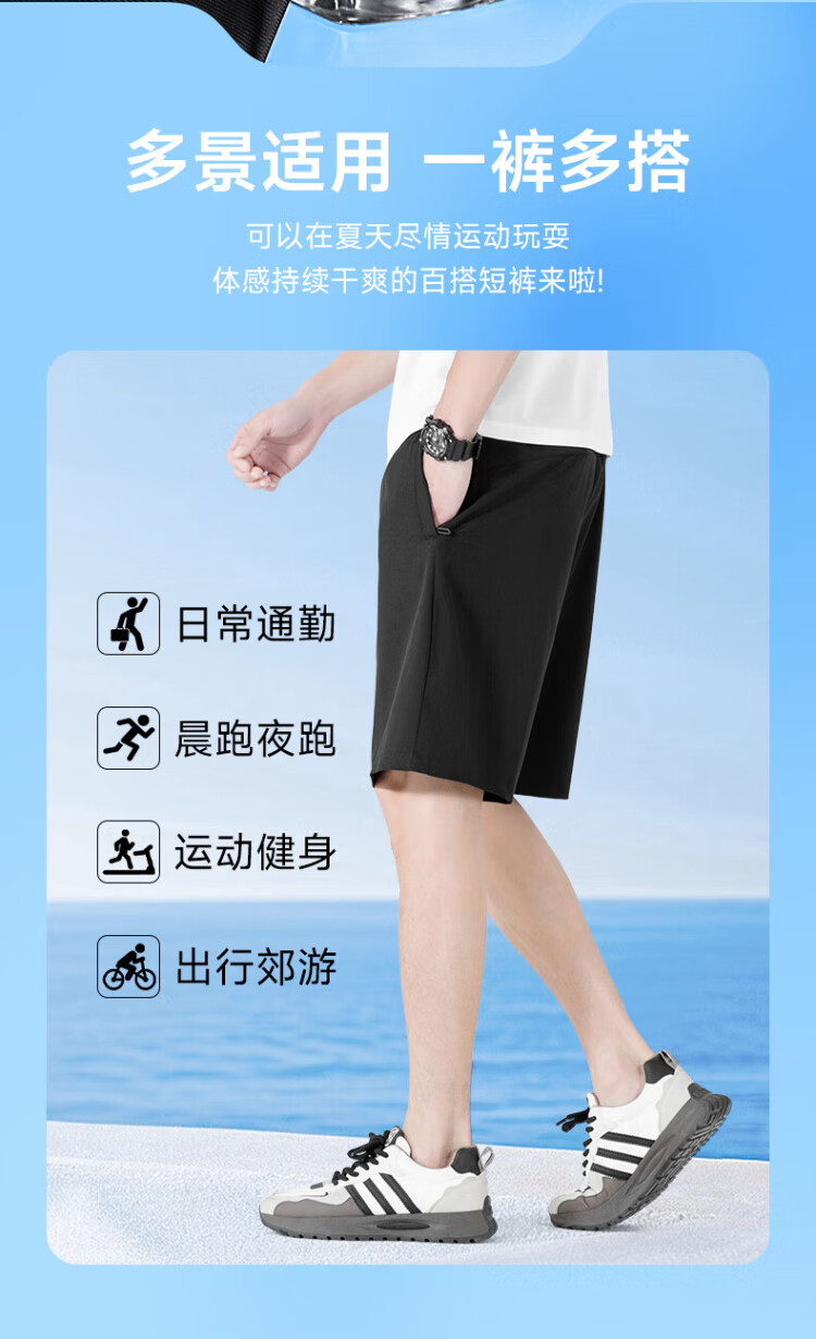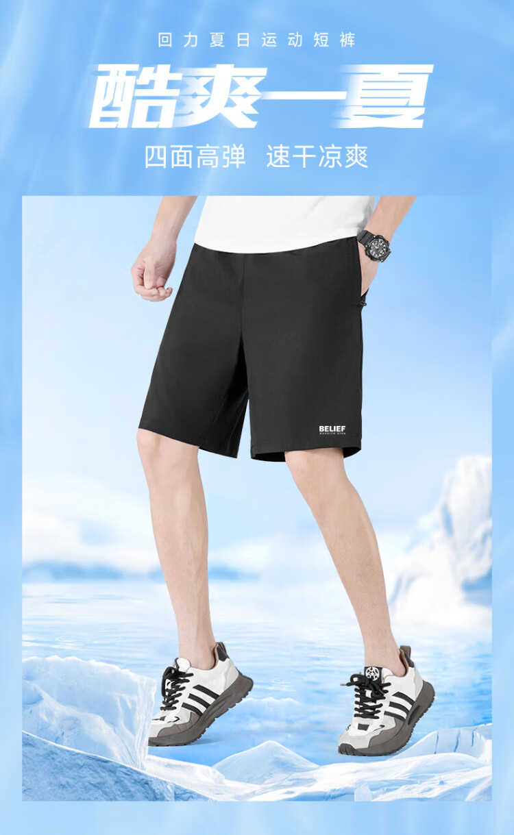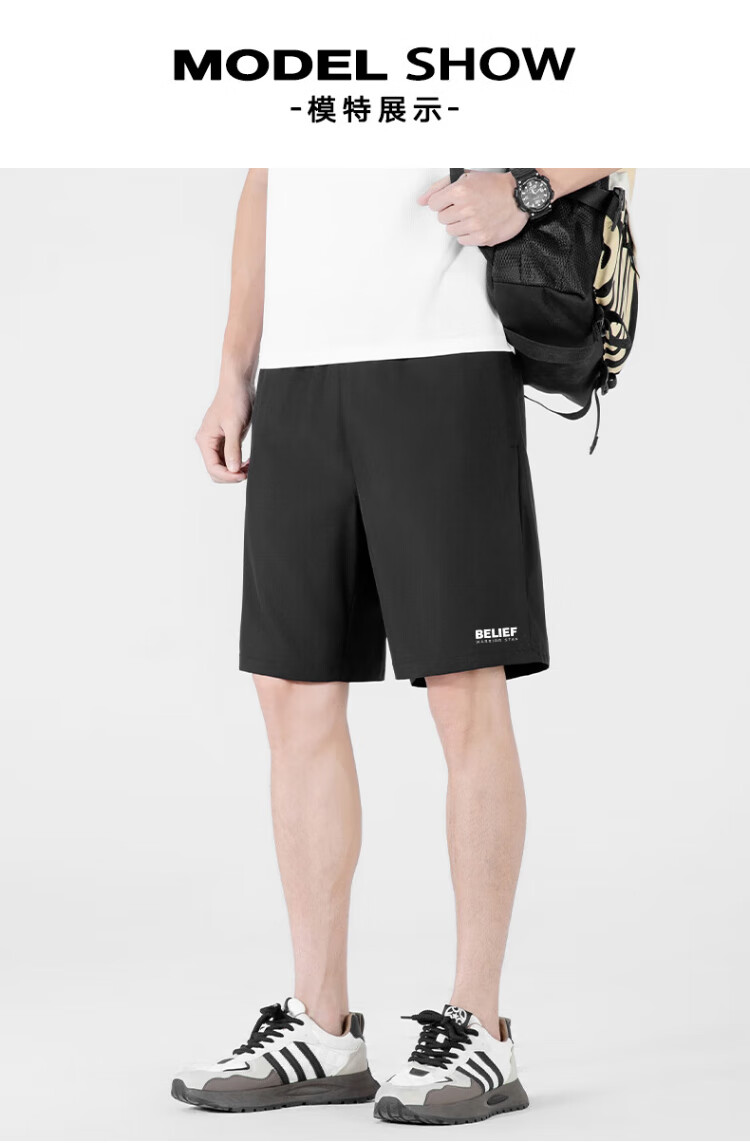 Pull back sports shorts men's summer ice silk quick-drying pants men's breathable casual pants running fitness lace-up basketball five-point pants