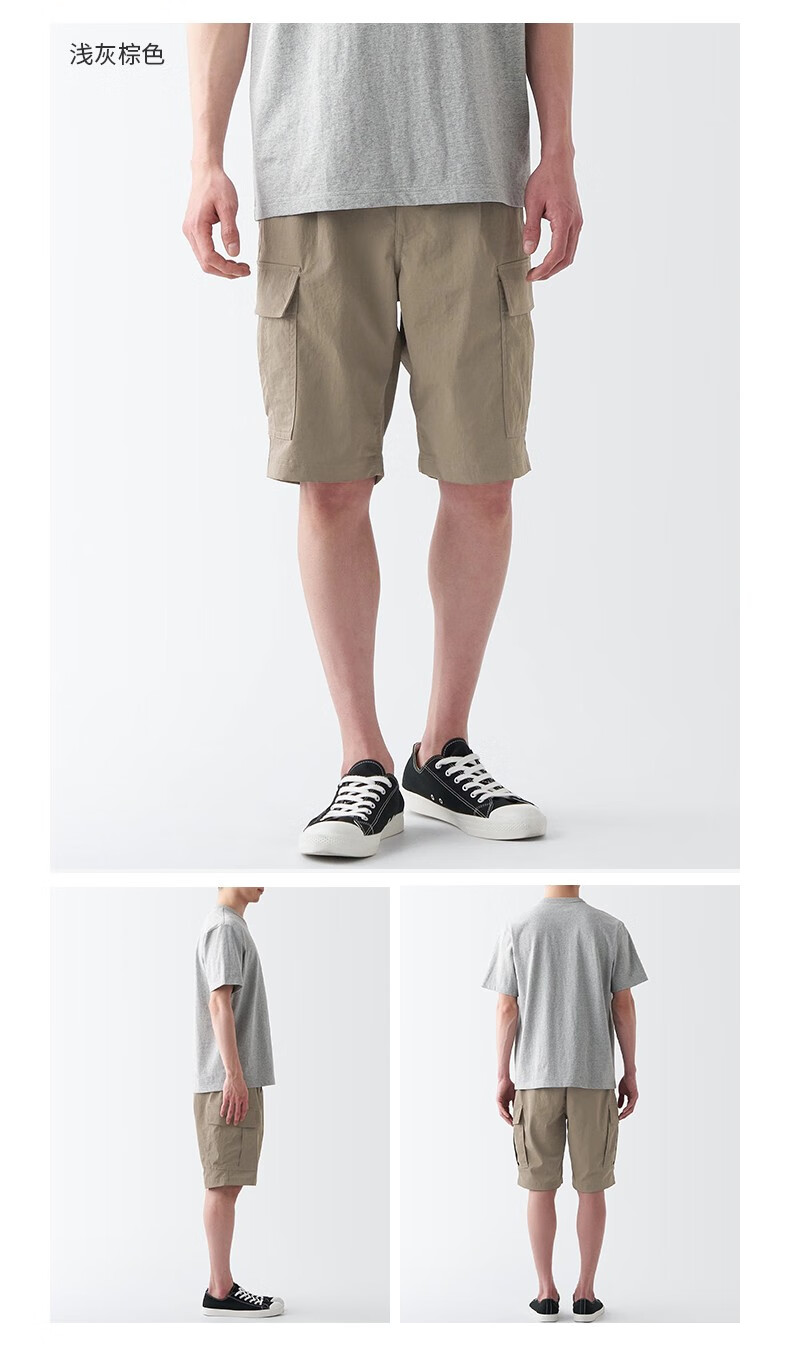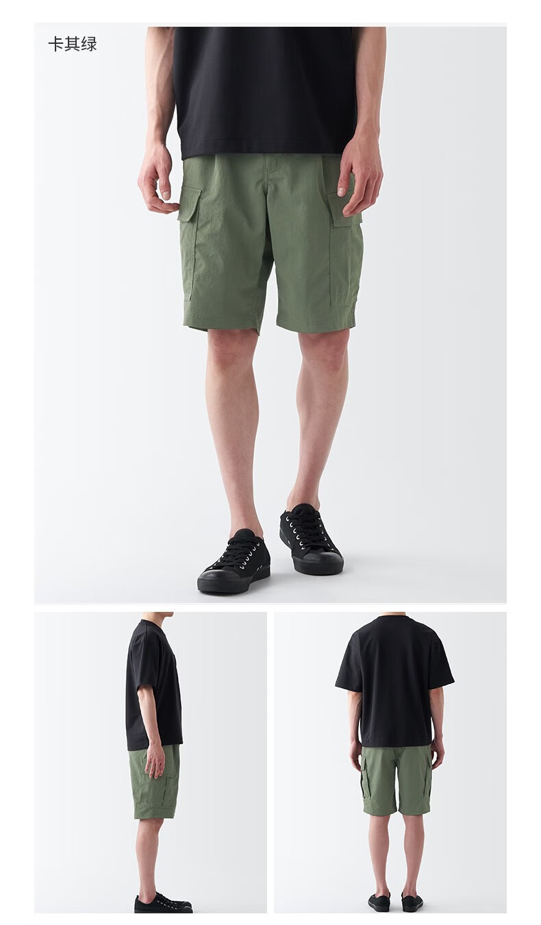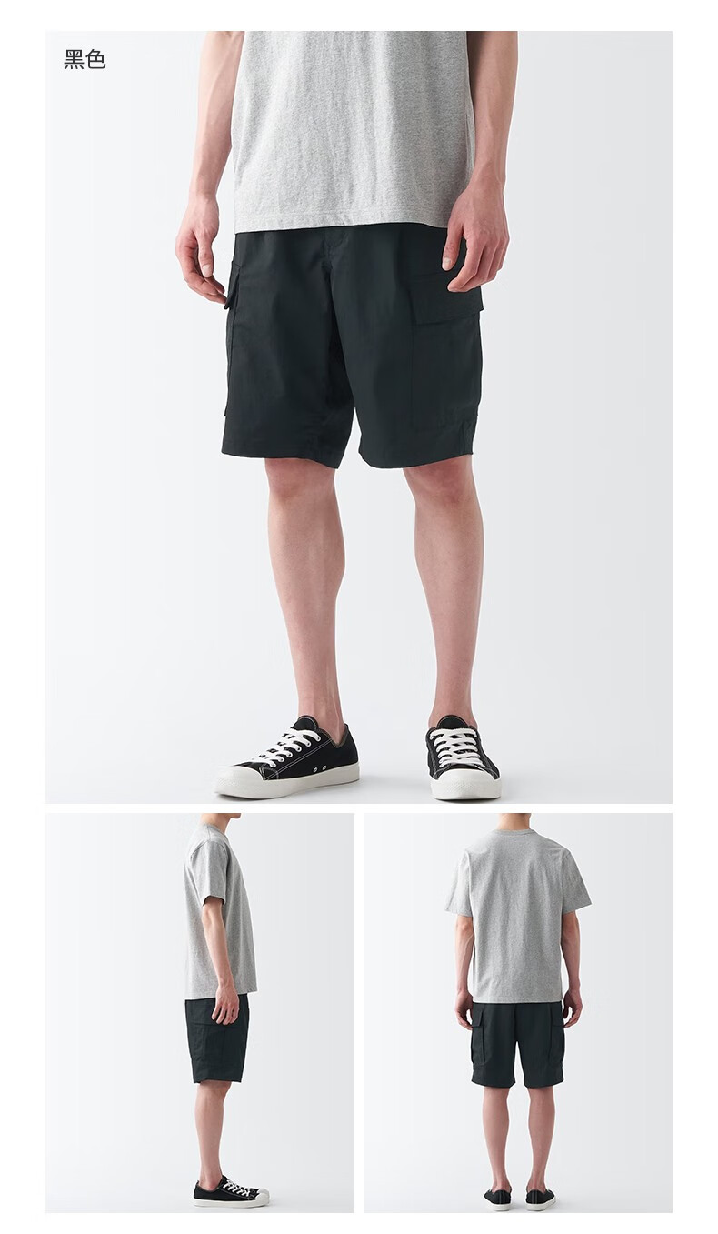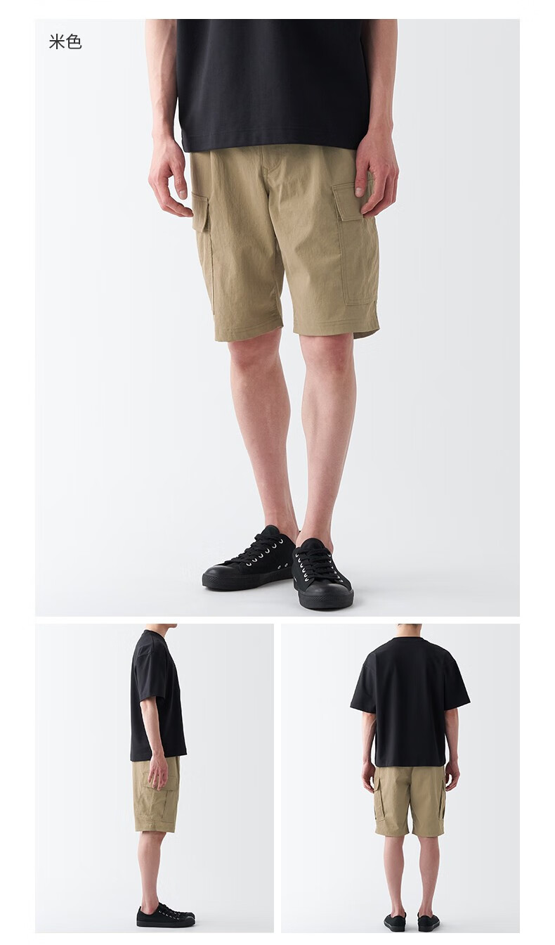 MUJI Men's Water Resistant Stretch Cargo Shorts Pants Casual Pants AED81C3S Black L