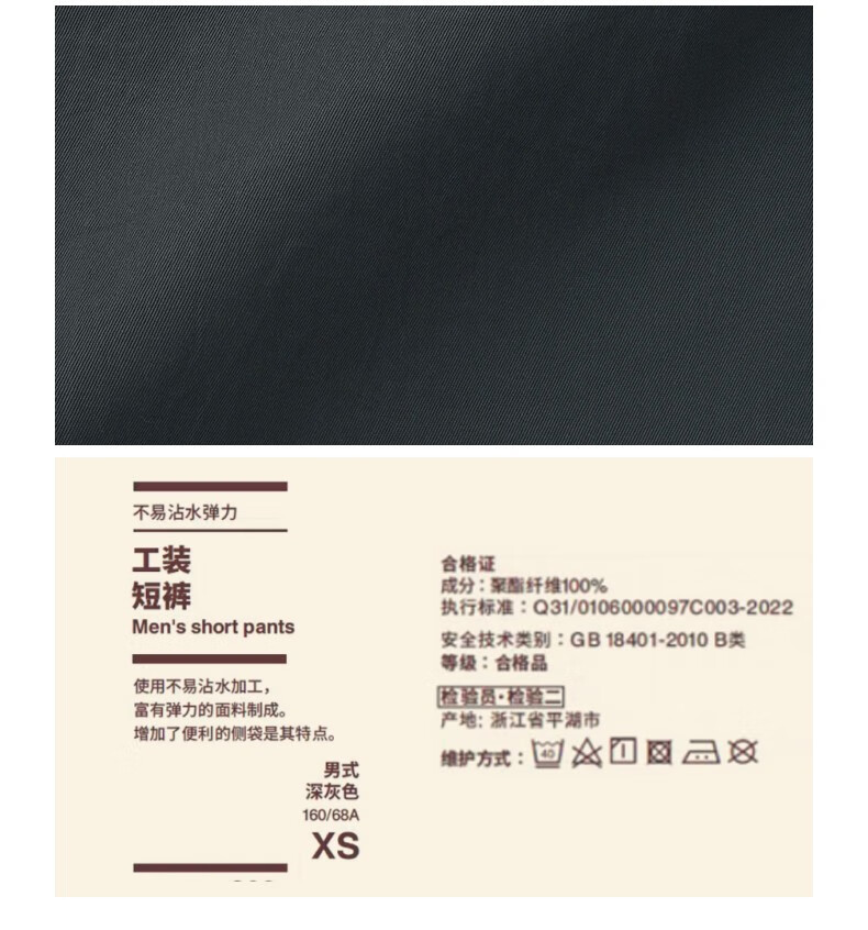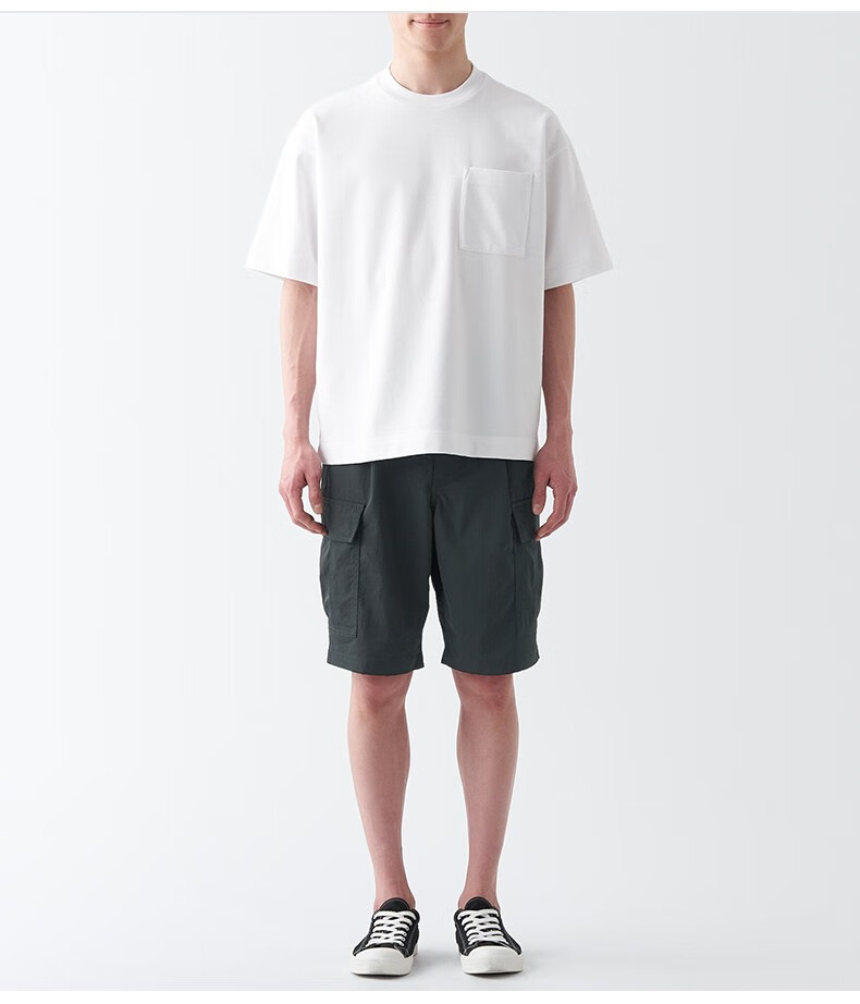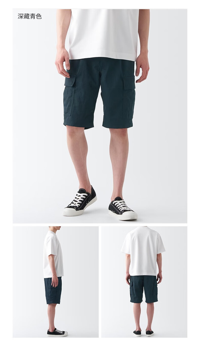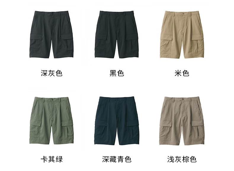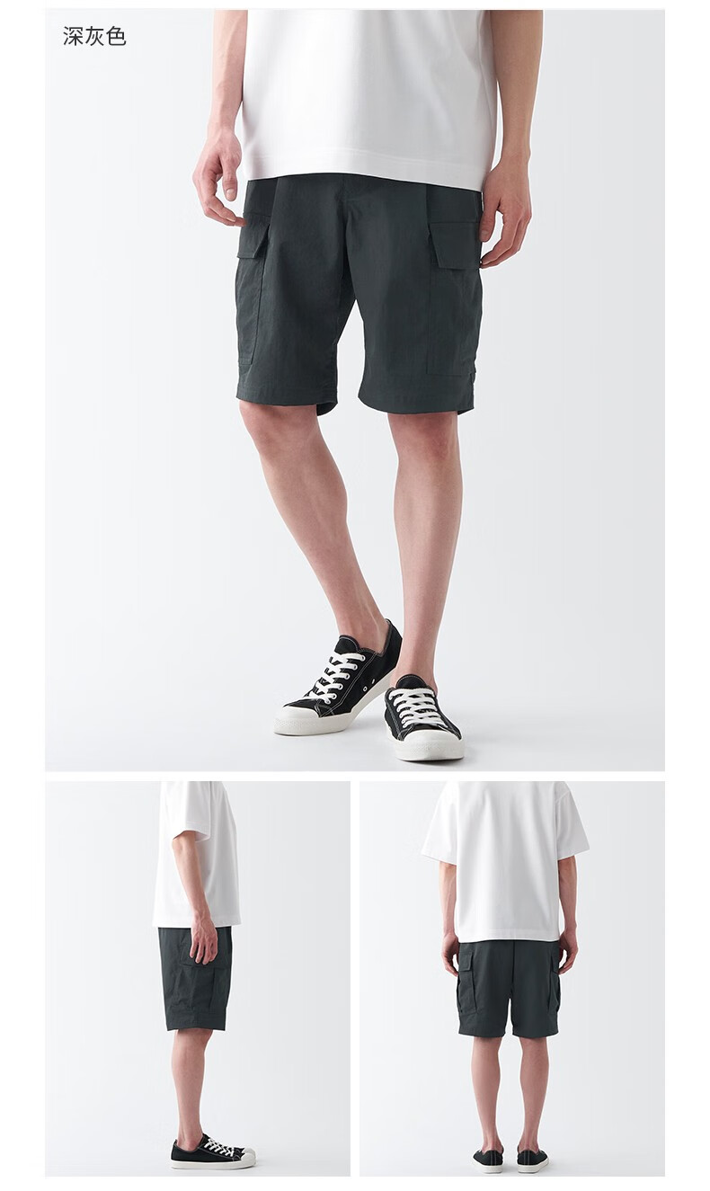 MUJI Men's Water Resistant Stretch Cargo Shorts Pants Casual Pants AED81C3S Black L