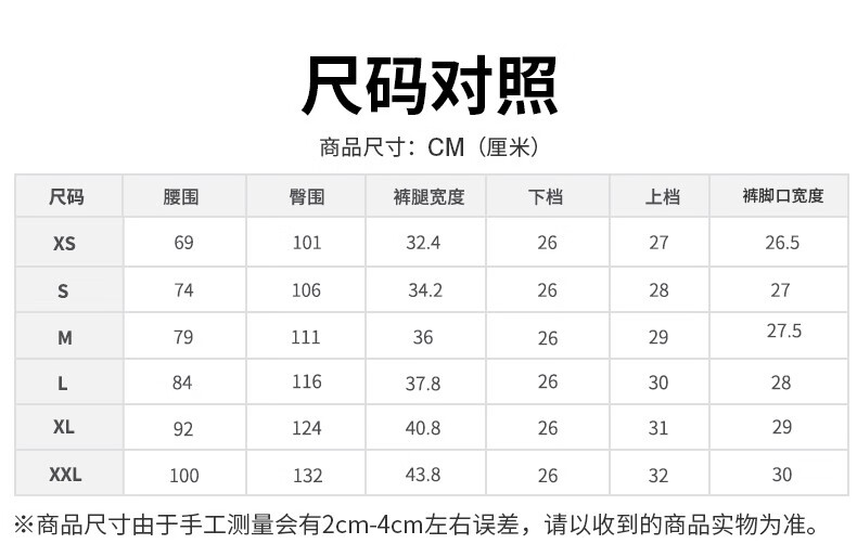 Outseam (cm) 99 cm 101.5 cm 104 cm 106.5 cm 109 cm