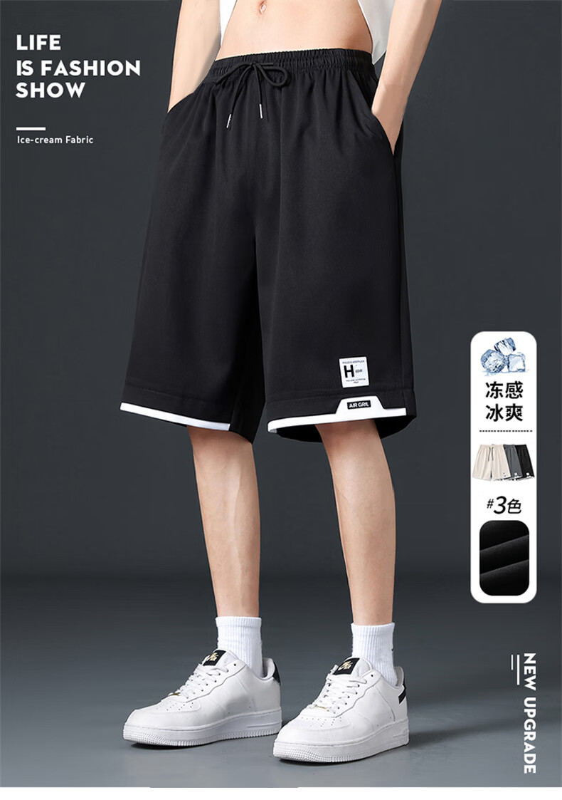Maoni Ice Silk Shorts Men's Summer 2025 New Quick-drying Workwear Five-cent Large Pants Loose Casual Sports Pants Black + Dark Gray Main Image Model XL Recommended Weight 110-140 Jin Jin is equal to about 0.5 kg