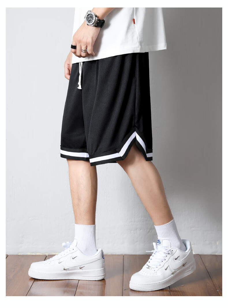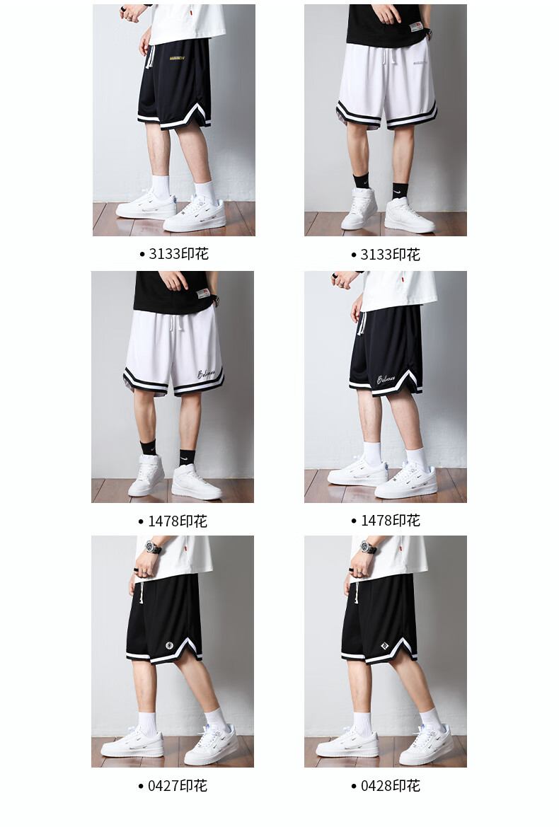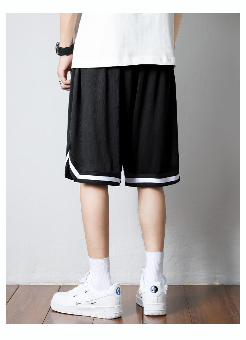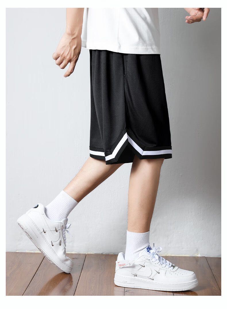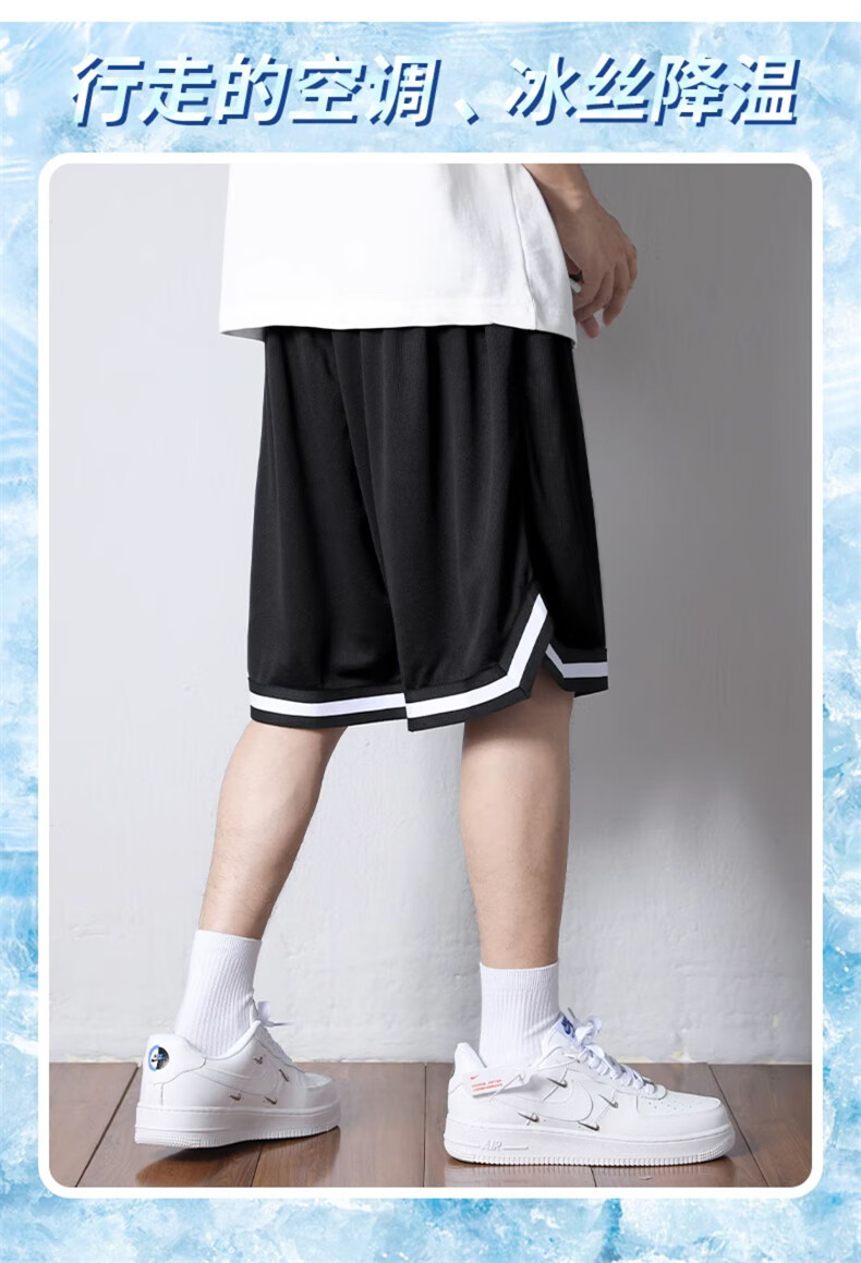 Jingxi shorts men's summer American sports fitness basketball pants boys loose ice silk quick-drying men's five-point large pants with label - black + label - white XL recommended weight 110-140 Jin Jin is equal to about 0.5 kg