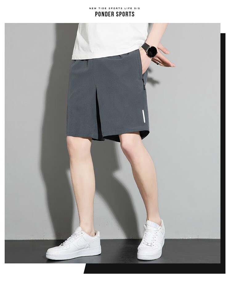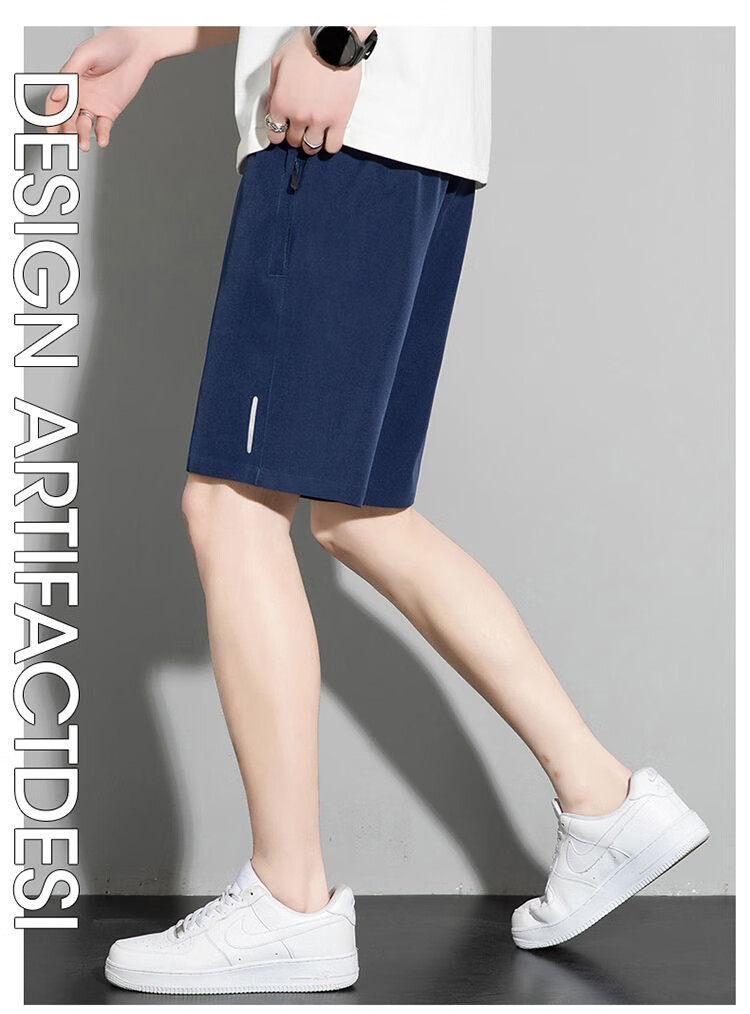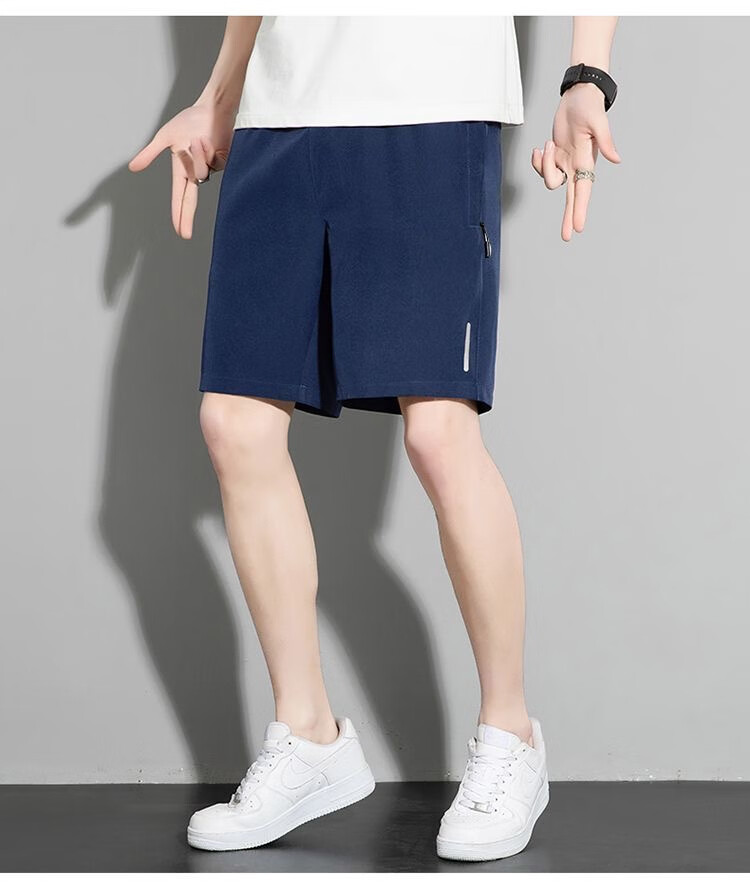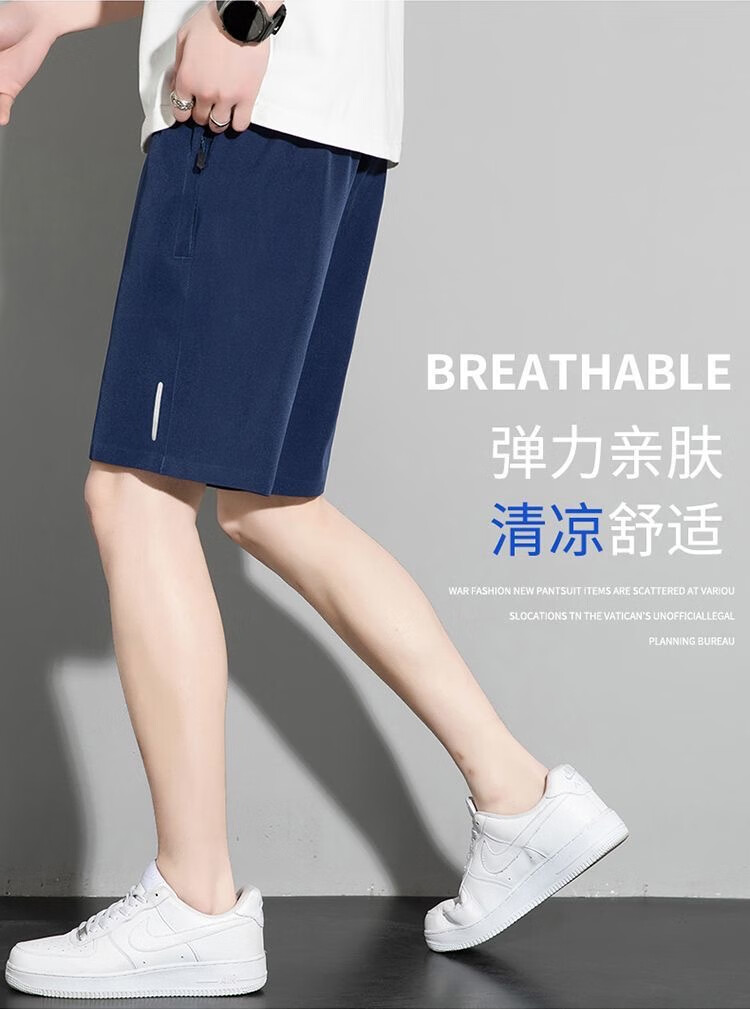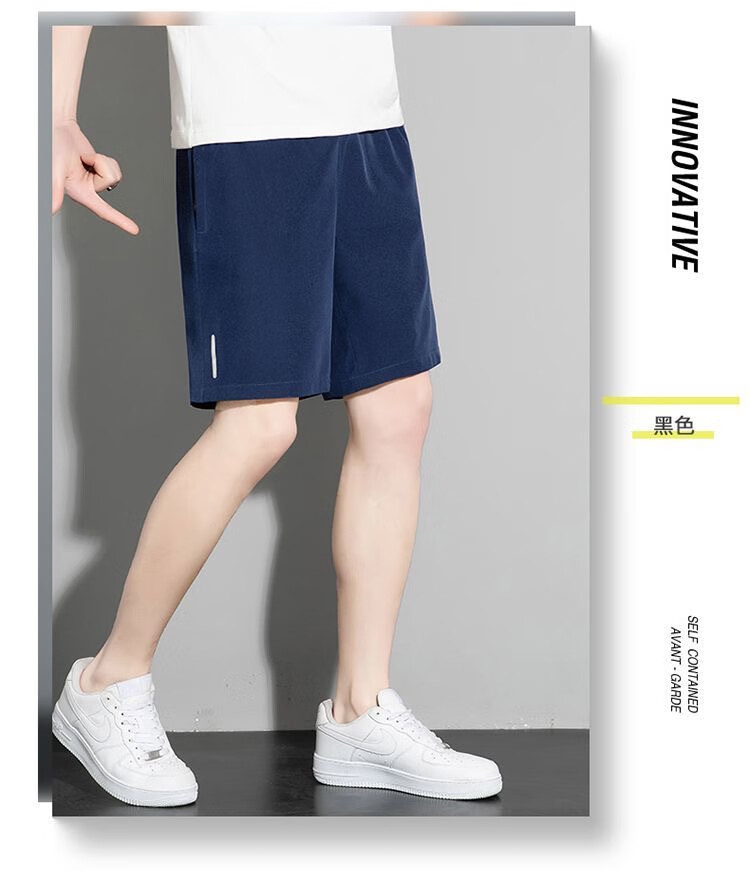 Lightweight and breathable shorts men's quick-drying ice silk loose casual sports pants running fitness basketball five-point pants blue XL