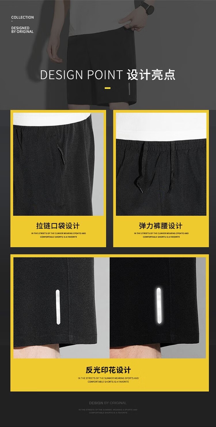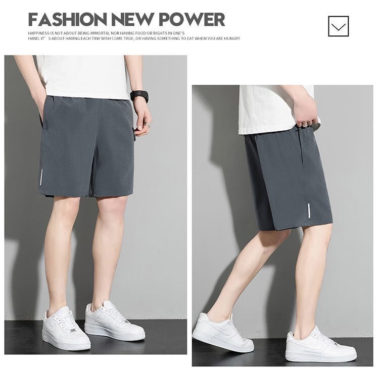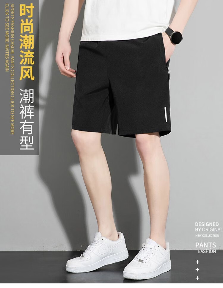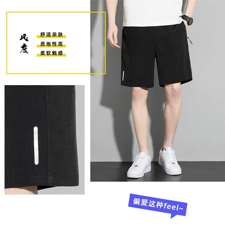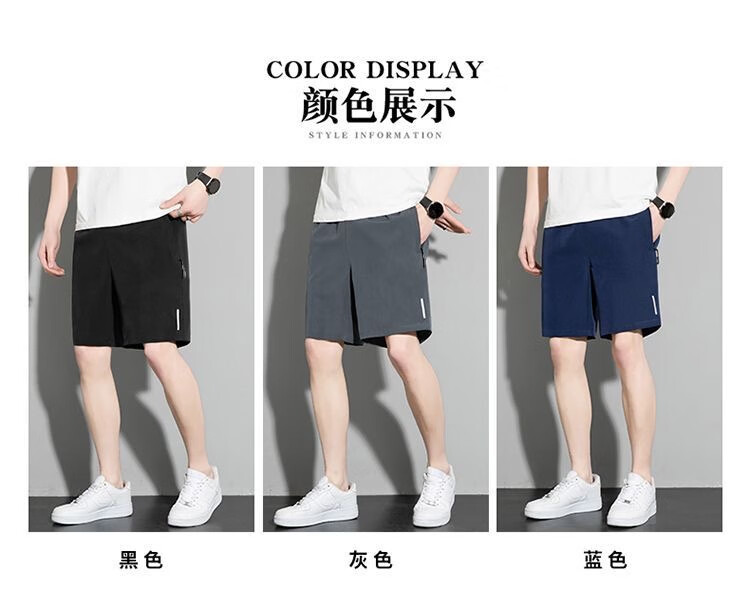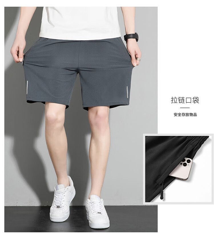 Lightweight and breathable shorts men's quick-drying ice silk loose casual sports pants running fitness basketball five-point pants blue XL