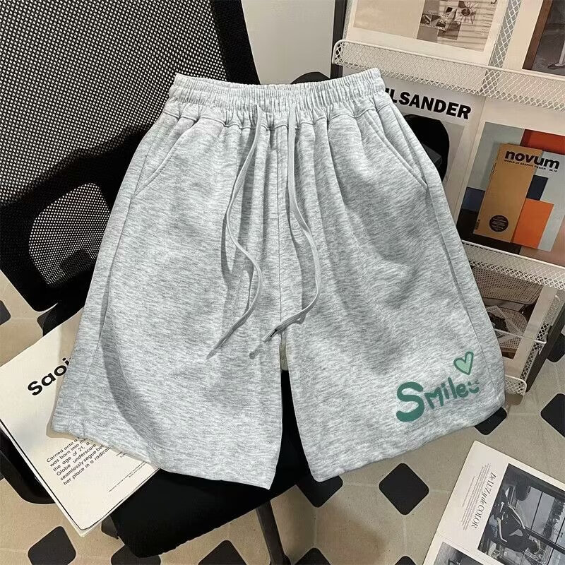 Large size breathable and soft American casual pants men's sports shorts men's summer outer wear loose five-point pants men Long GR307-grey 5XL