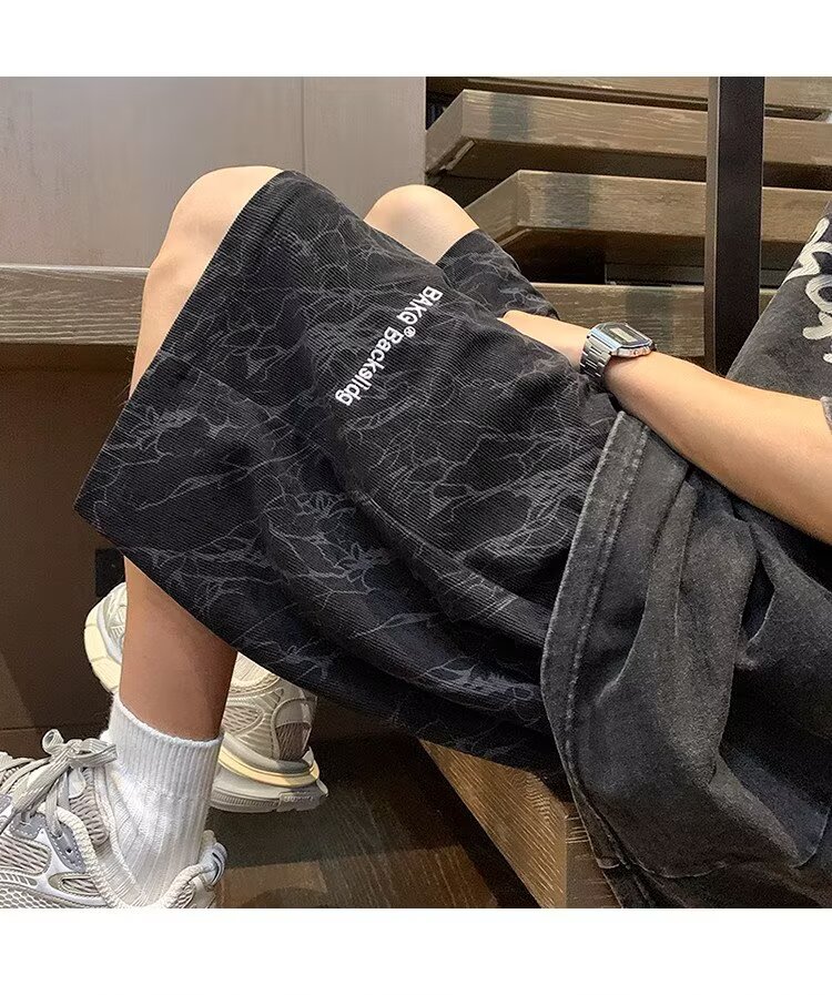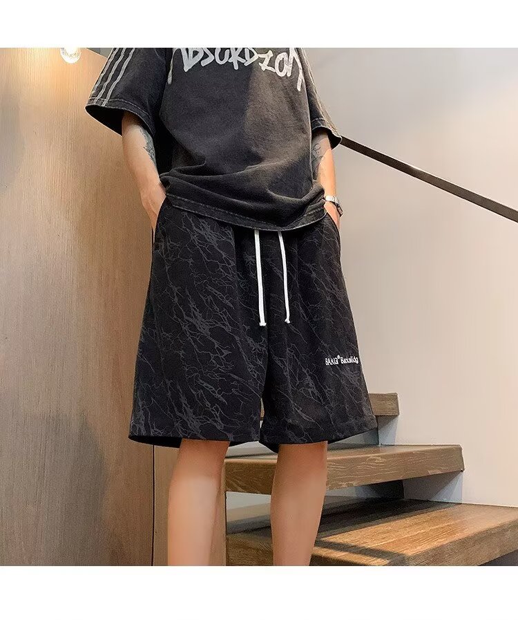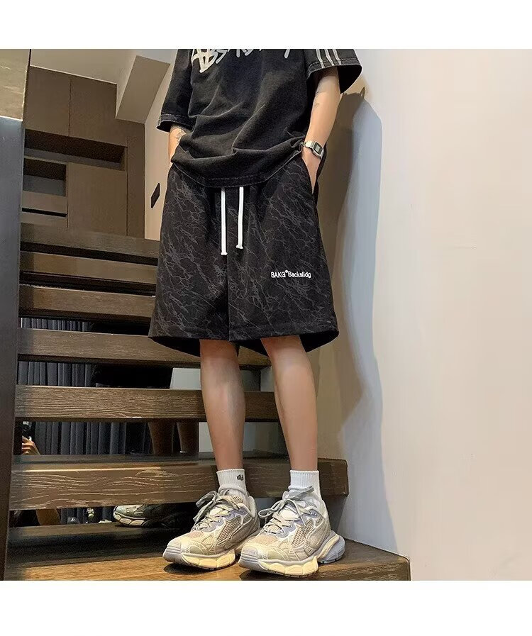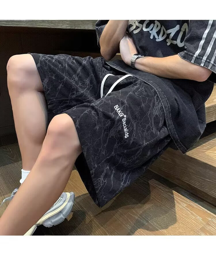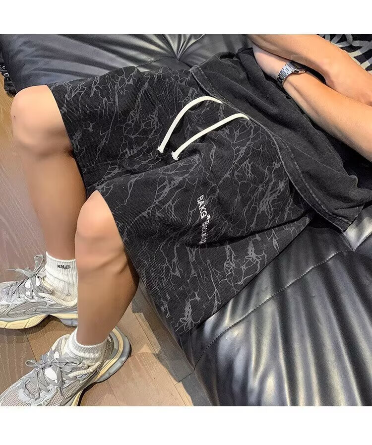 Huangzhen Black Thin Shorts Boys Summer 2025 Outerwear American Fashion Brand Loose Sports and Casual Five Points Pants Men Black XL