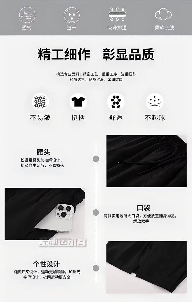 Three-quarter pants running shorts mobile phone track and field marathon sports shorts quick-drying men's and women's fitness pants trend black-Chaochao Q43 XL
