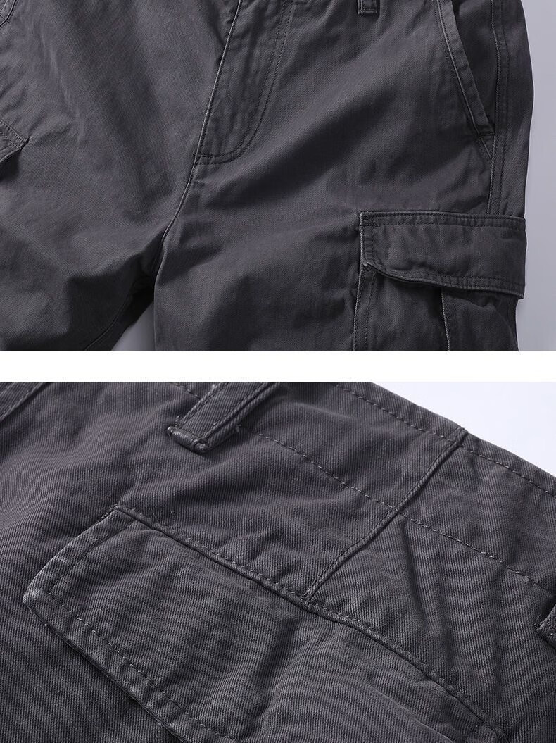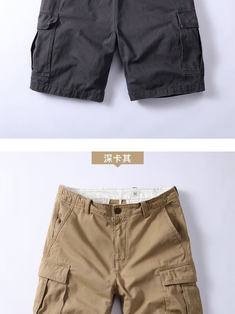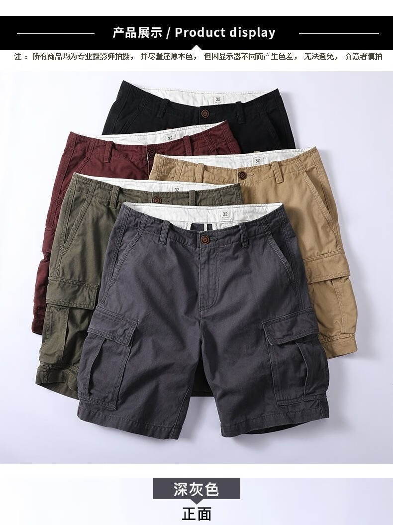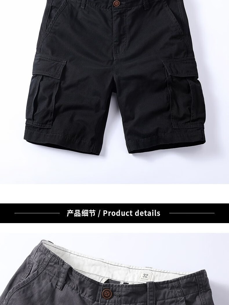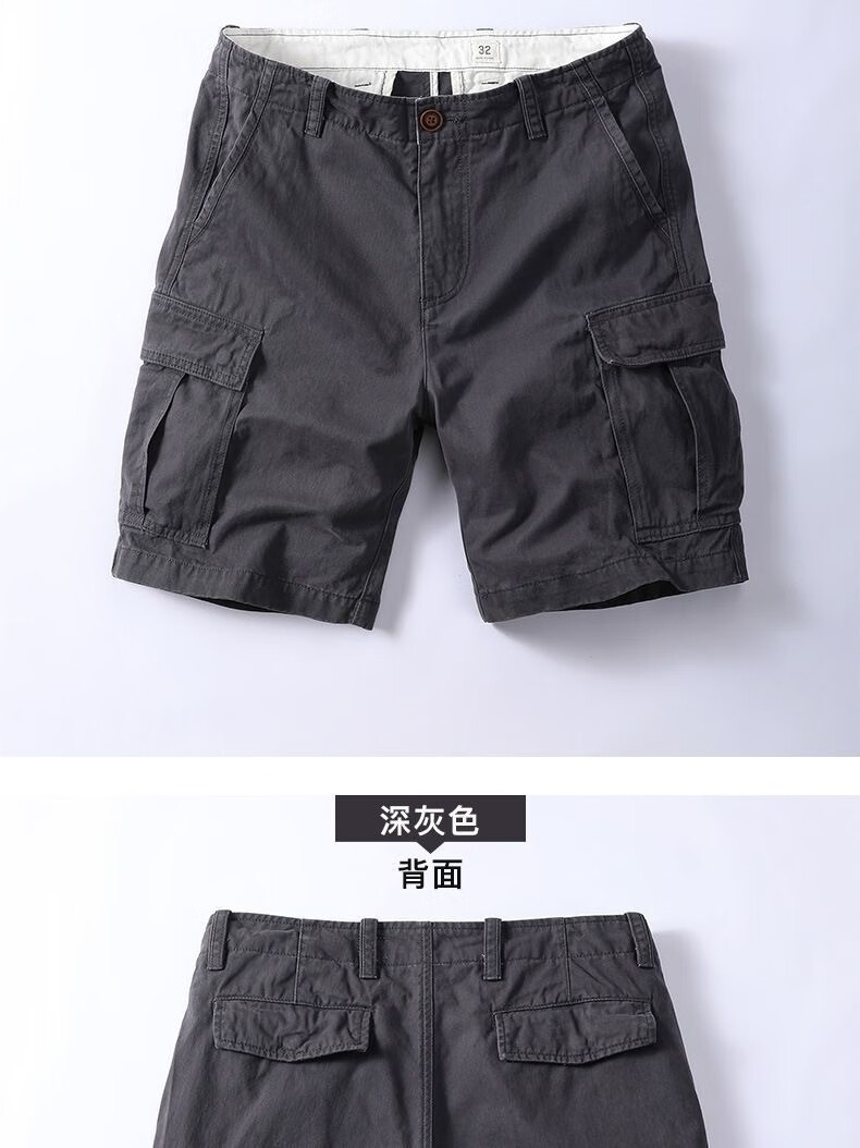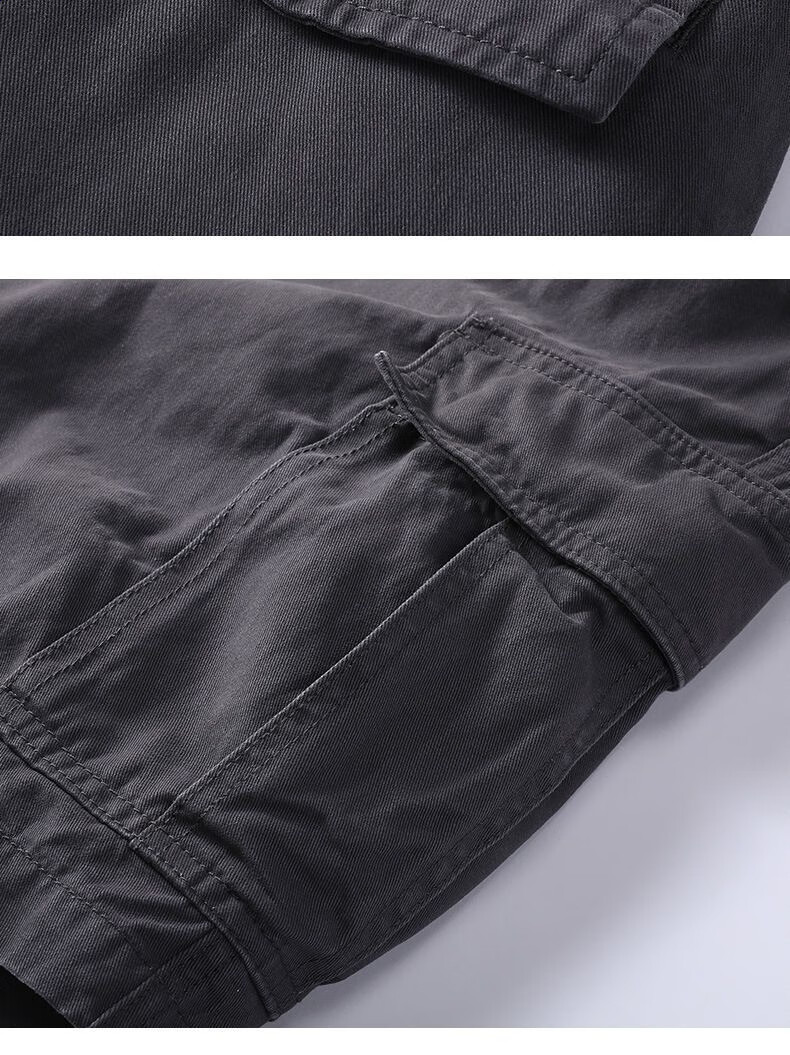 Men's Summer Thin Textured Shorts Men's Casual Shorts Straight Large Size Multi-Pocket Workwear Quarter Pants Medium Pants Dark Gray 2XL