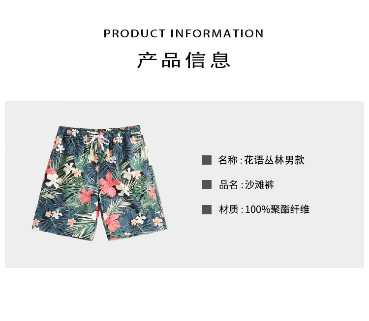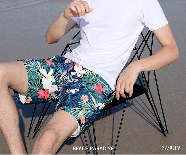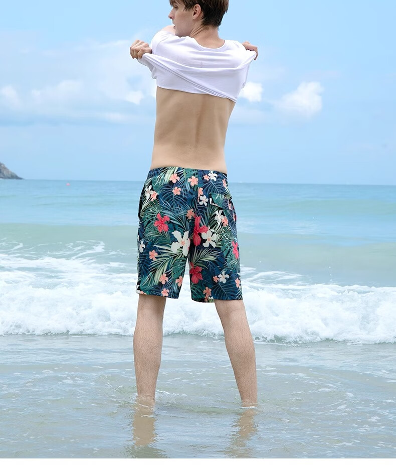 Bai Qixin men's trendy beach pants quick-drying loose large size swimming trunks beach vacation can splash shorts five-quarter pants hot spring pants Huayu Jungle Beach Pants XL Recommended 120-140Jin Jin is equal to 0.5 kg