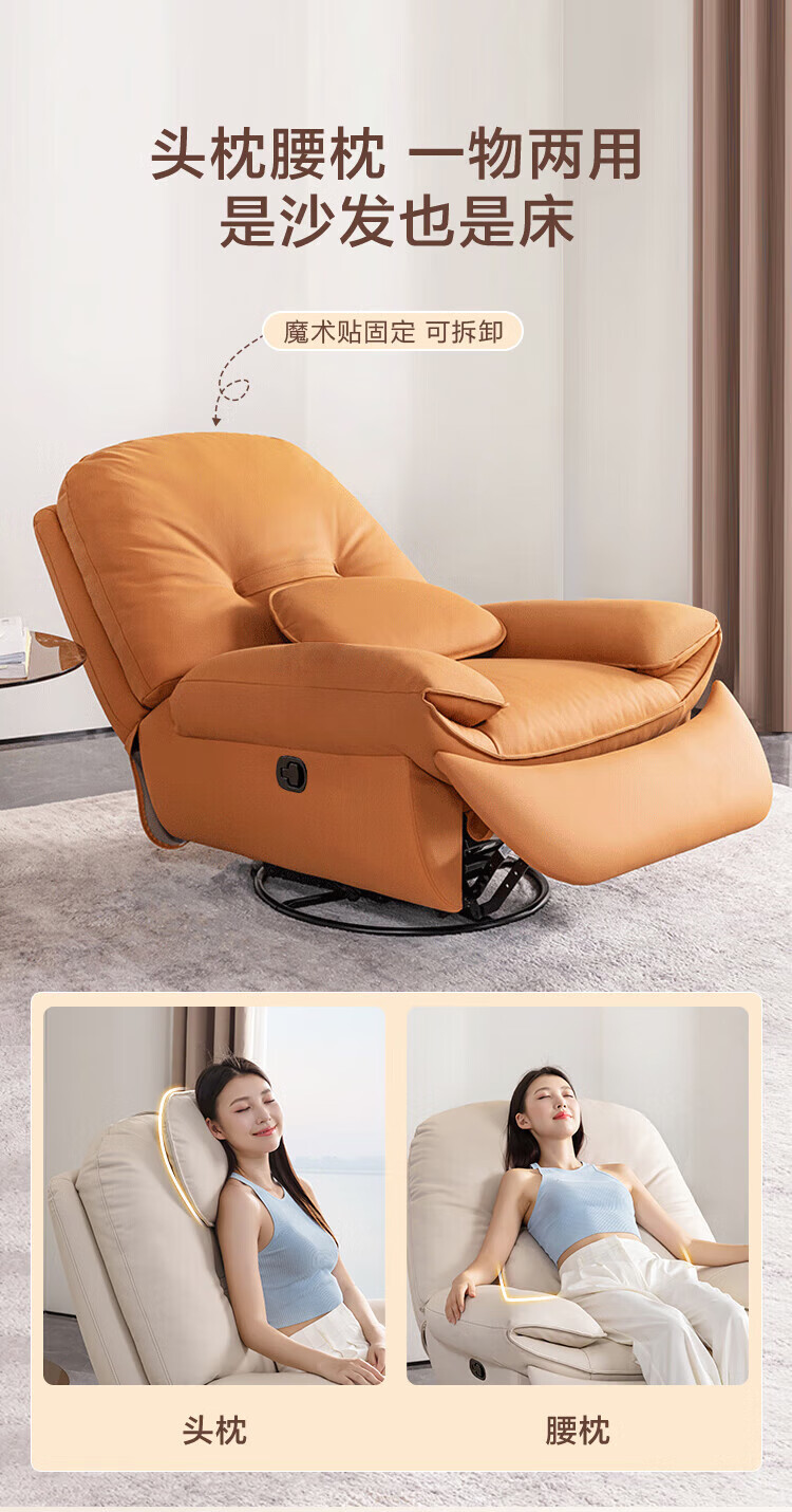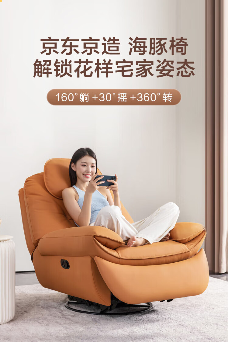 Dolphin chair made in Tokyo, single sofa, living room, small apartment, lazy rocking chair, sofa bed, manual orange