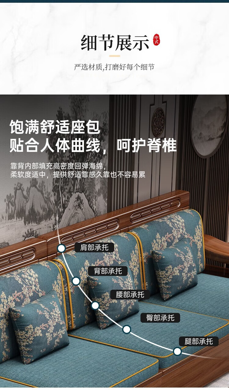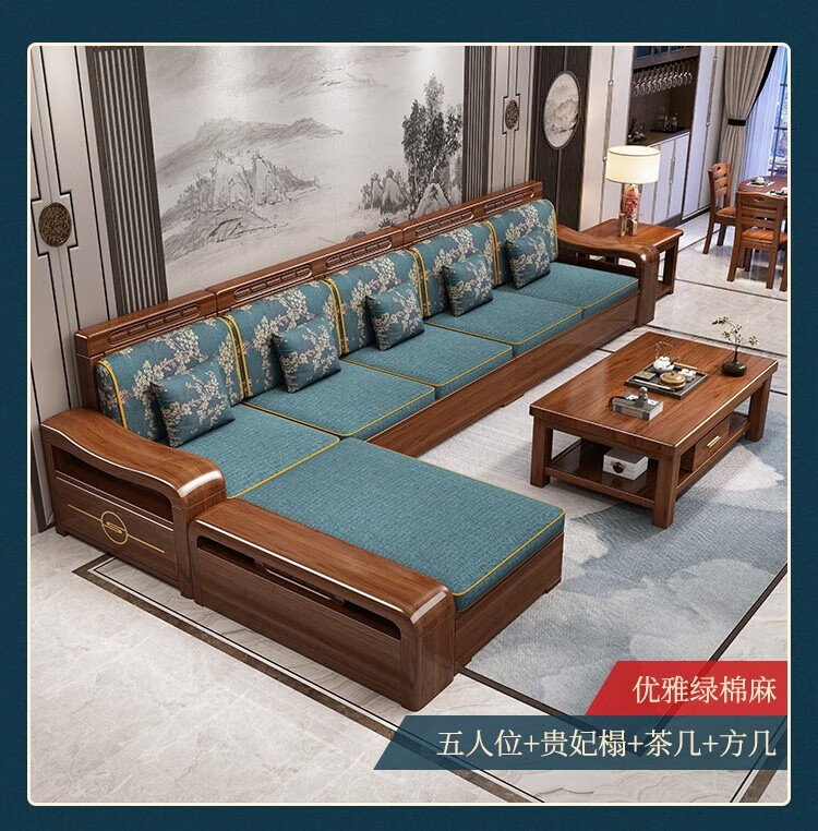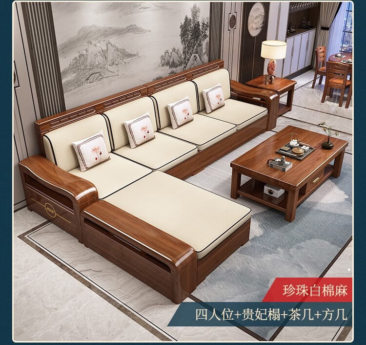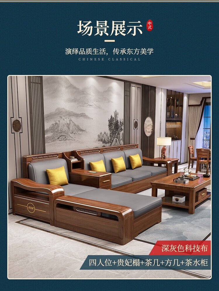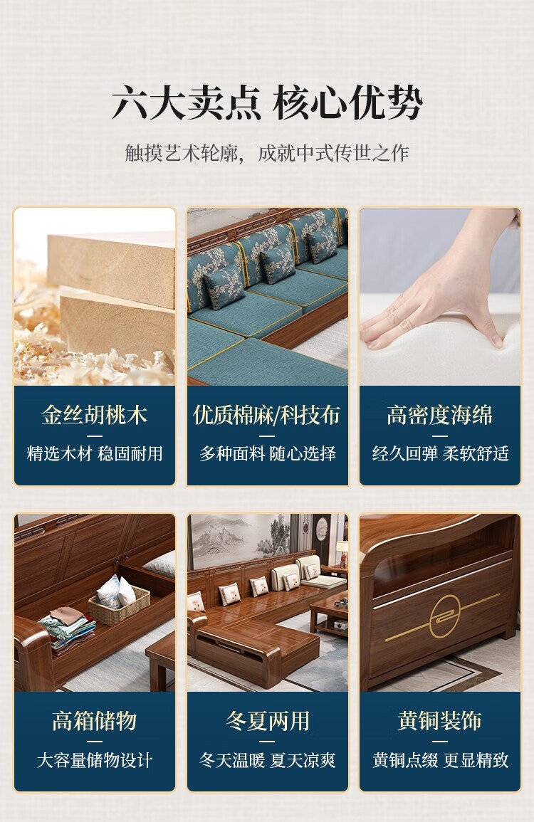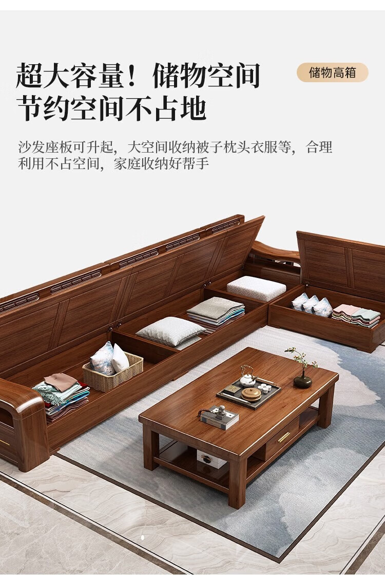 Chenya sofa walnut solid wood sofa combination modern Chinese style living room winter and summer dual-purpose imperial concubine storage wooden furniture 70% users choose four-seater + imperial concubine couch + coffee table