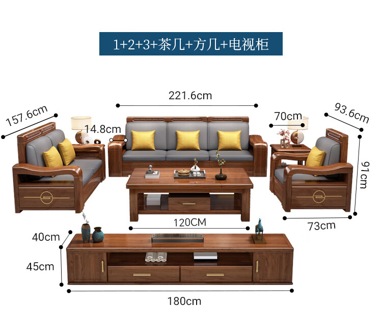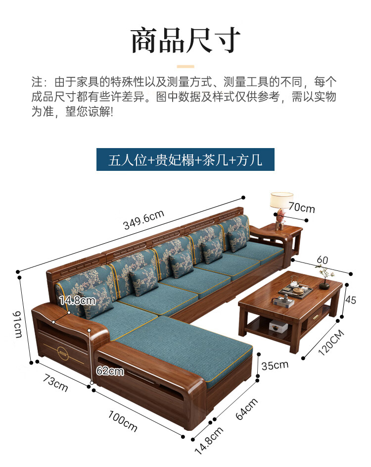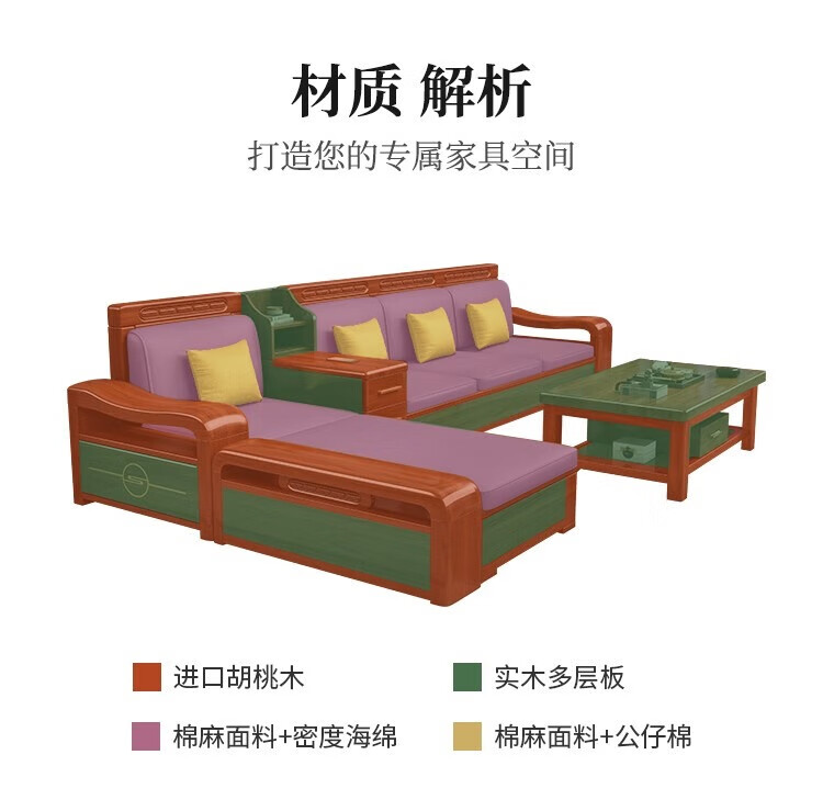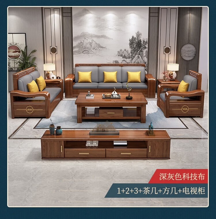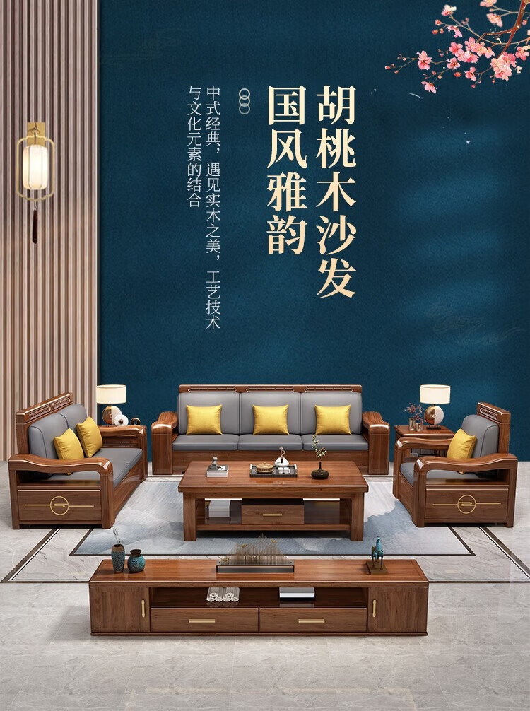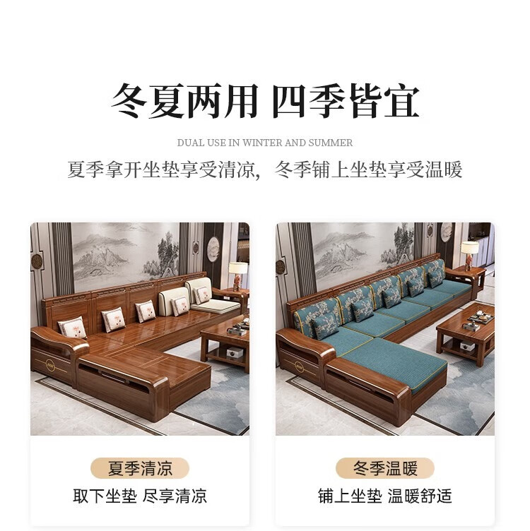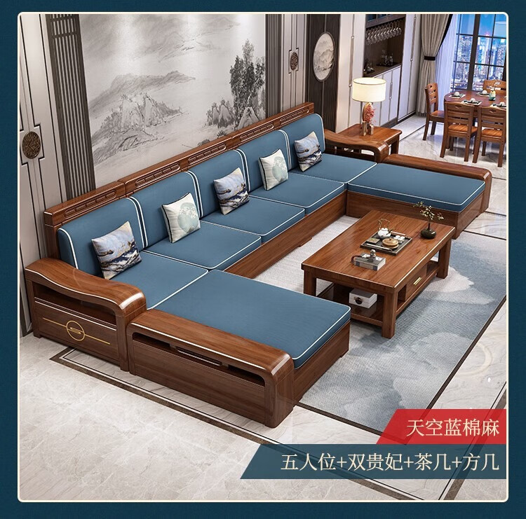 Chenya sofa walnut solid wood sofa combination modern Chinese style living room winter and summer dual-purpose imperial concubine storage wooden furniture 70% users choose four-seater + imperial concubine couch + coffee table