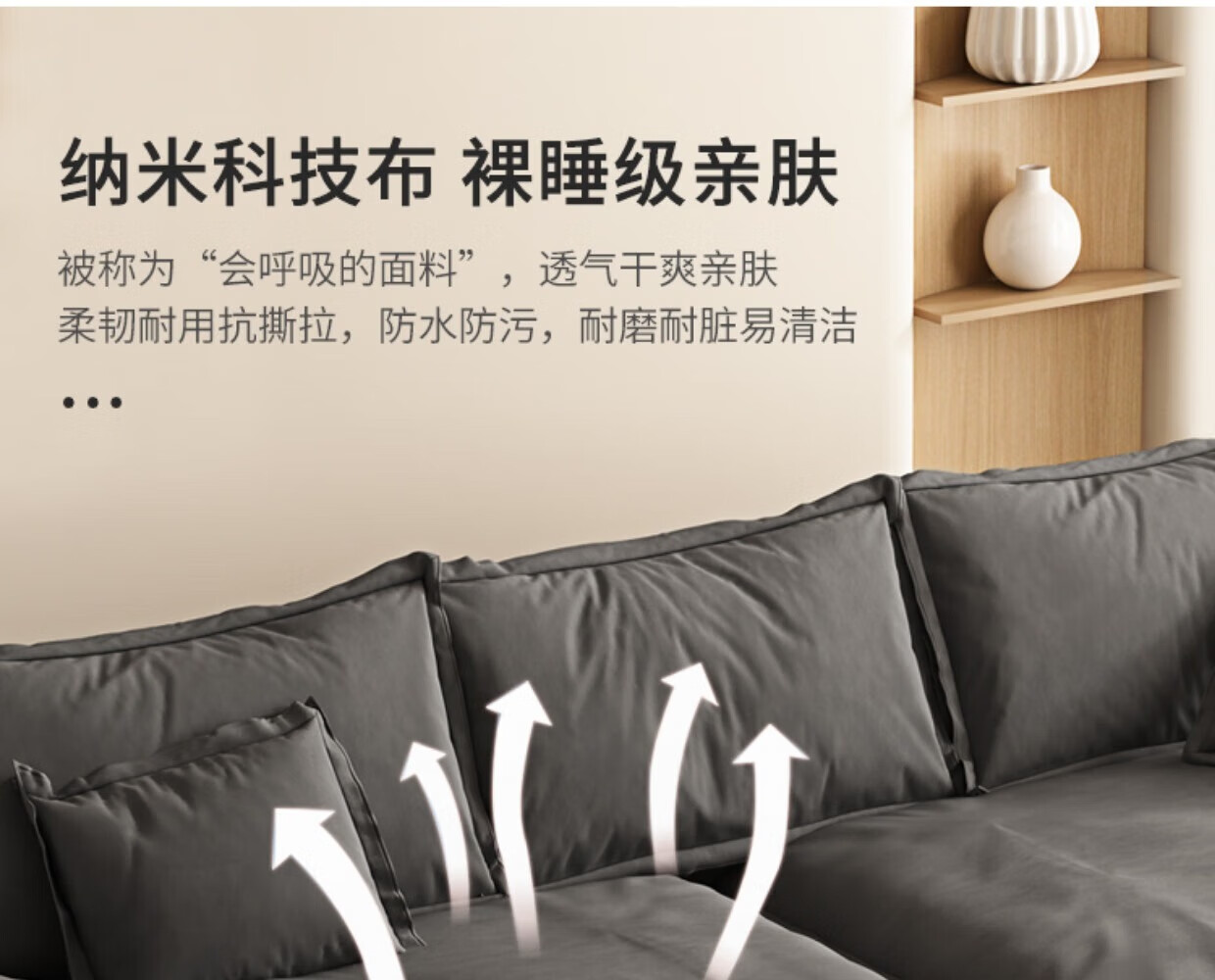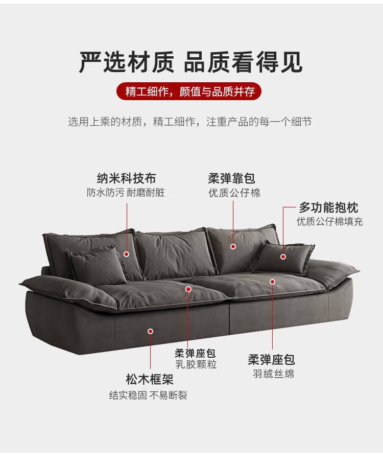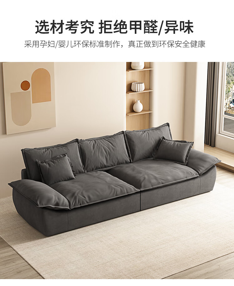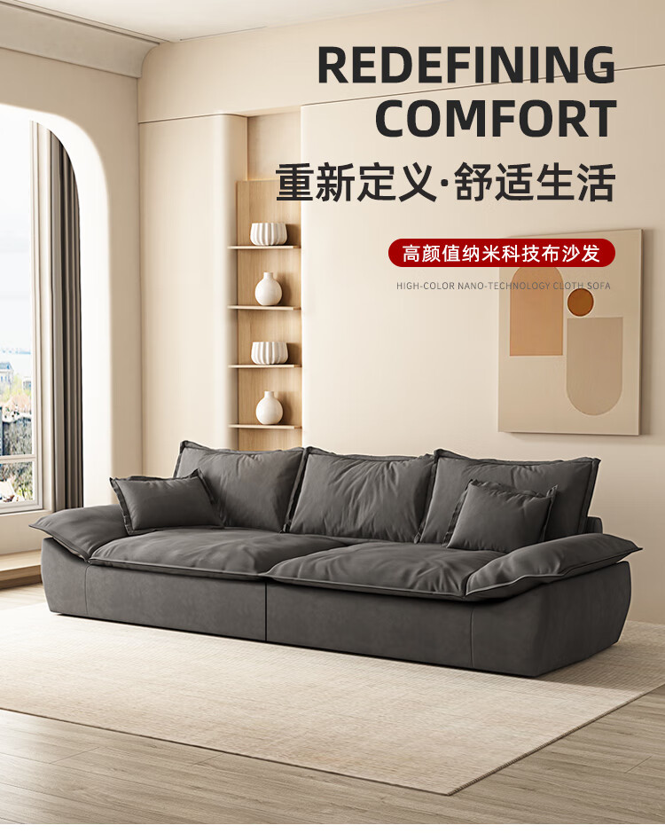 Sui Zhi modern simple fabric sofa living room small apartment home light luxury three-seat sailboat sofa straight row fabric sofa dark gray - skin-friendly velvet + high resilience silk cotton cushion three-seat 2.1m 80cm wide