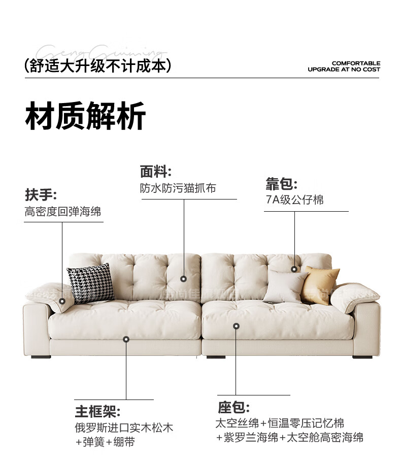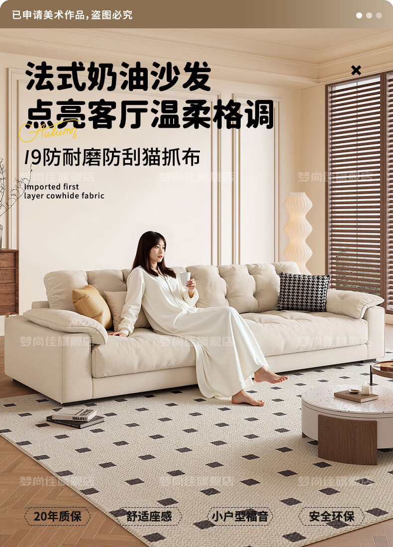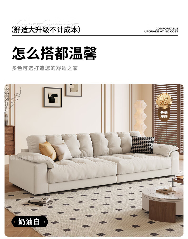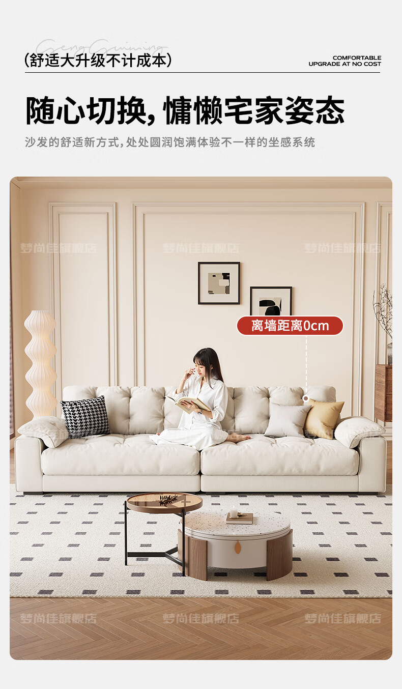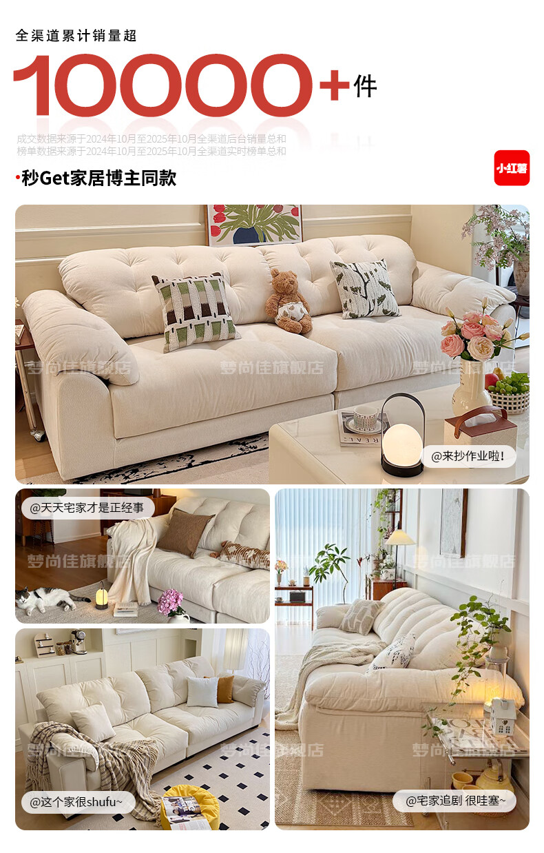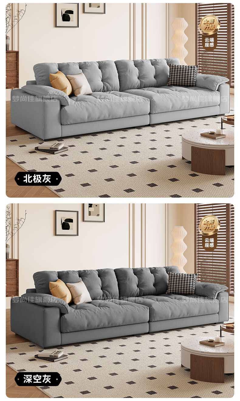 Meng Shangjia Government Subsidy Cream Style Cat Scratch Fabric Living Room Sofa Apartment Small Apartment Modern Simple Cloud Straight Row Sofa National Subsidy 2.4m Large Three-Seater Flagship Edition - Cat Scratch Cloth - Violet + Ordinary Sponge