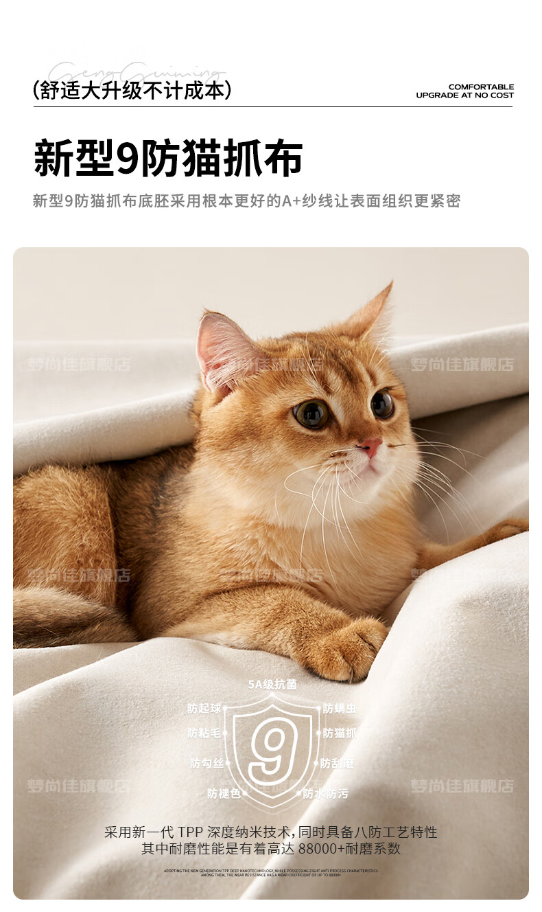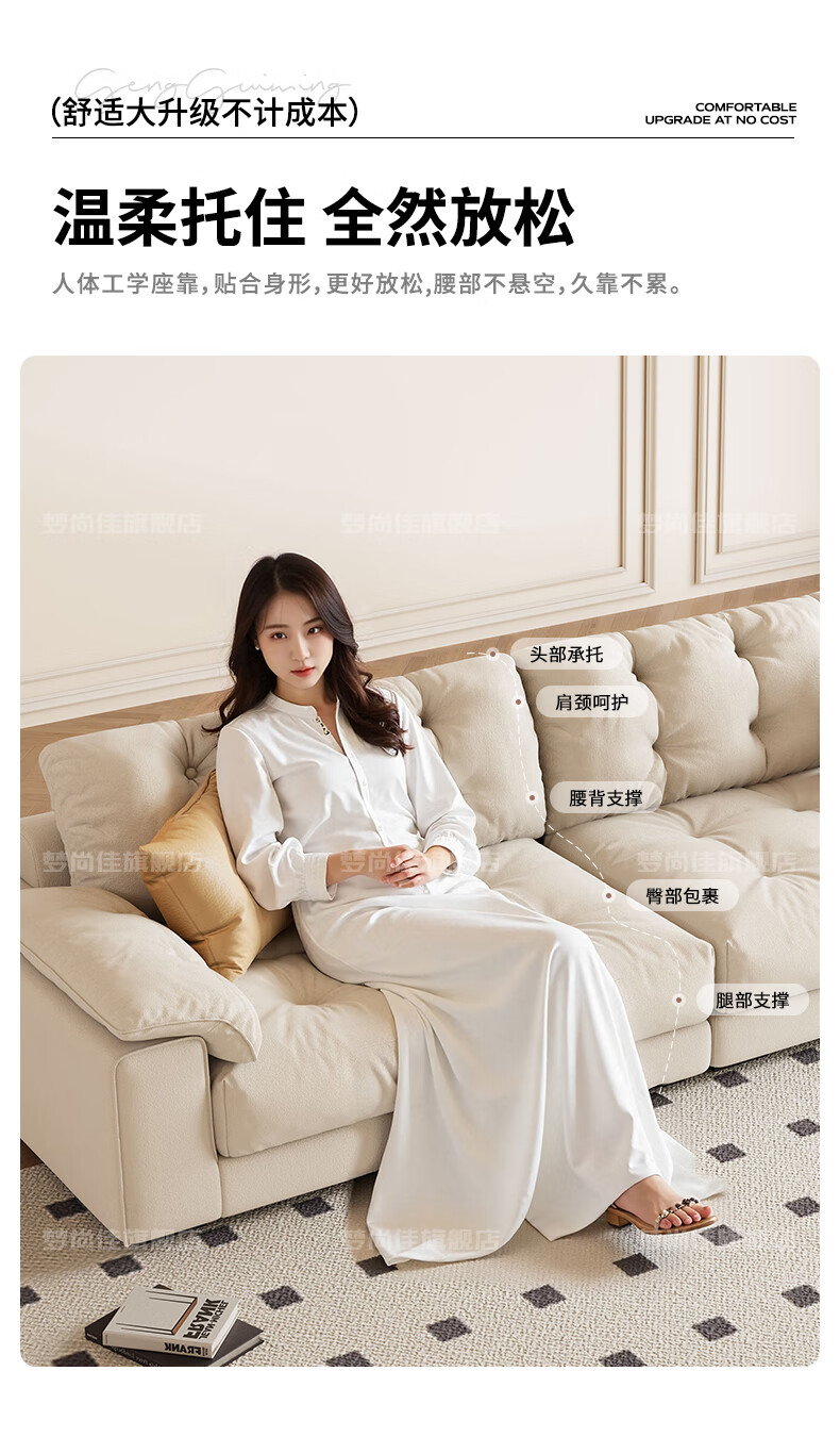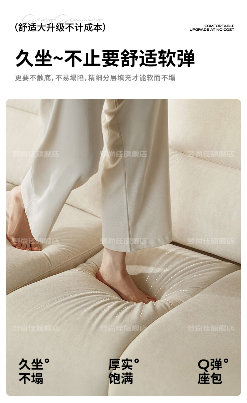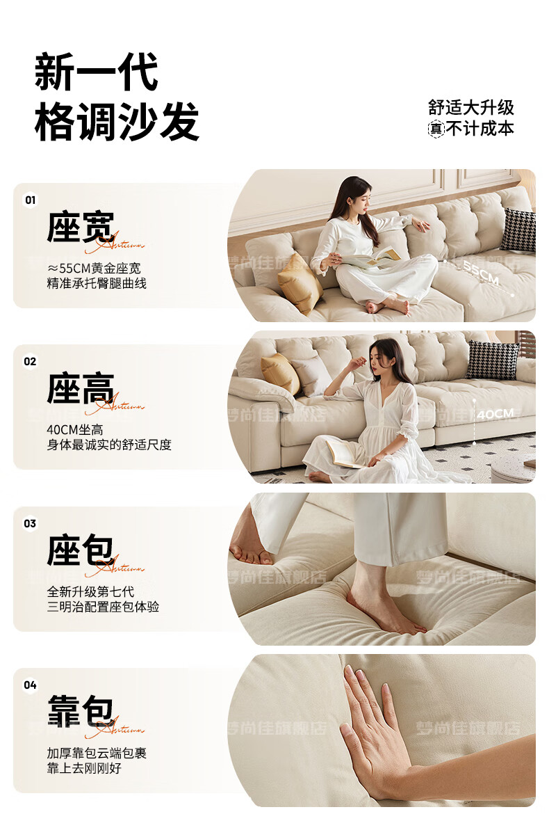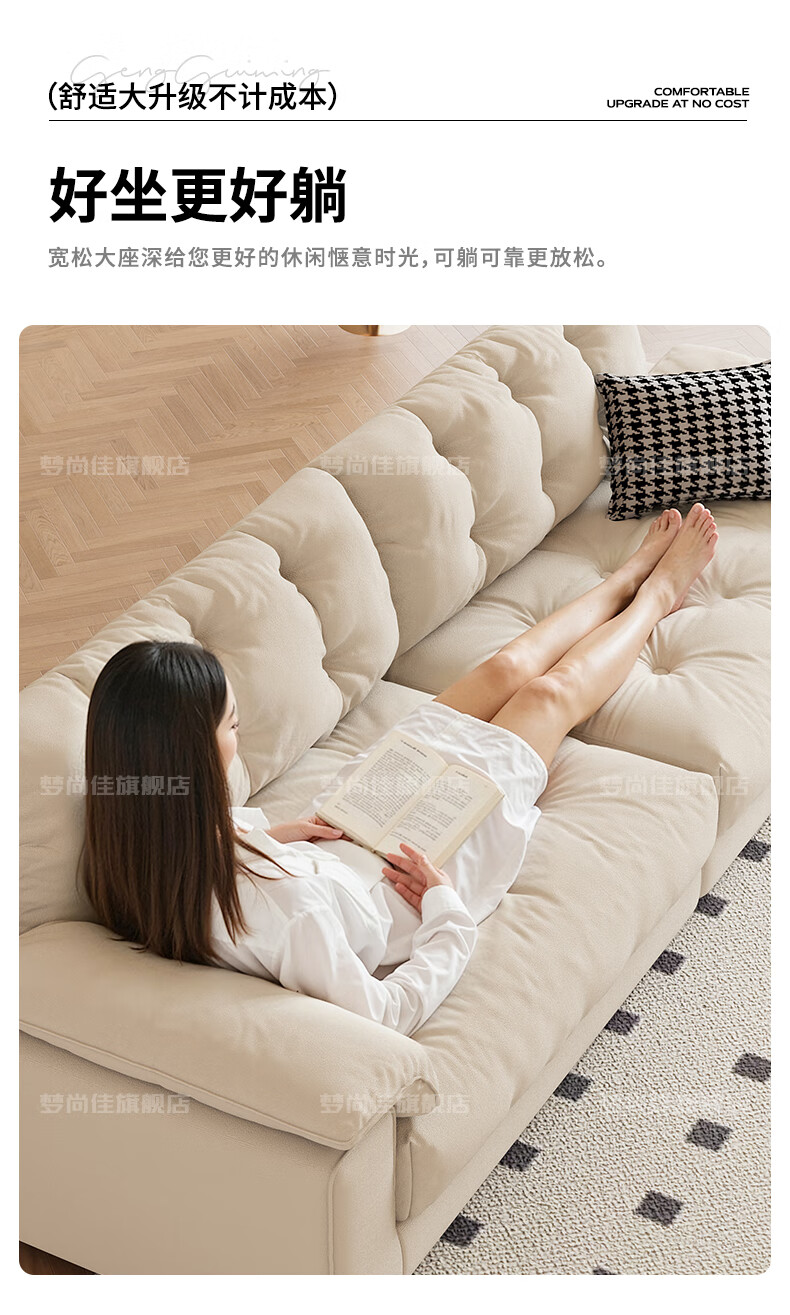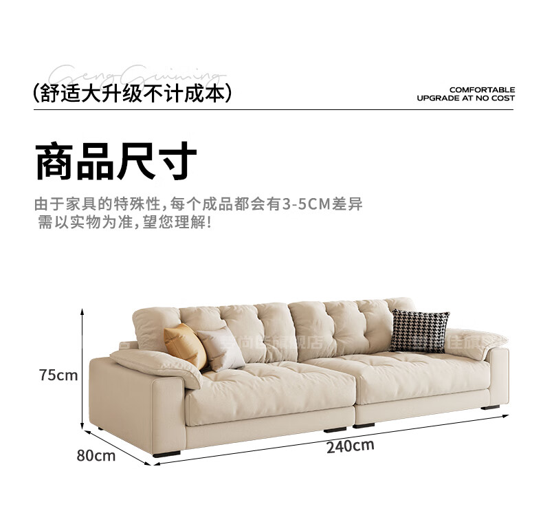 Meng Shangjia Government Subsidy Cream Style Cat Scratch Fabric Living Room Sofa Apartment Small Apartment Modern Simple Cloud Straight Row Sofa National Subsidy 2.4m Large Three-Seater Flagship Edition - Cat Scratch Cloth - Violet + Ordinary Sponge