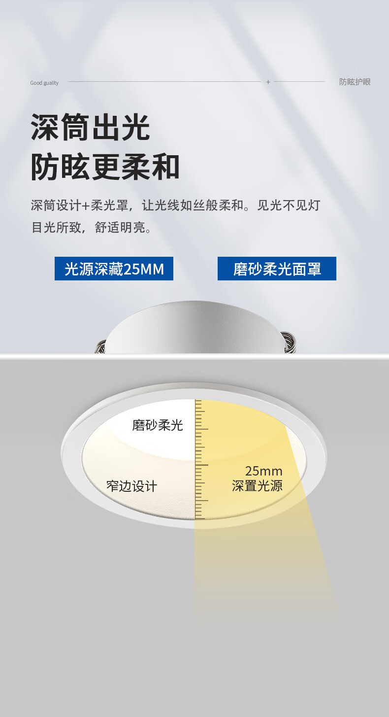名匠风无主灯照明筒灯嵌入式深防眩光客厅家用射灯过道走廊照明灯LZ3108 LZ3108-4000K-7W-55度-R90