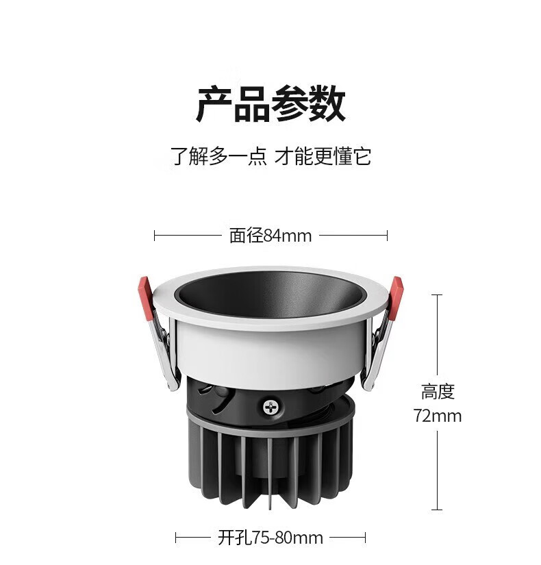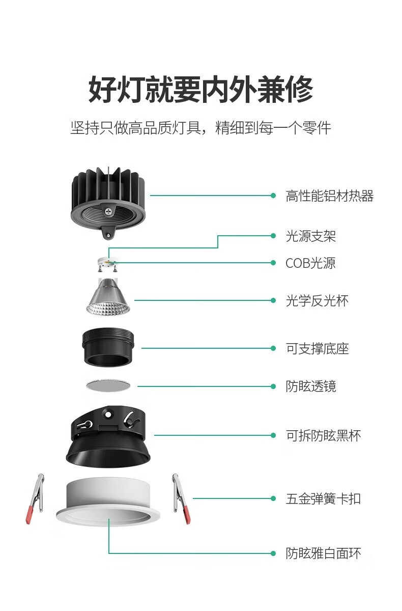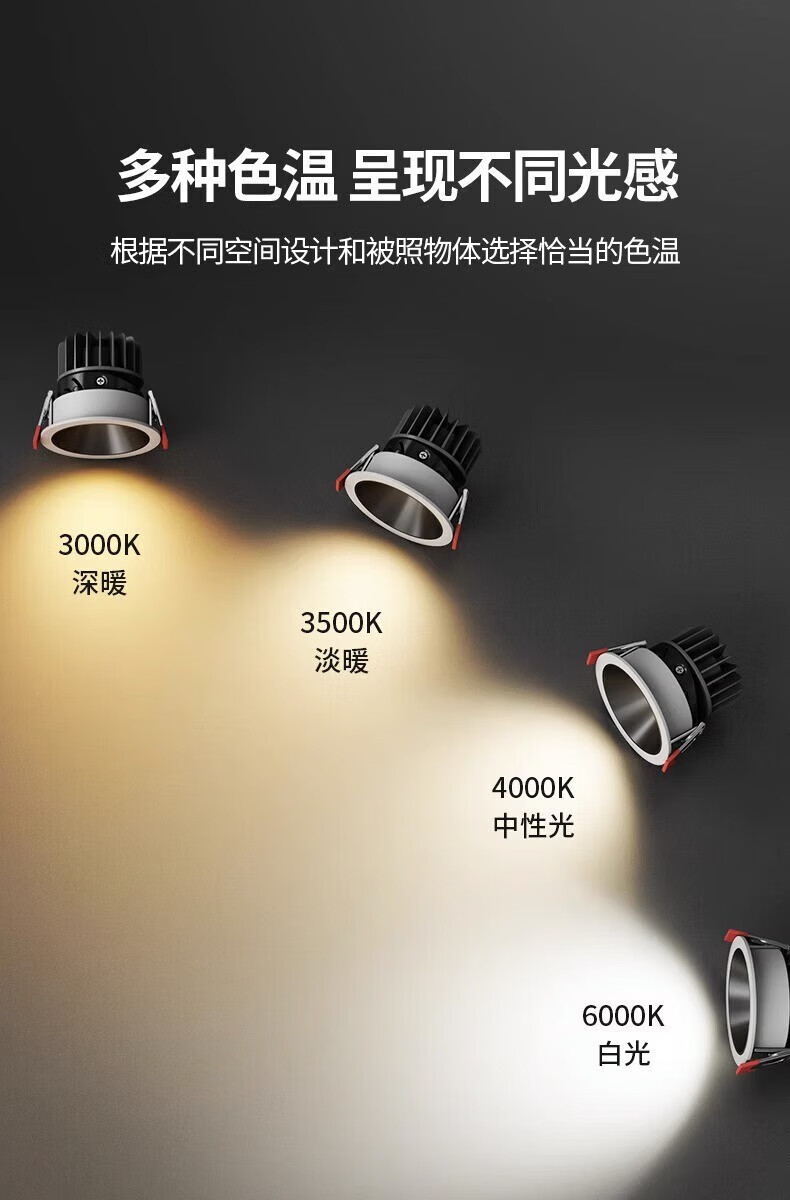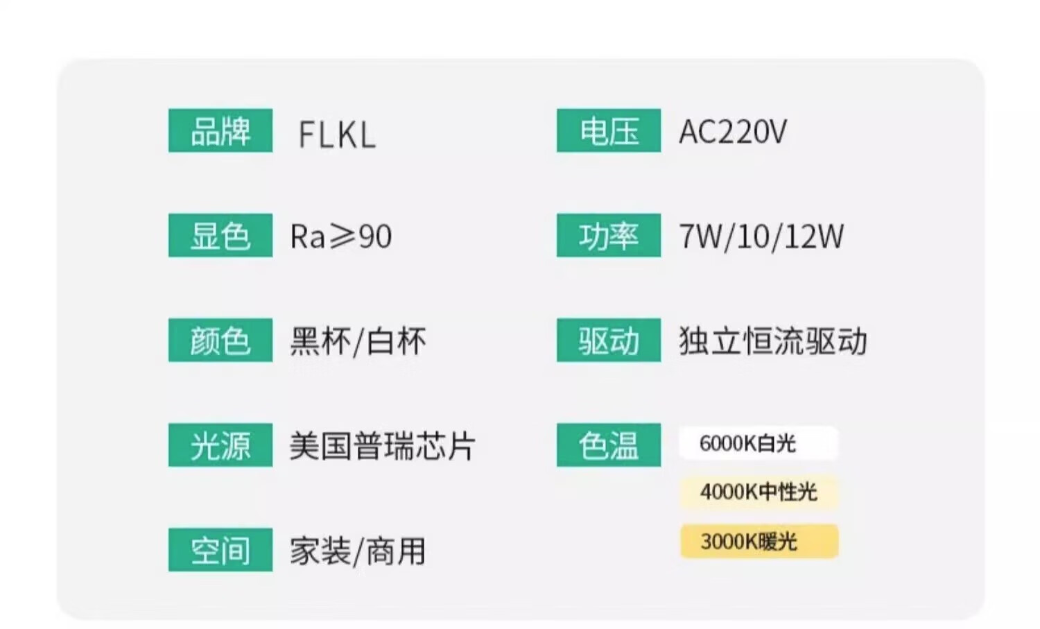 FLKL deep cup anti-glare downlight spotlight embedded hill ceiling hole light aperture 75mm wall washer indoor living room Kazi all-aluminum upgraded driver-9W white cup-warm light opening 7.5