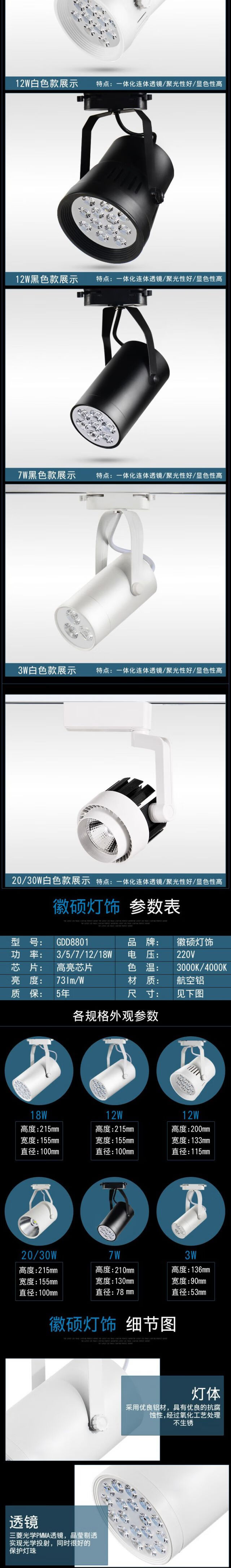 Chunlu LED track spotlight store commercial track light clothing store background wall COB surface-mounted ceiling rail light 7W white shell white light