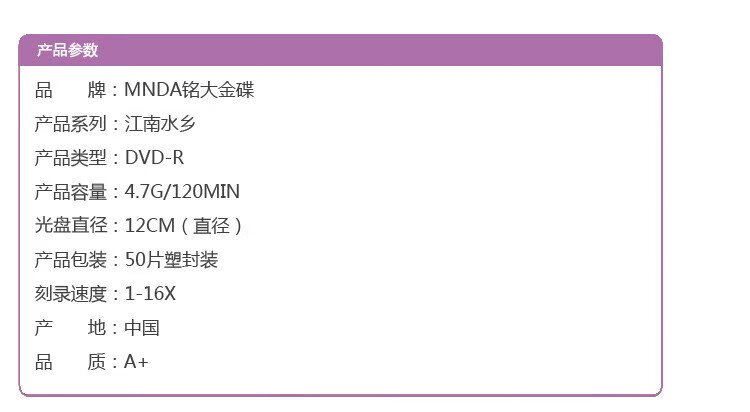 Mingda Golden Disc (MNDA) DVD-R disc/burning disc Jiangnan Water Town Series 16-speed 4.7G plastic package 50 pieces blank disc