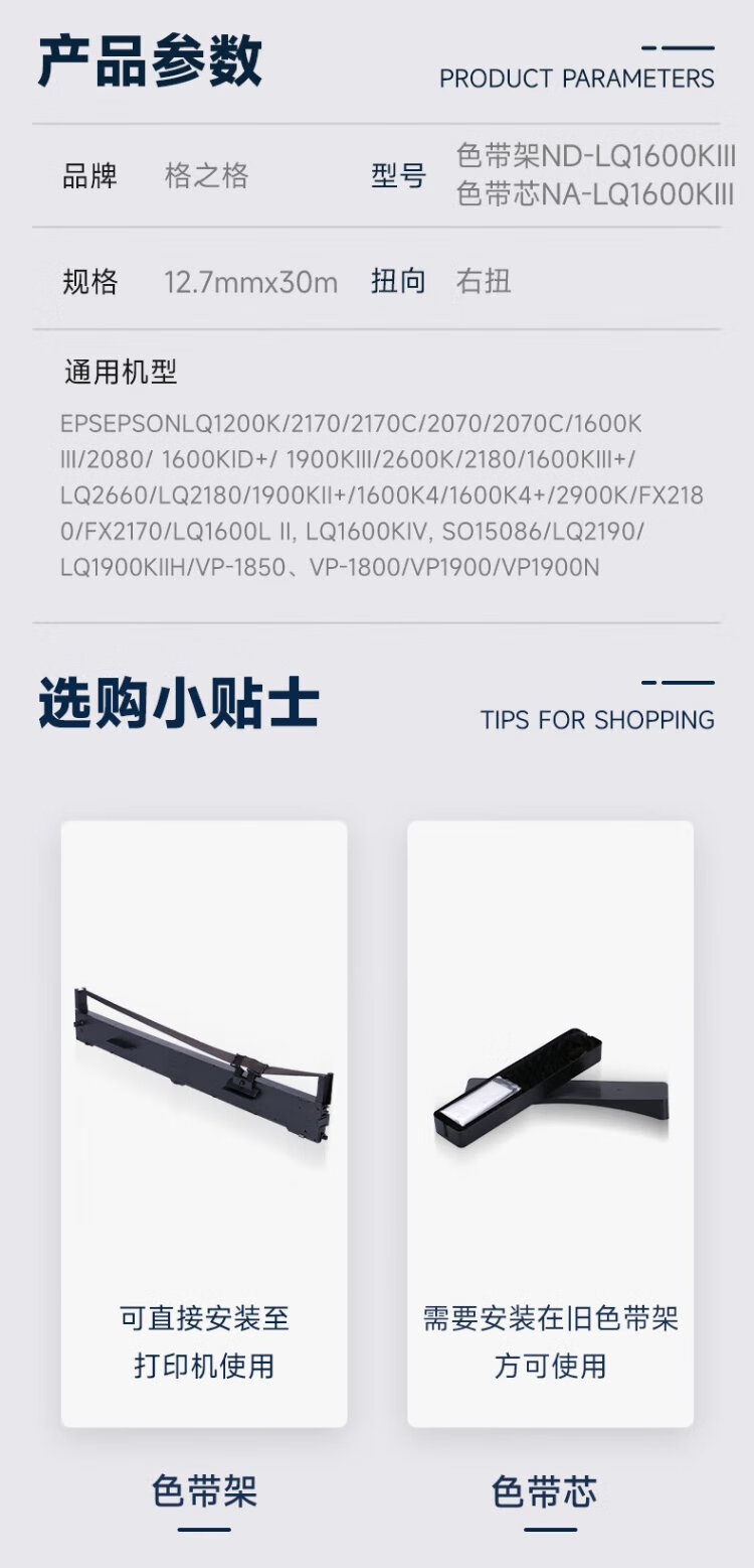 Gezhige LQ1600 is suitable for Epson LQ1600KIII/1200K/2070/1600K3/1900K2 printer ribbon core (excluding belt holder)