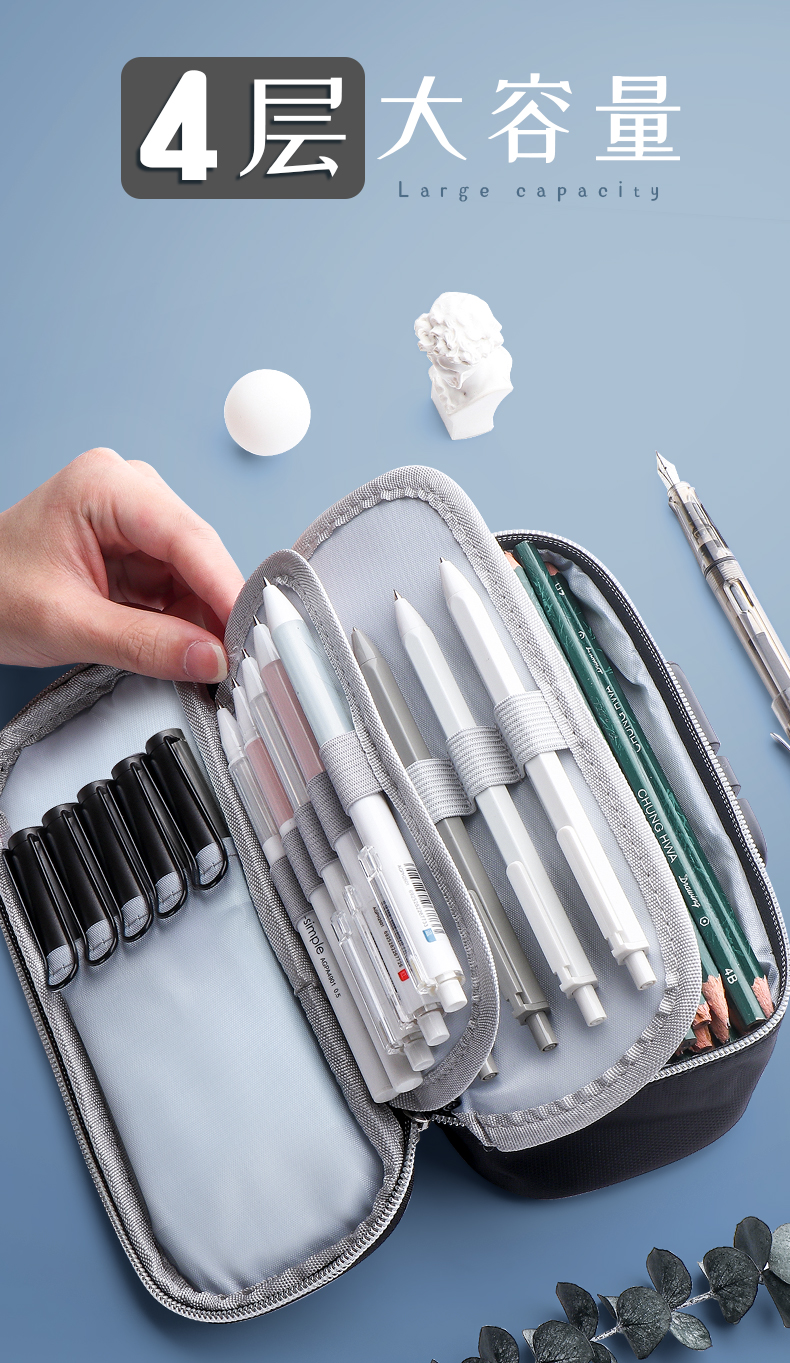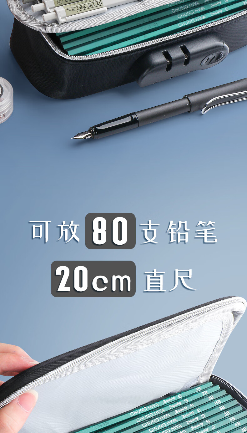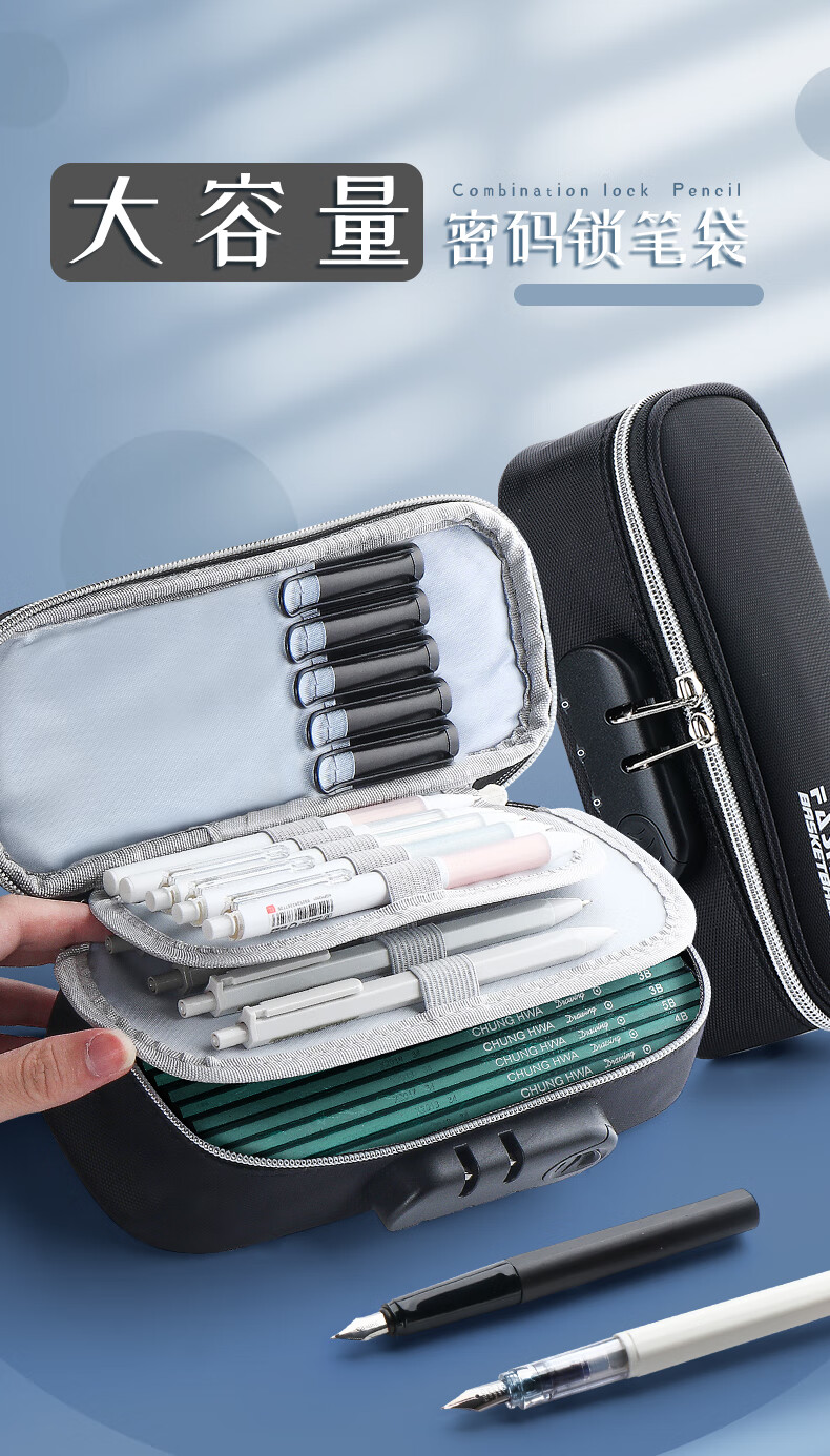 JUNCHENG Pencil Bag with Code Lock Boy's Large Capacity Stationery Box Simple Pencil Bag Pen Case Multi-Function Canvas JUNCHENG Black/Four-layer Code Model (Can Hold 20cm Ruler)