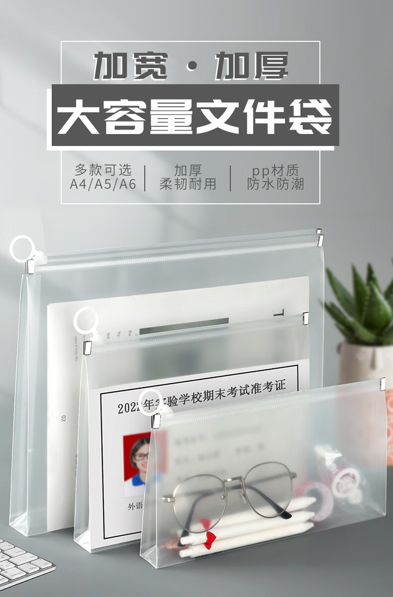 JIELI exam-specific stationery bag, transparent pencil bag, high school entrance examination, college entrance examination, postgraduate entrance examination paper document bag, plastic a4 zipper admission ticket storage bag, custom logo A4 large size/4 pack