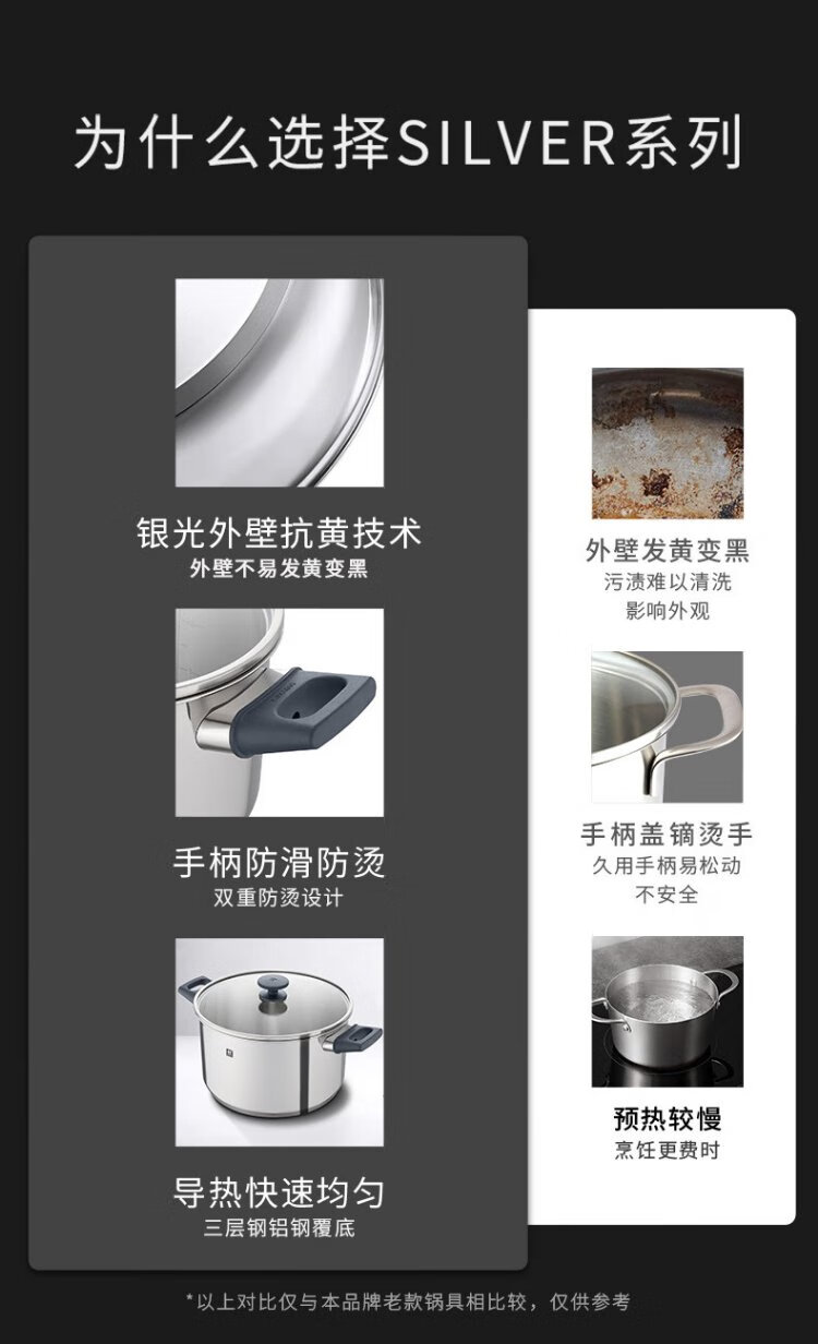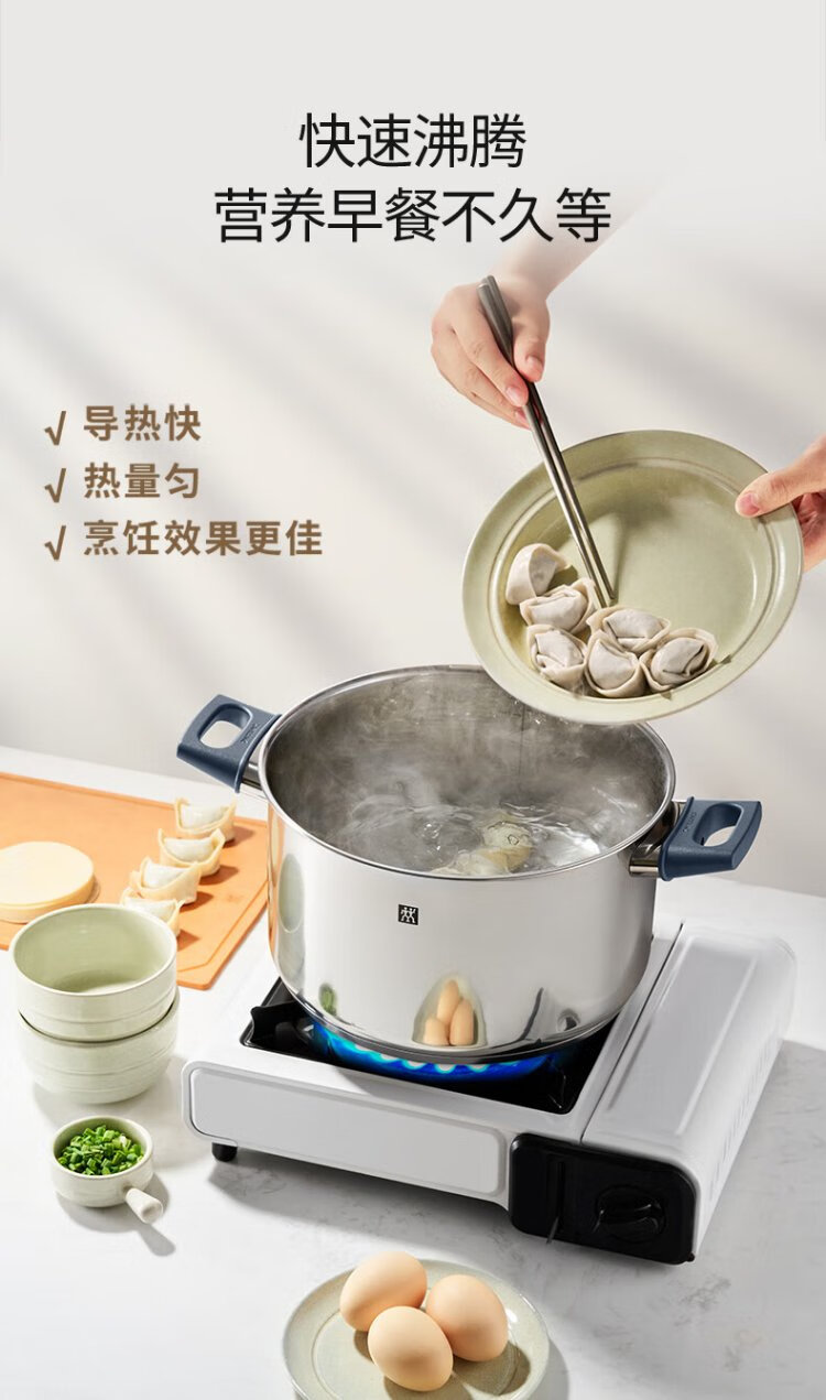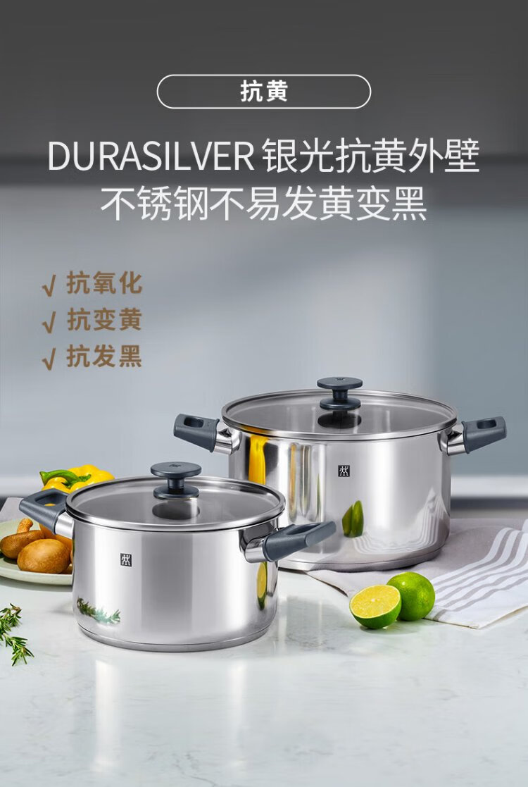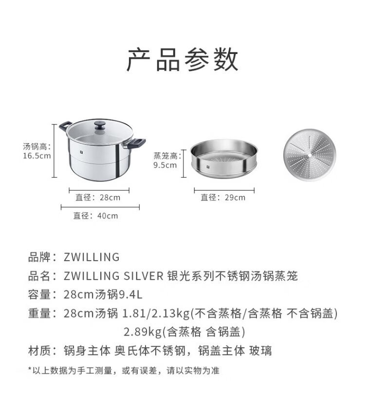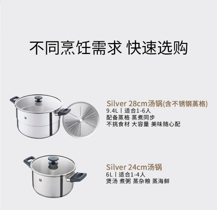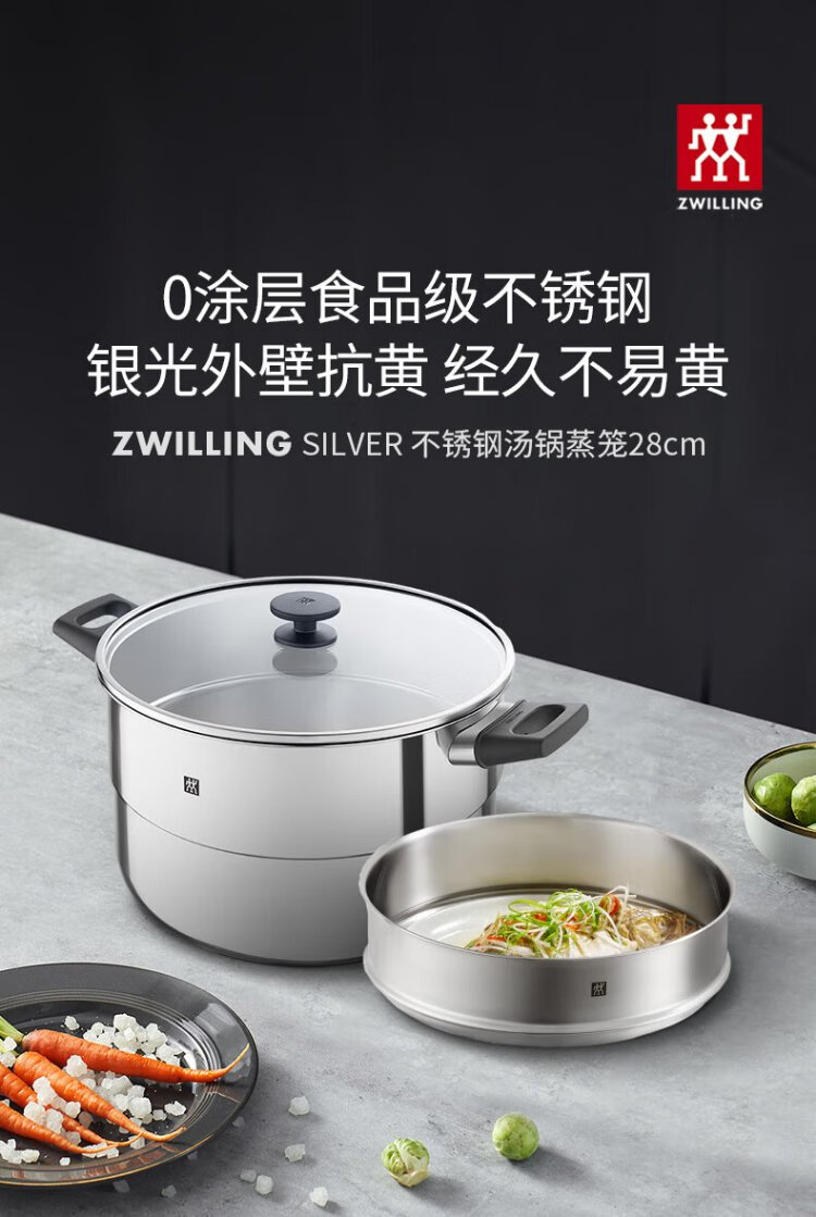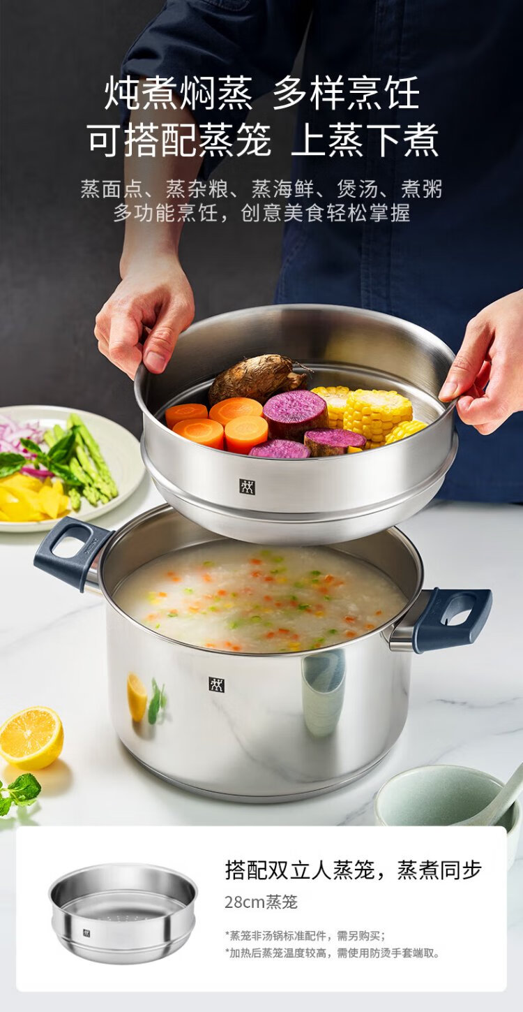 ZWILLING steamer anti-yellowing stainless steel uncoated household soup pot steamer steaming dual-purpose gas stove universal 28cm