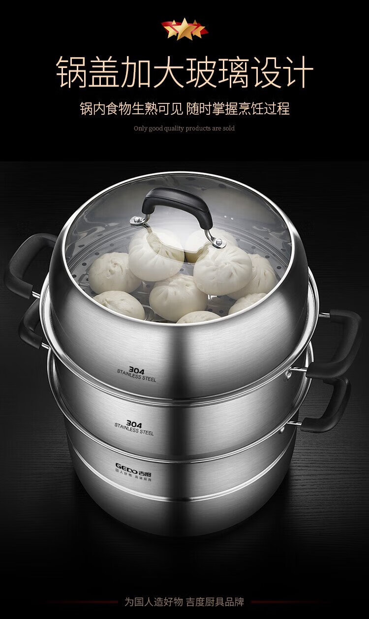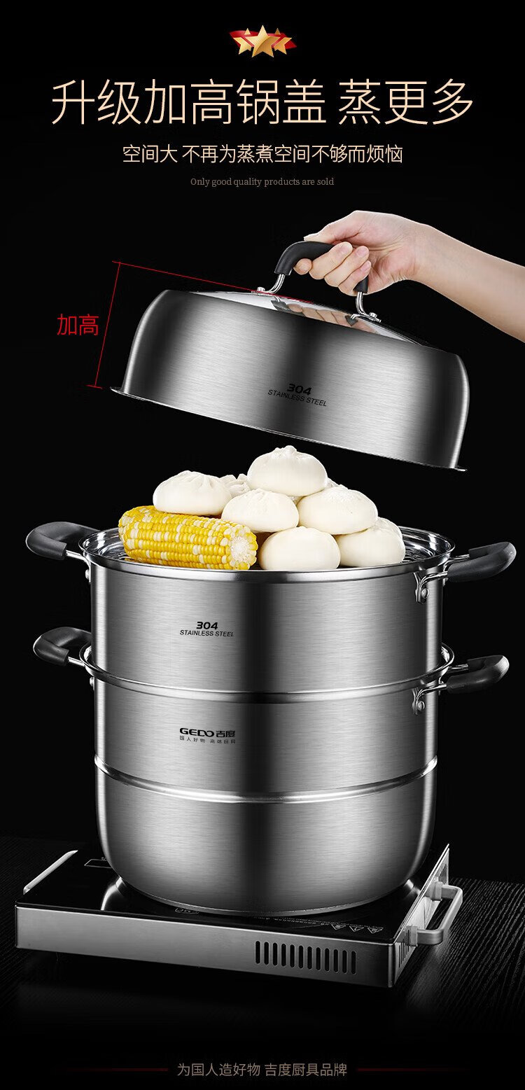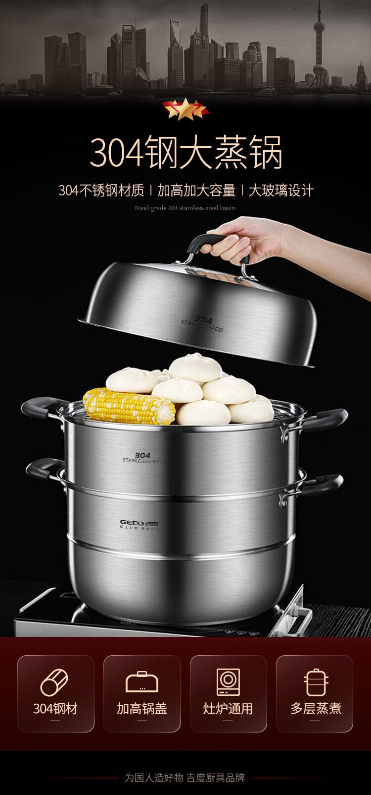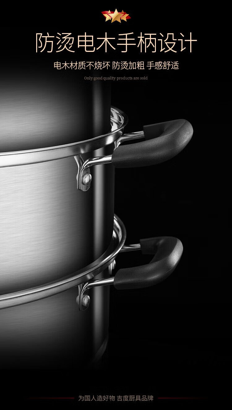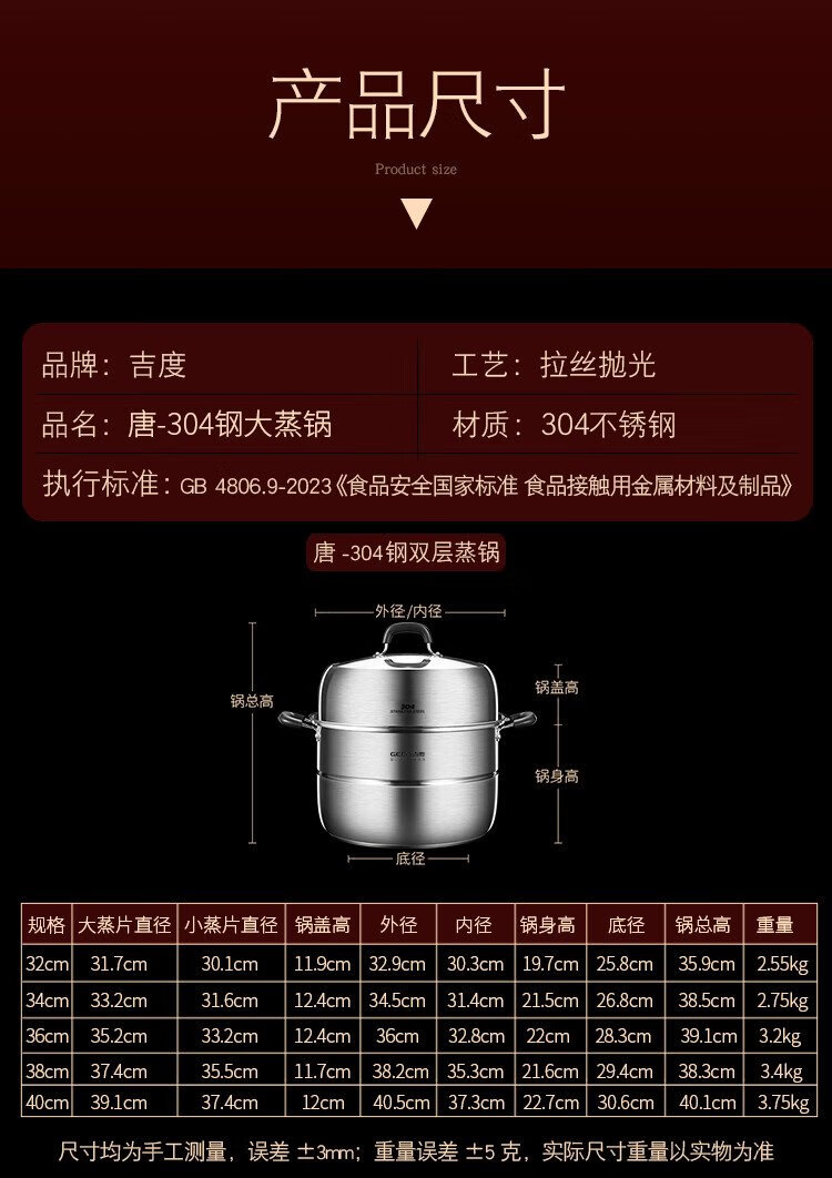 Jidu steamer 304 stainless steel household thickened three-layer multi-layer large capacity commercial steamer drawer induction cooker gas universal Tang-304 steamer double layer (for 6-8 people) 32cm